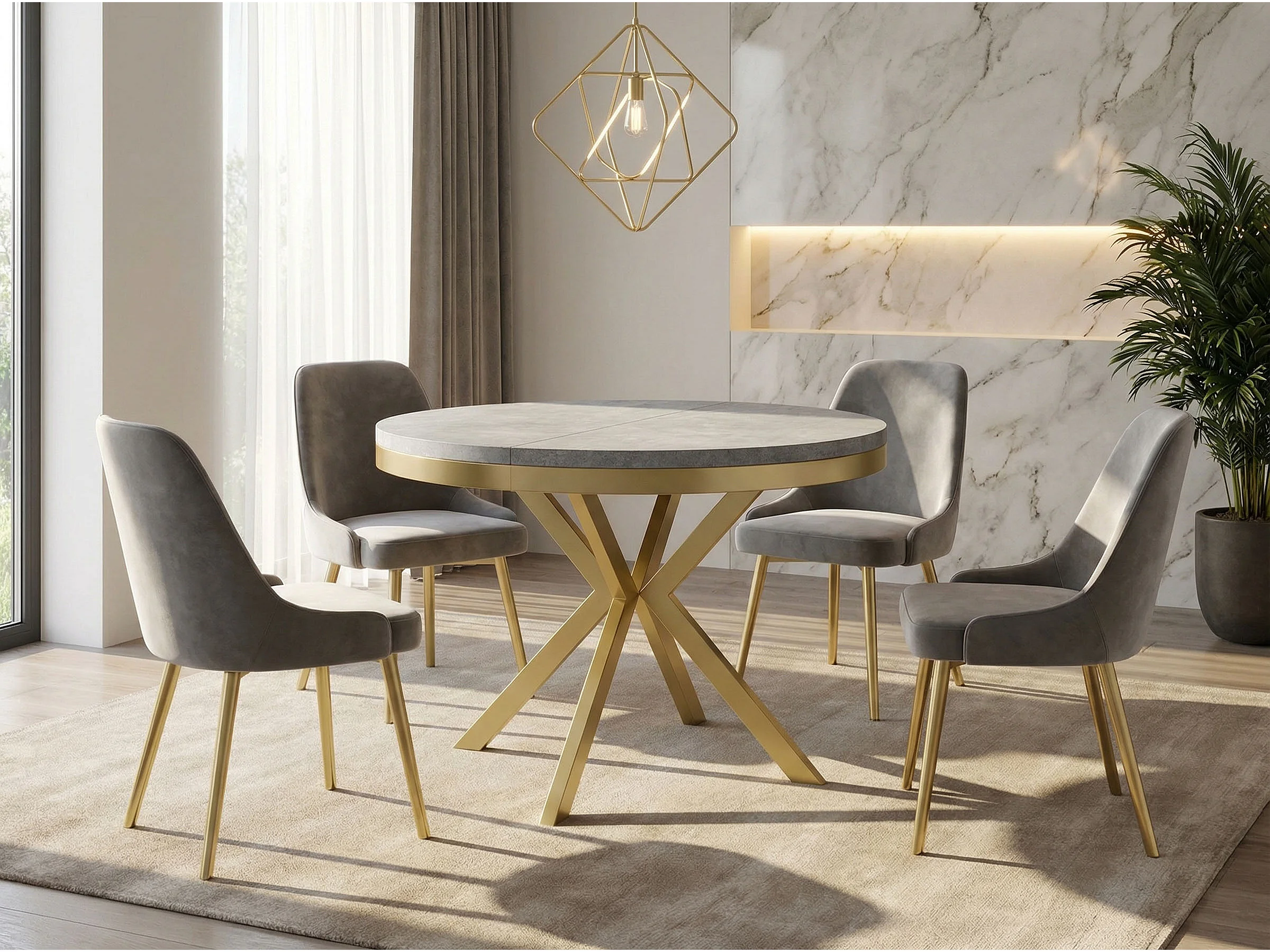 Runder Ausziehbarer Esstisch - Loft Style Tisch mit Goldenen Metallbeinen - 120 bis 200 cm - Industrieller Tisch für Wohnzimmer - Kompakt - 120 cm - Beton Grau