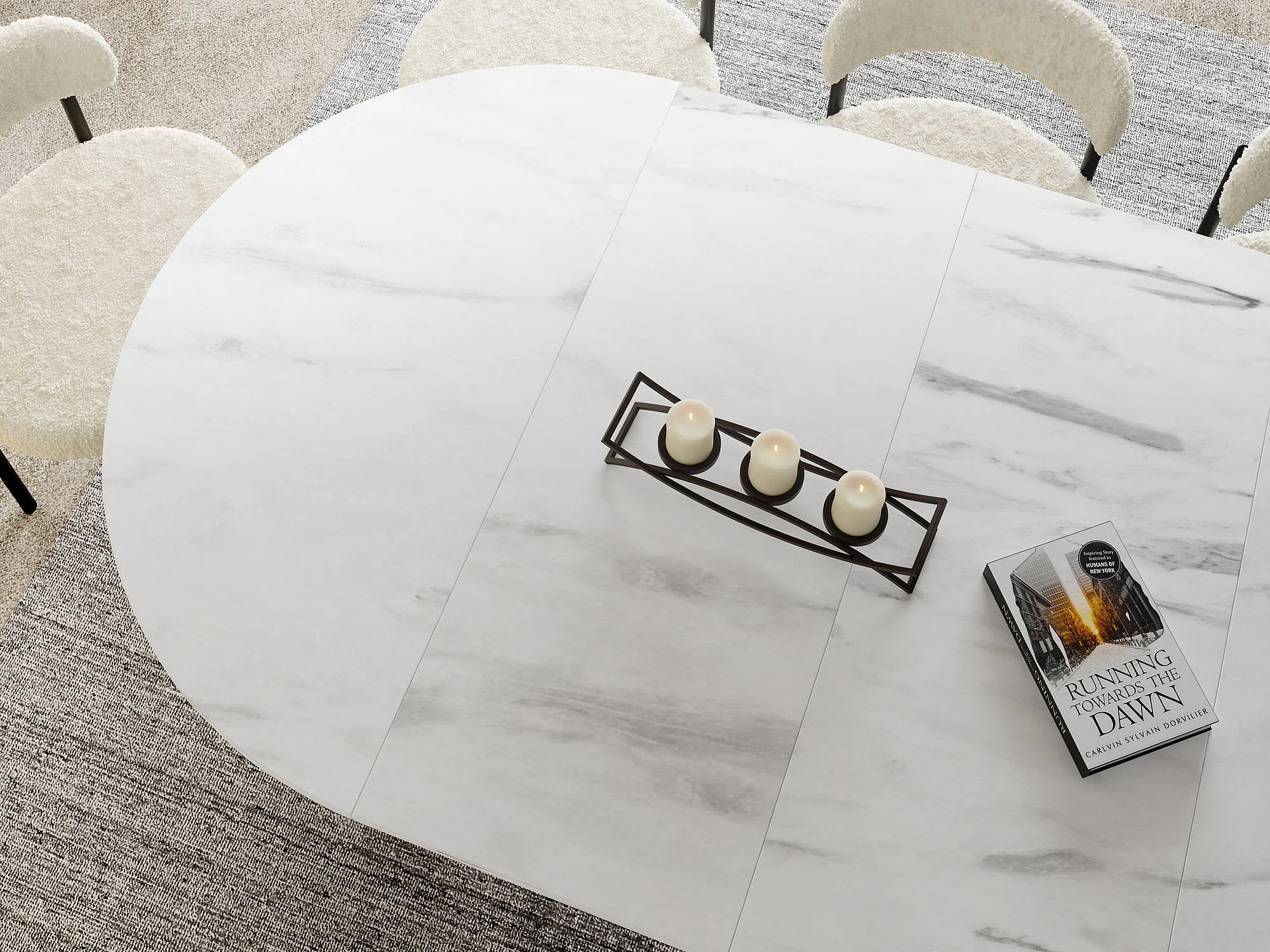 Runder Ausziehbarer Esstisch - Loft Style Tisch mit Goldenen Metallbeinen - 120 bis 200 cm - Industrieller Tisch für Wohnzimmer - Kompakt - 120 cm - Marmor Weiß