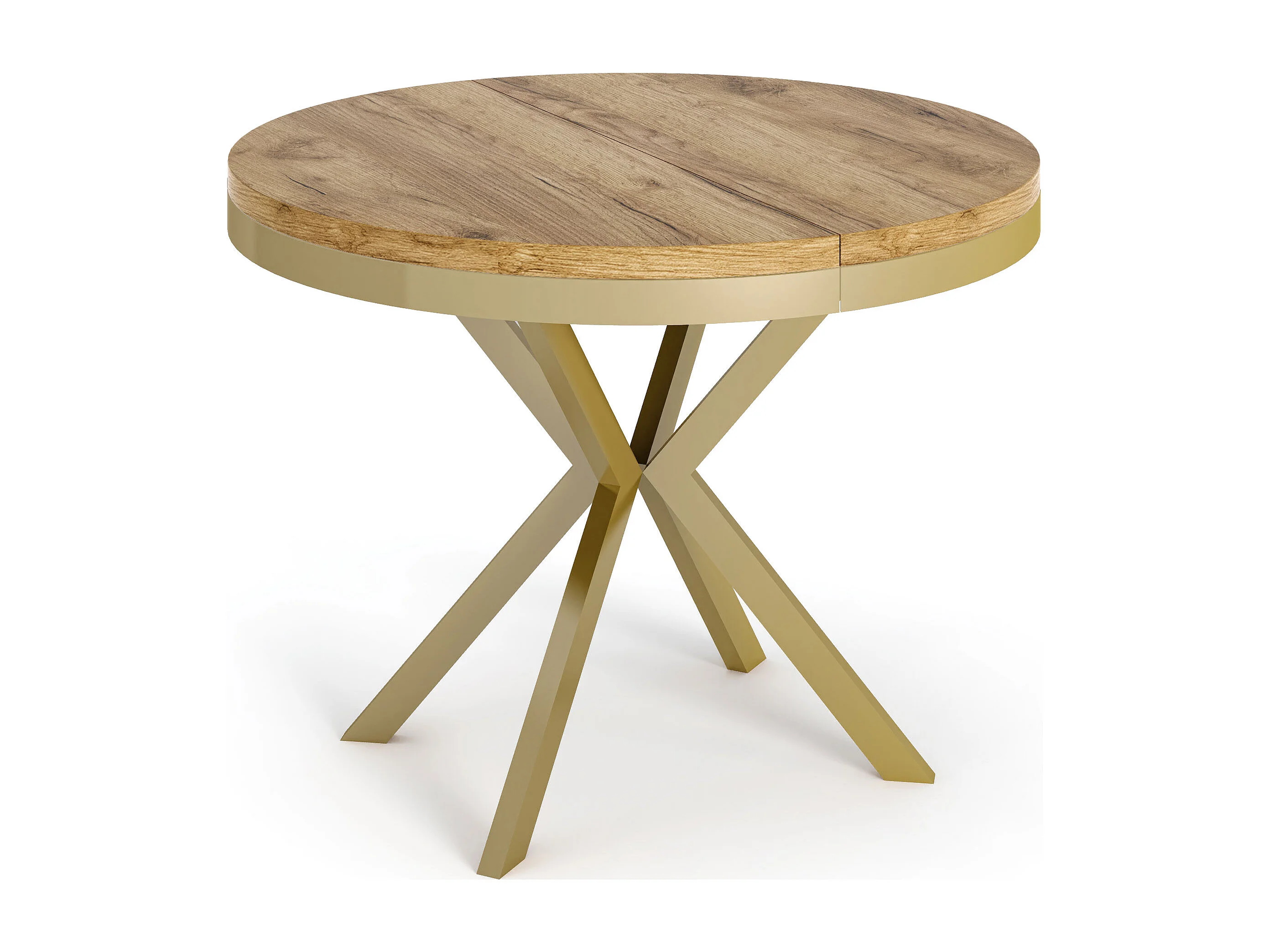 Runder Ausziehbarer Esstisch - Loft Style Tisch mit Goldenen Metallbeinen - 90 bis 170 cm - Industrieller Tisch für Wohnzimmer - Kompakt - 90 cm - Craft Eiche