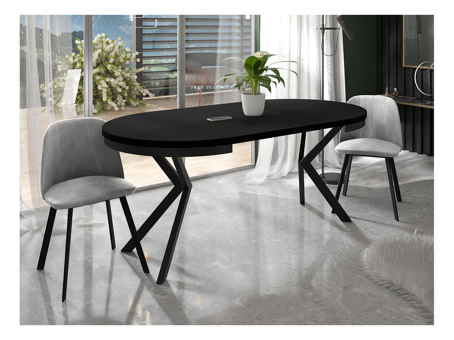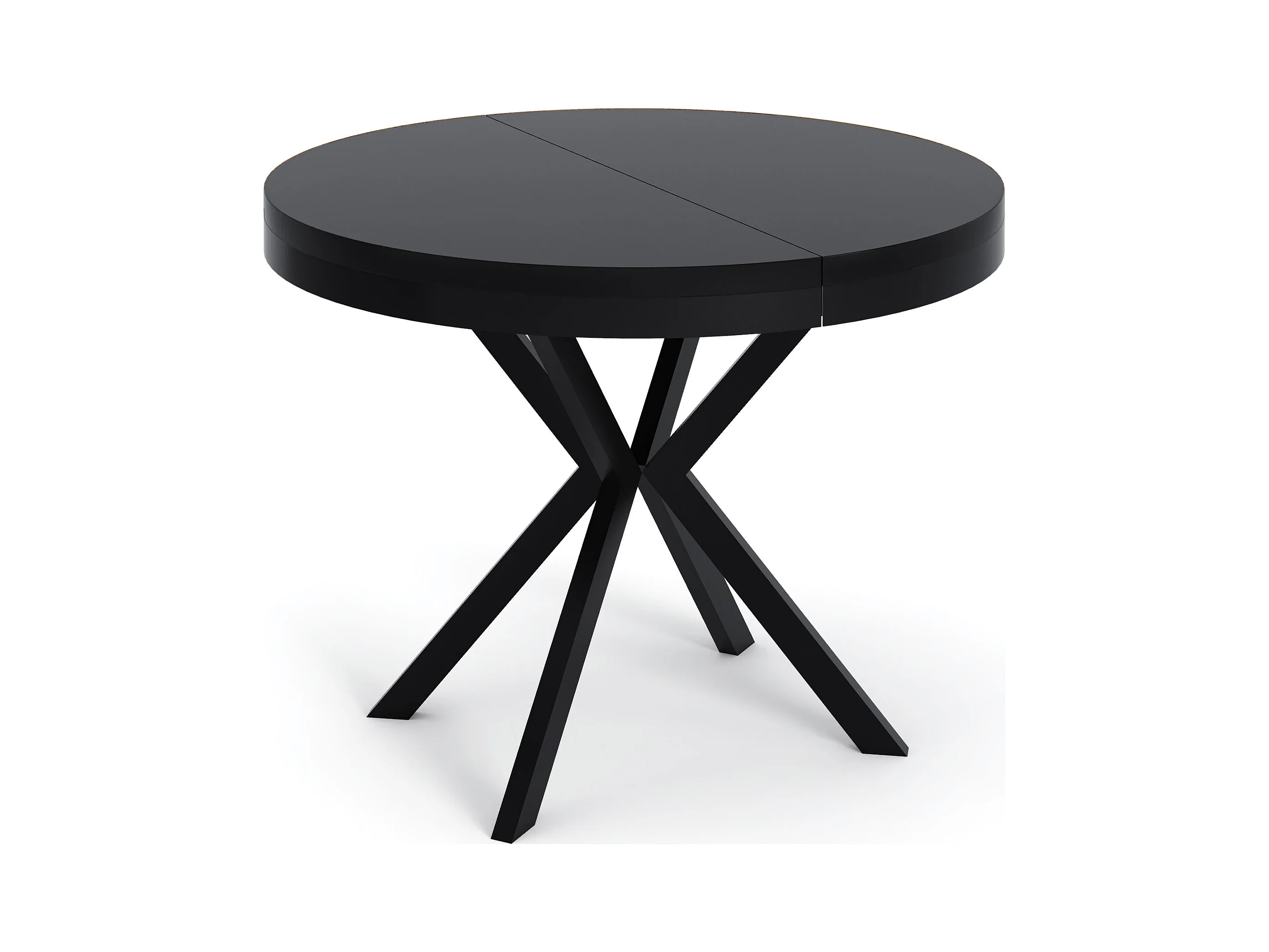 Runder Ausziehbarer Esstisch - Loft Style Tisch mit Metallbeinen - 100 bis 180 cm - Industrieller Tisch für Wohnzimmer - Kompakt - 100 cm - Schwarz