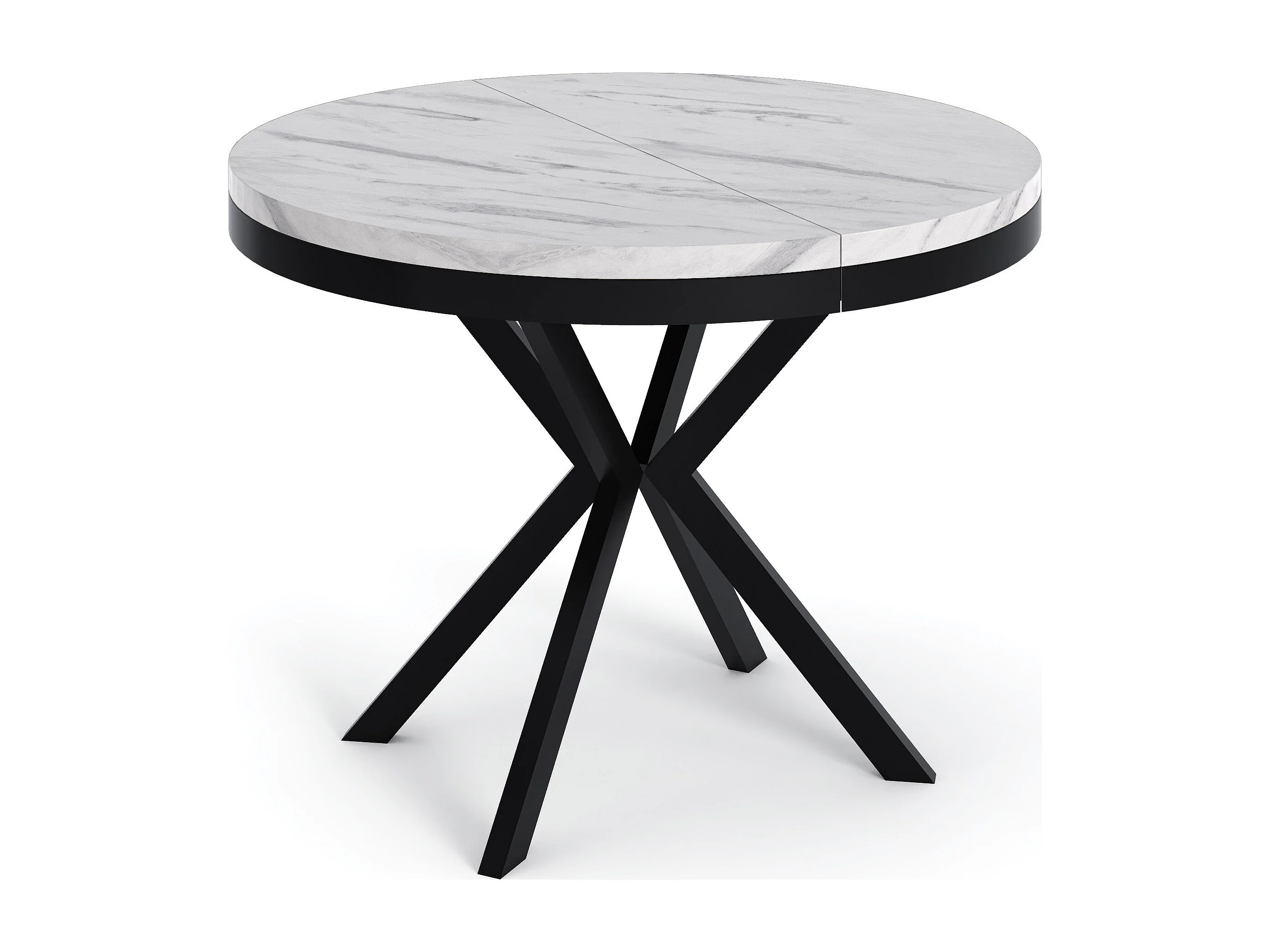 Runder Ausziehbarer Esstisch - Loft Style Tisch mit Metallbeinen - 100 bis 180 cm - Industrieller Tisch für Wohnzimmer - Kompakt - 100 cm - Marmor Weiß