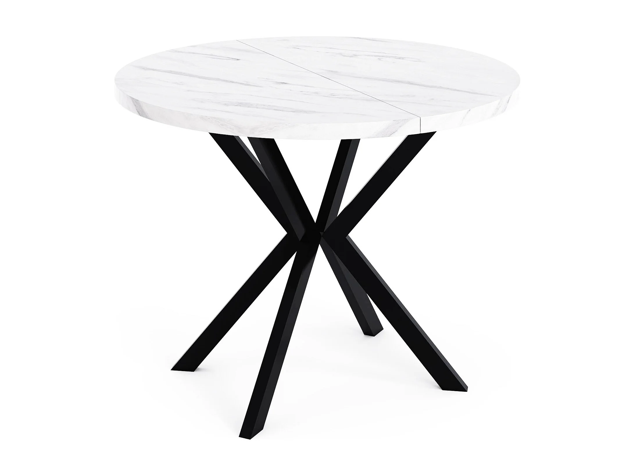 Runder Ausziehbarer Esstisch - Loft Style Tisch mit Metallbeinen - 120 bis 200 cm - Industrieller Tisch für Wohnzimmer - Spacesaver - Marmor Weiß - 120 cm
