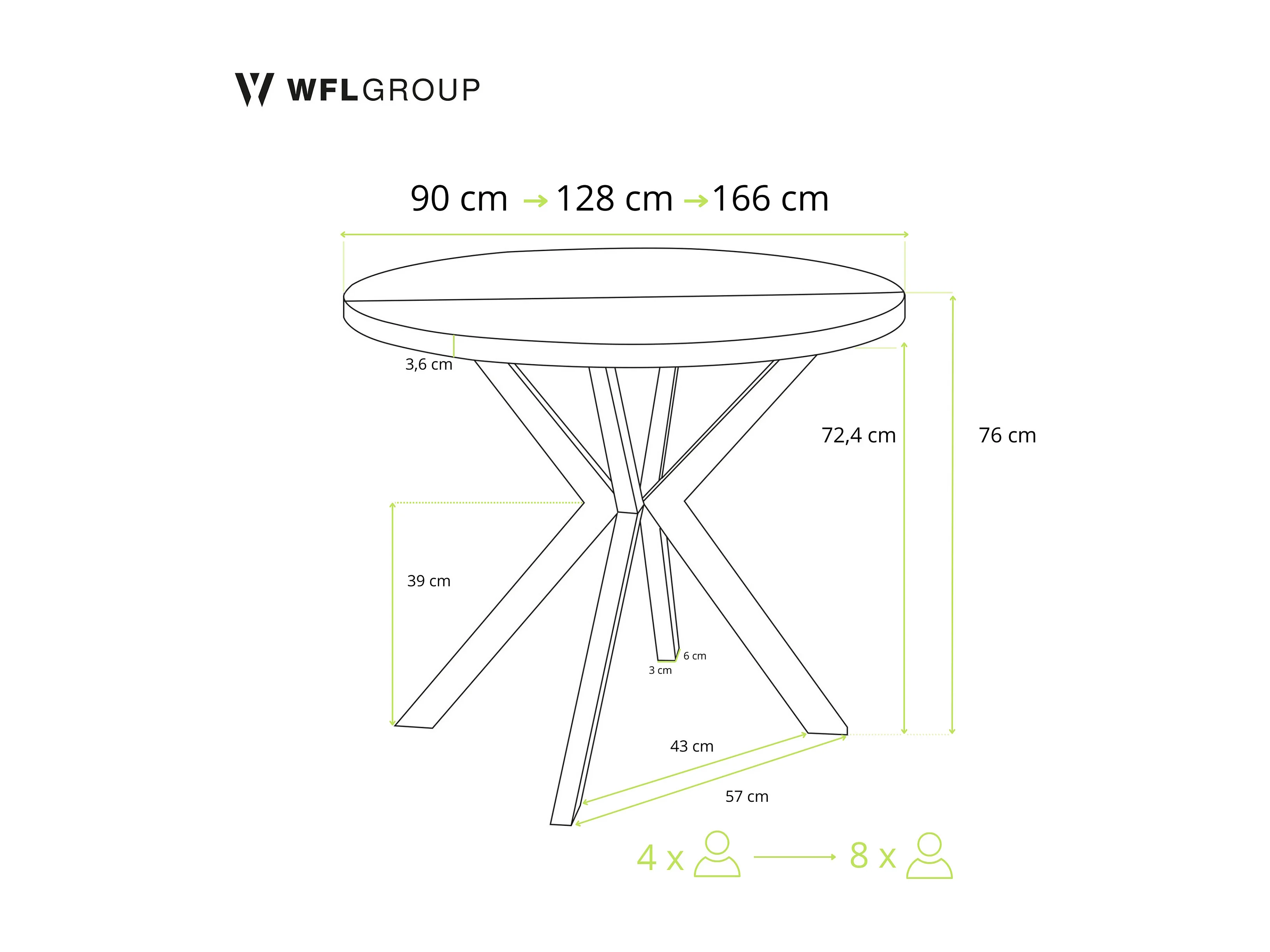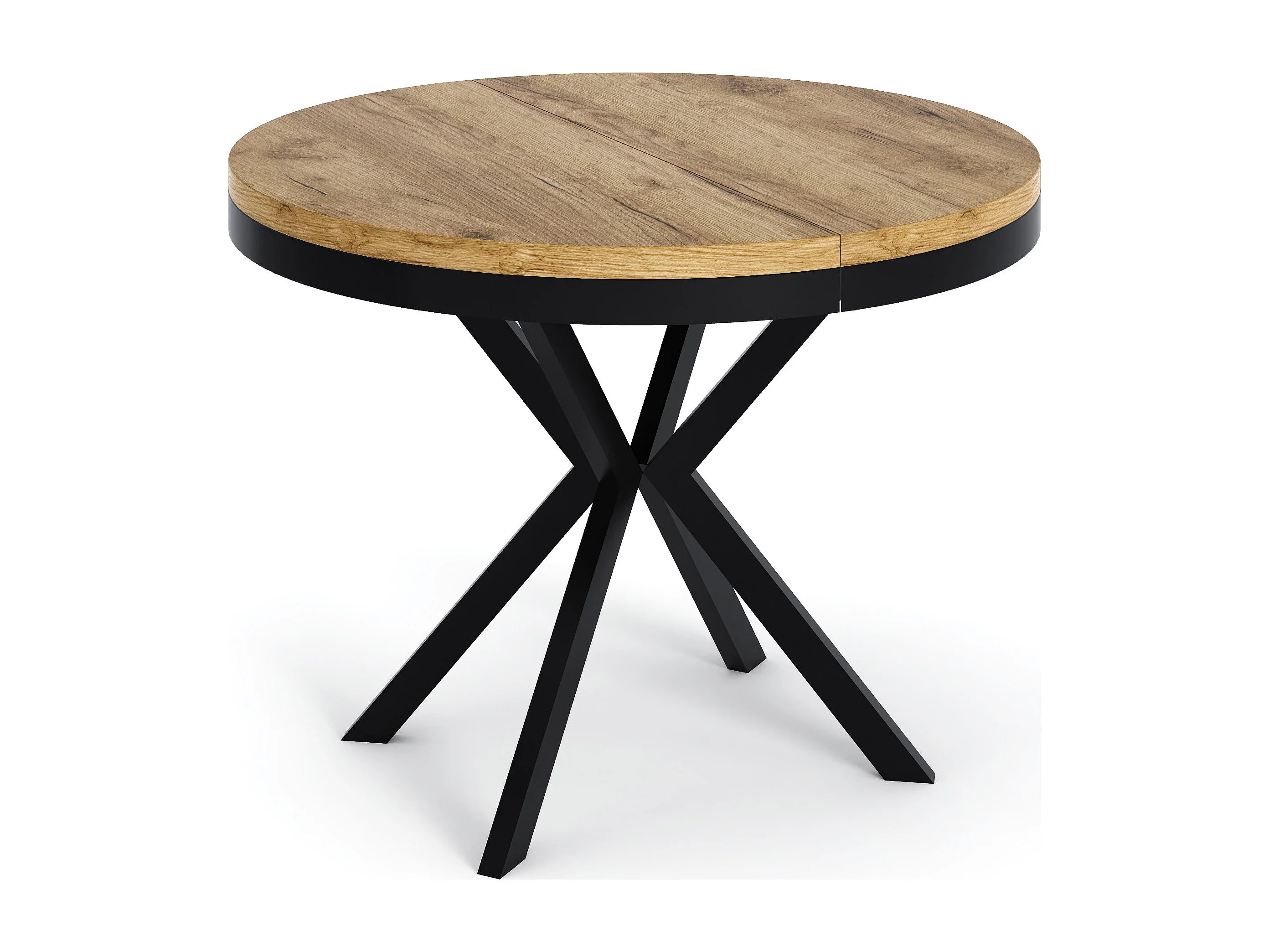 Runder Ausziehbarer Esstisch - Loft Style Tisch mit Metallbeinen - 90 bis 170 cm - Industrieller Tisch für Wohnzimmer - Kompakt - 90 cm - Craft Eiche