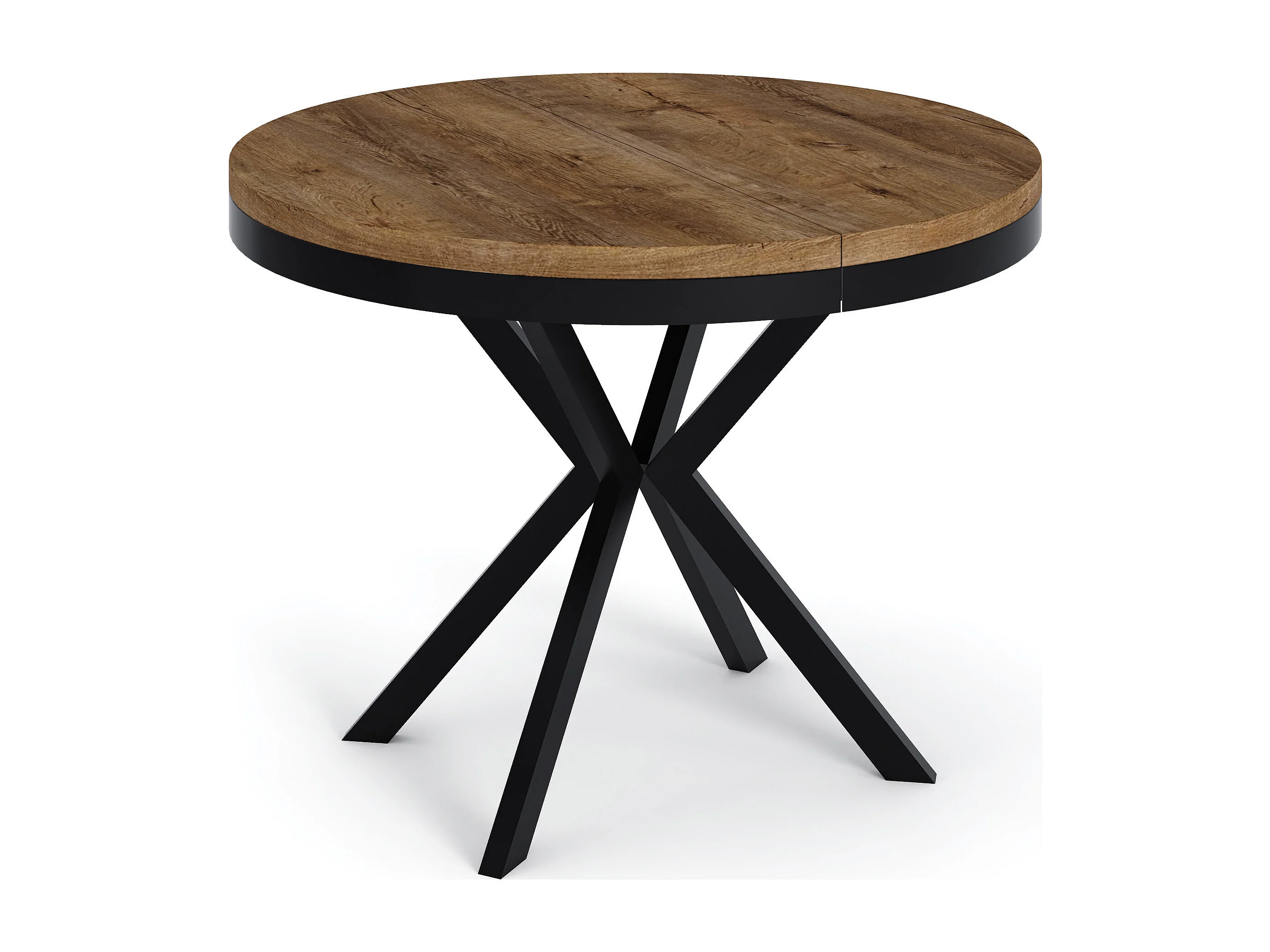 Runder Ausziehbarer Esstisch - Loft Style Tisch mit Metallbeinen - 90 bis 170 cm - Industrieller Tisch für Wohnzimmer - Kompakt - 90 cm - Lefkas Eiche