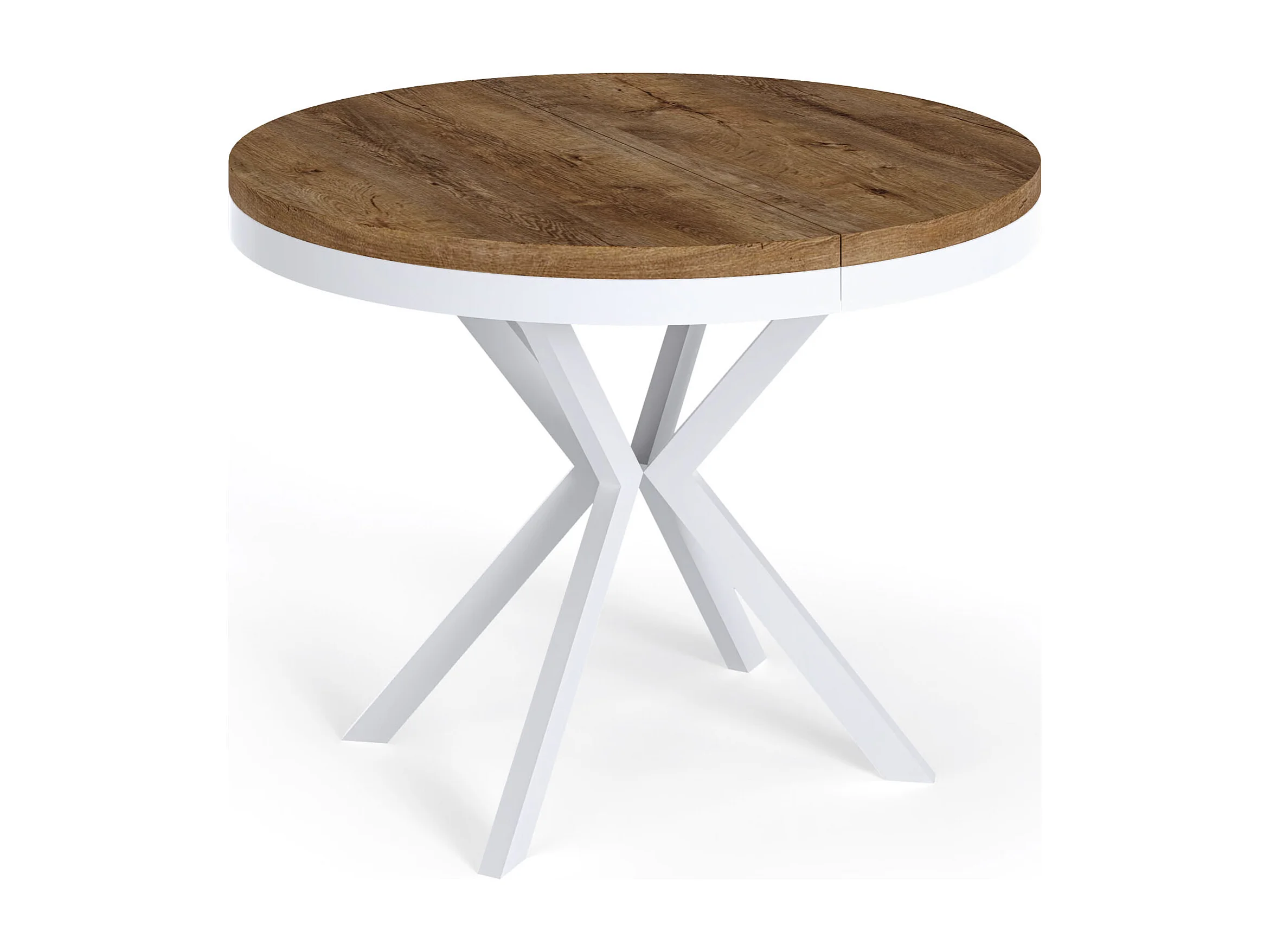 Runder Ausziehbarer Esstisch - Loft Style Tisch mit Weißen Metallbeinen - 120 bis 200 cm - Industrieller Tisch für Wohnzimmer - Kompakt - 120 cm - Lefkas Eiche