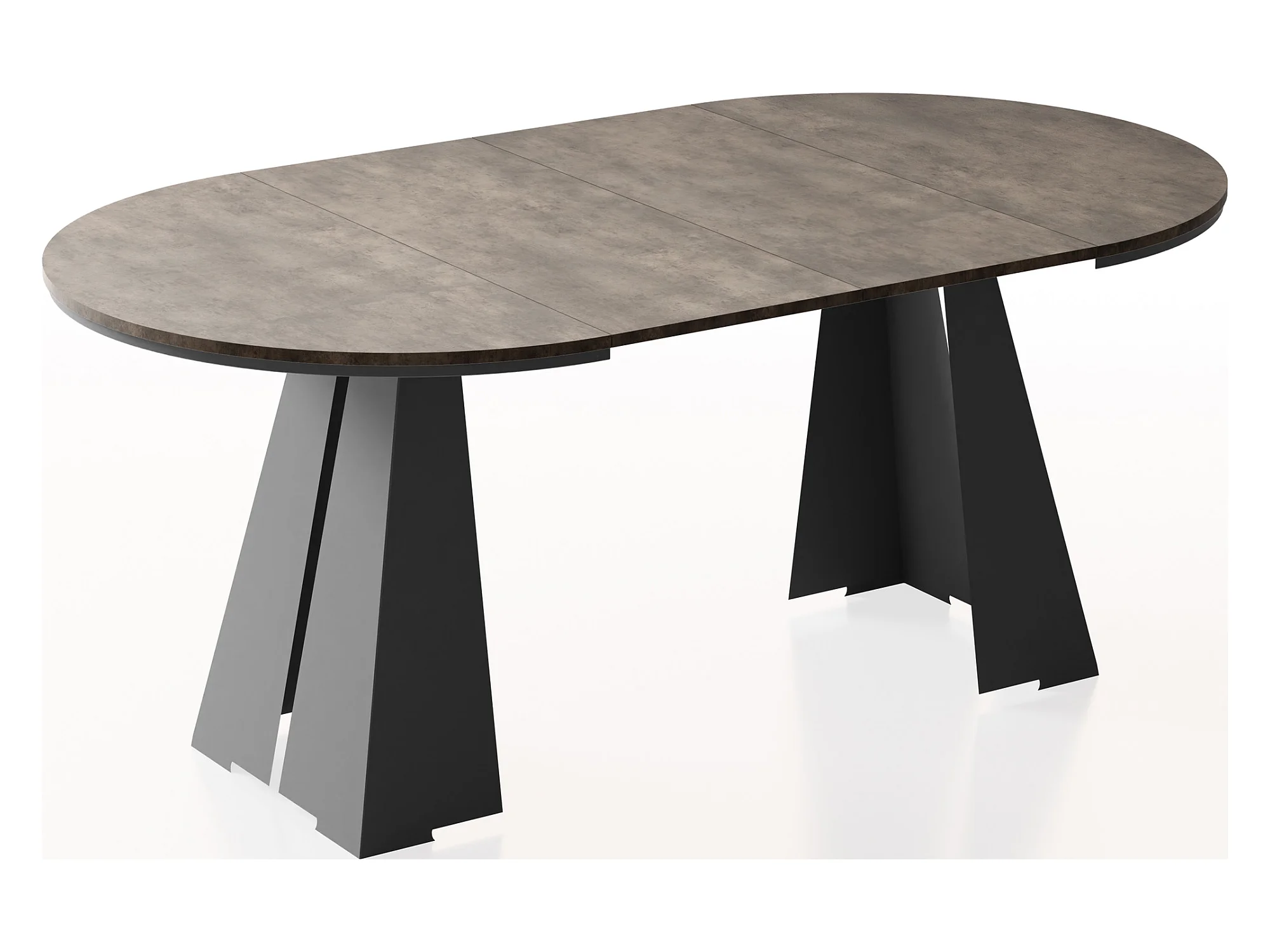 Runder Ausziehbarer Esstisch mit Schwarzem Metallgestell - Moderner Industrieller Tisch für Esszimmer oder Küche - 100 cm bis 180 cm - Made in EU - Chicago Beton