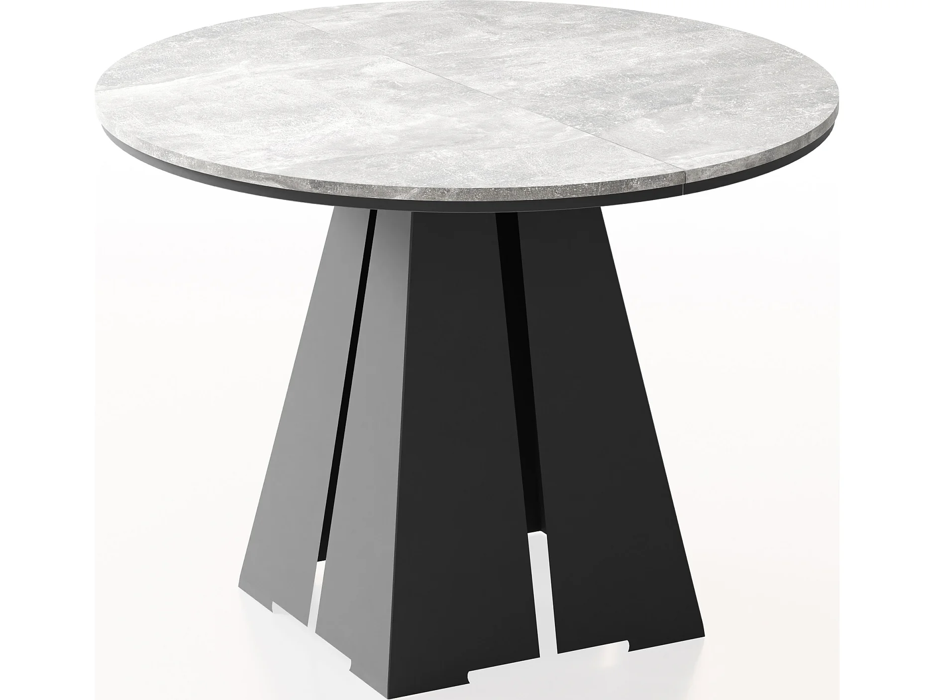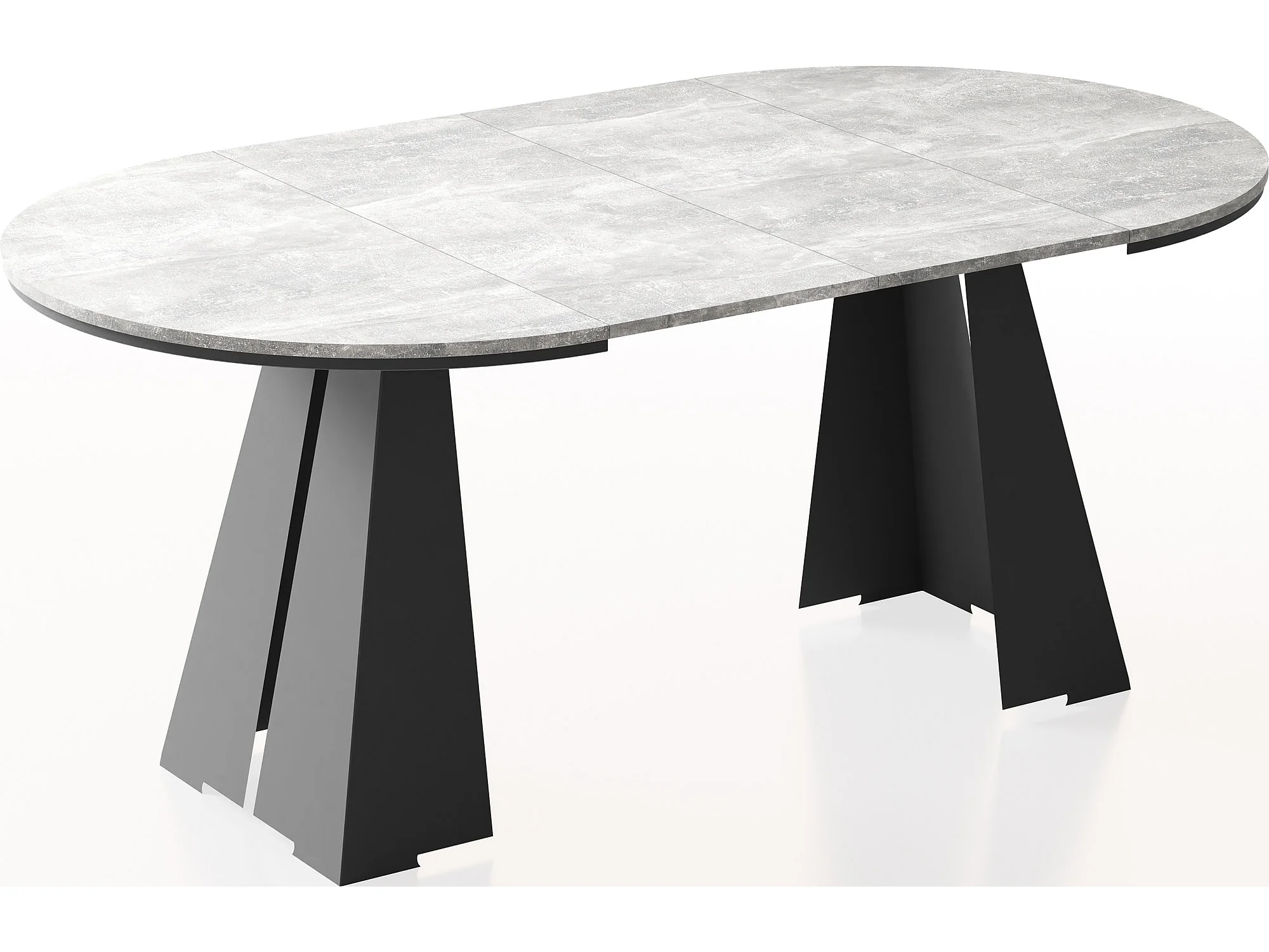 Runder Ausziehbarer Esstisch mit Schwarzem Metallgestell - Moderner Industrieller Tisch für Esszimmer oder Küche - 100 cm bis 180 cm - Made in EU - Grauer Beton