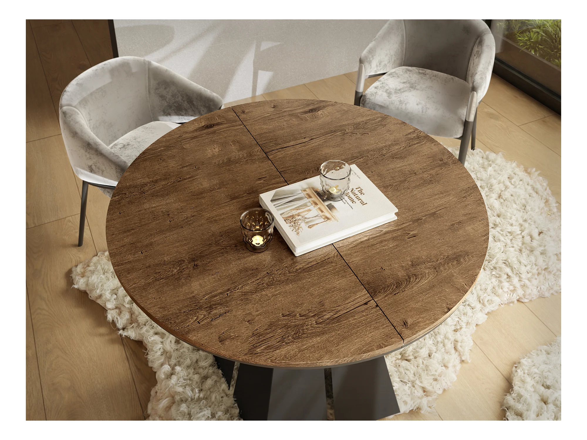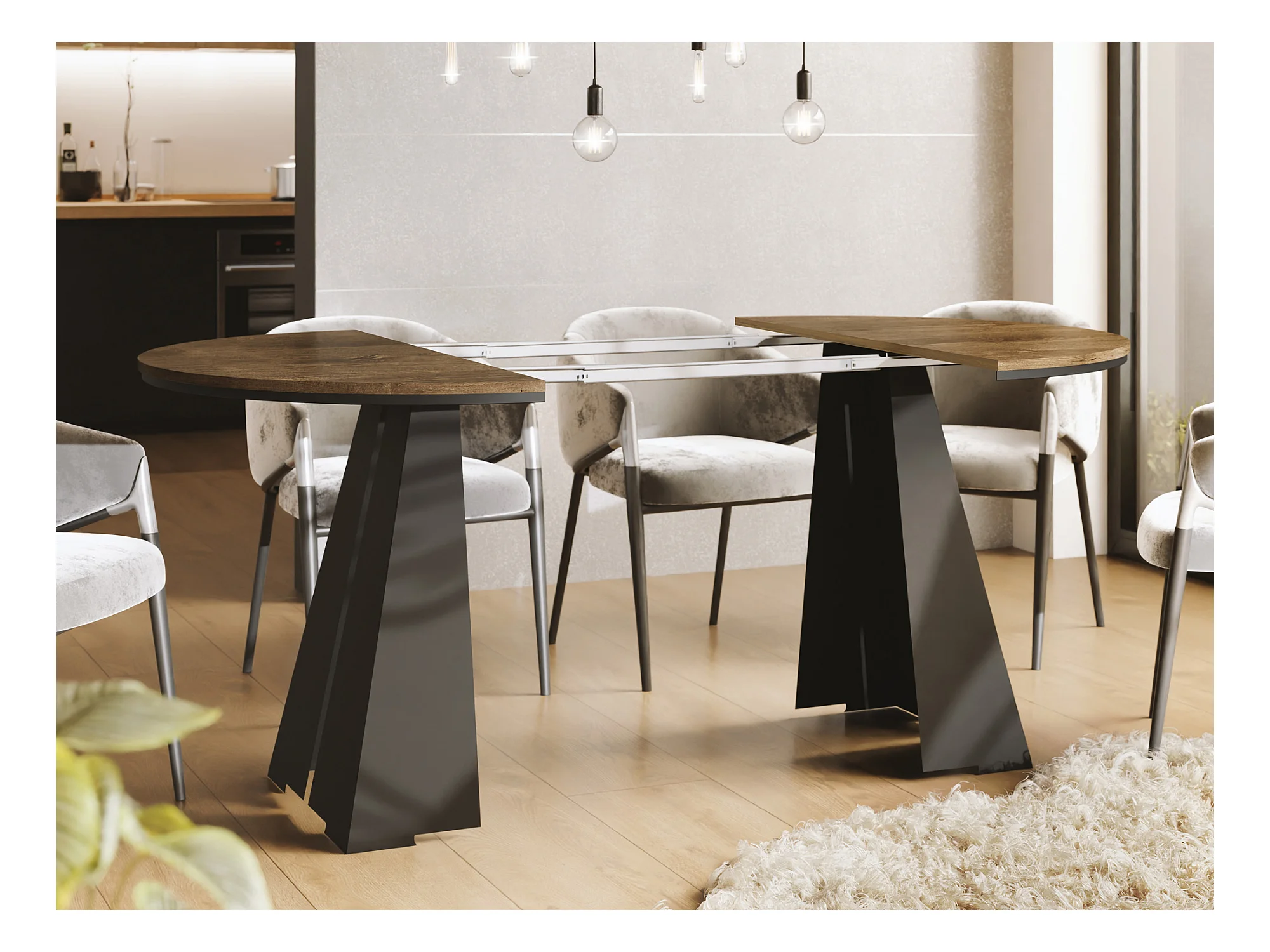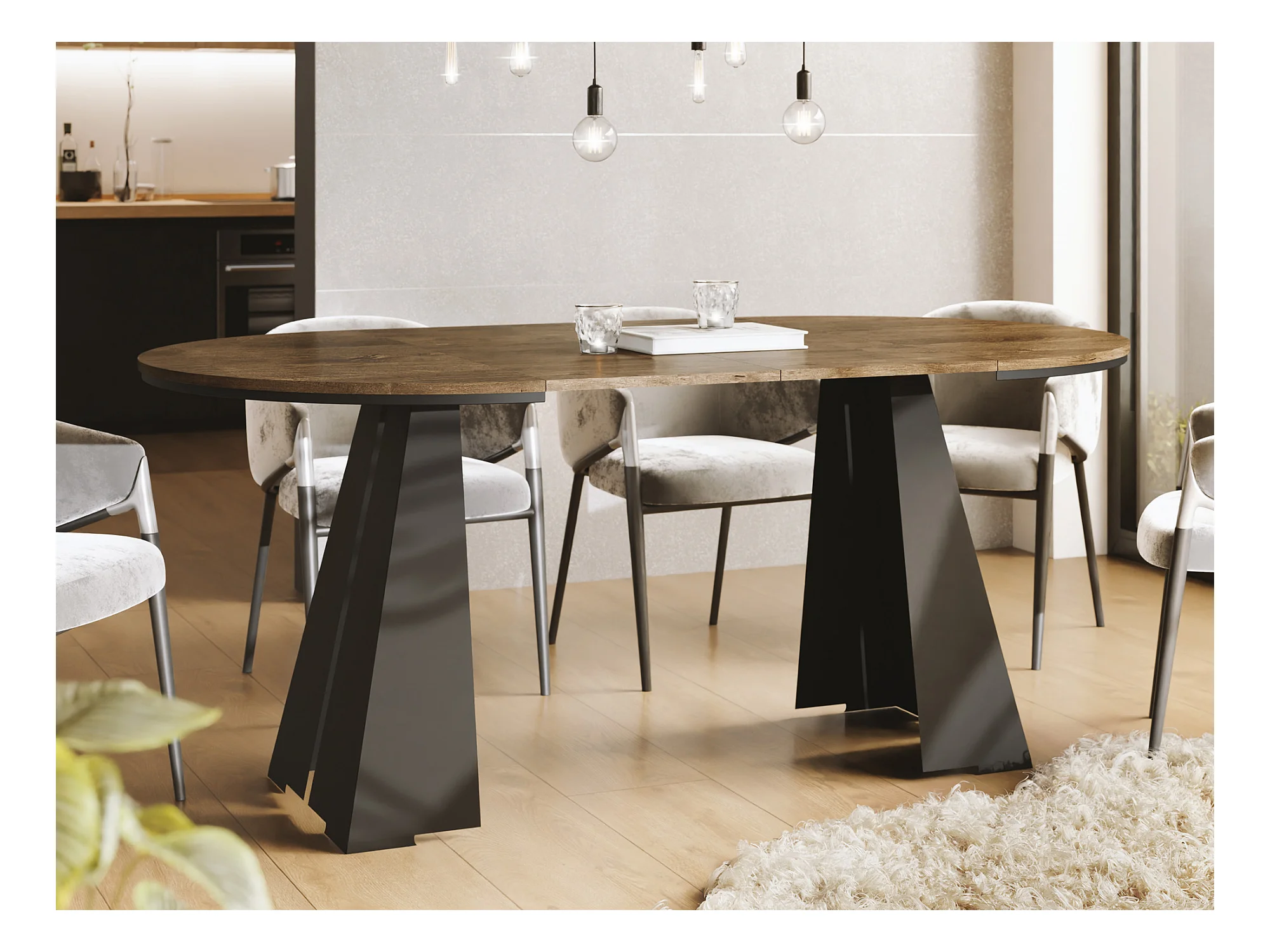 Runder Ausziehbarer Esstisch mit Schwarzem Metallgestell - Moderner Industrieller Tisch für Esszimmer oder Küche - 100 cm bis 180 cm - Made in EU - Lefkas Eiche