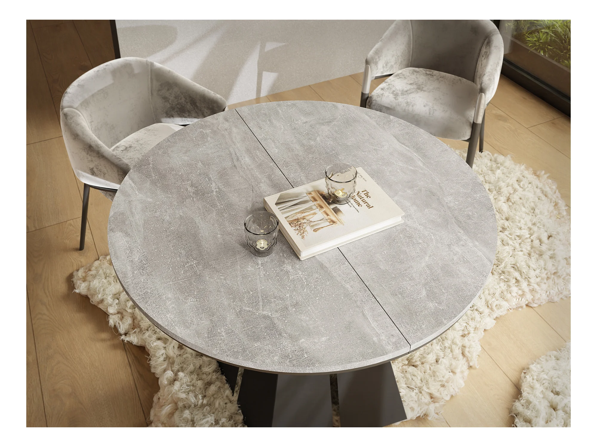 Runder Ausziehbarer Esstisch mit Schwarzem Metallgestell - Moderner Industrieller Tisch für Esszimmer oder Küche - 120 cm bis 200 cm - Made in EU - Grauer Beton