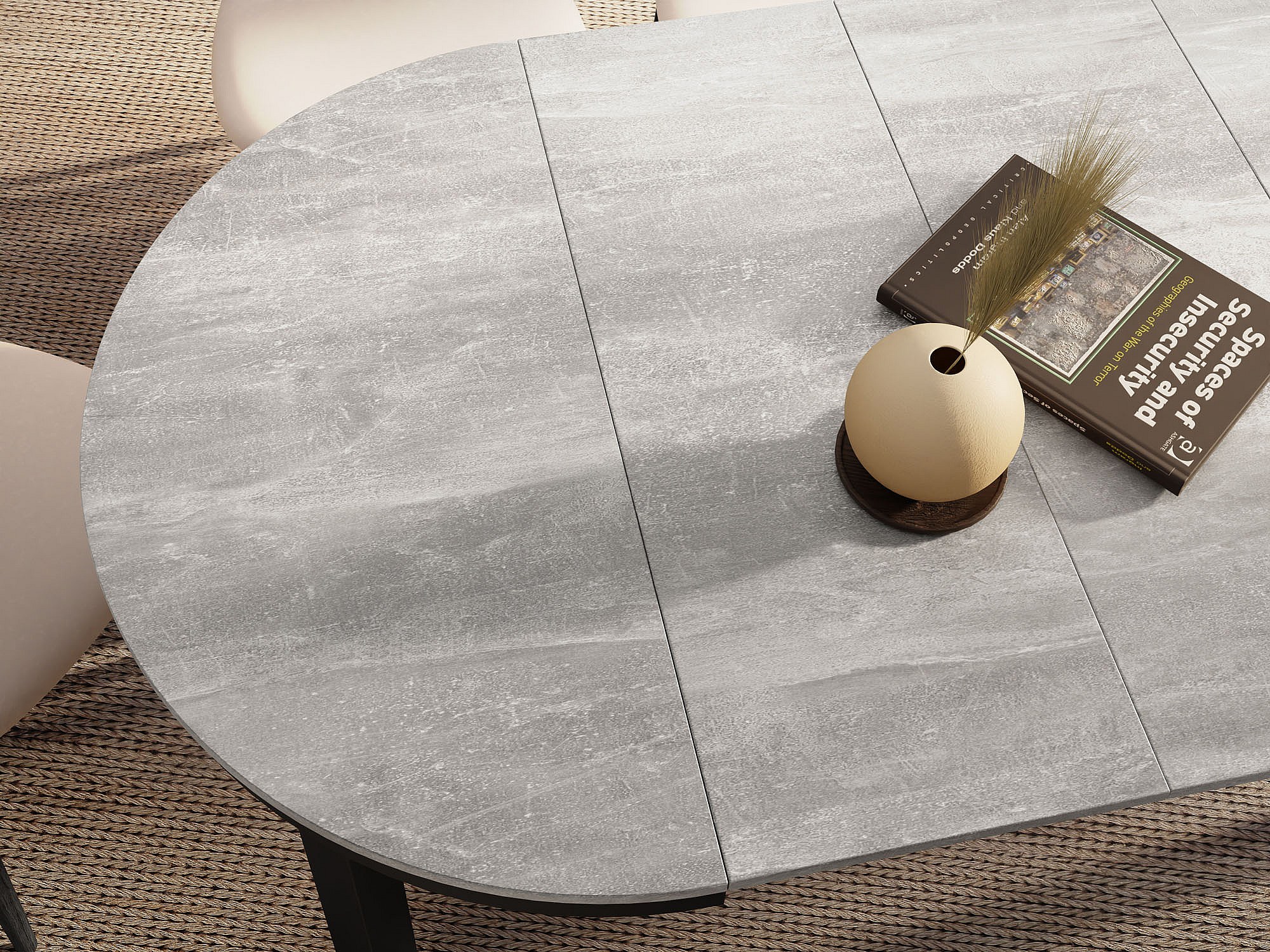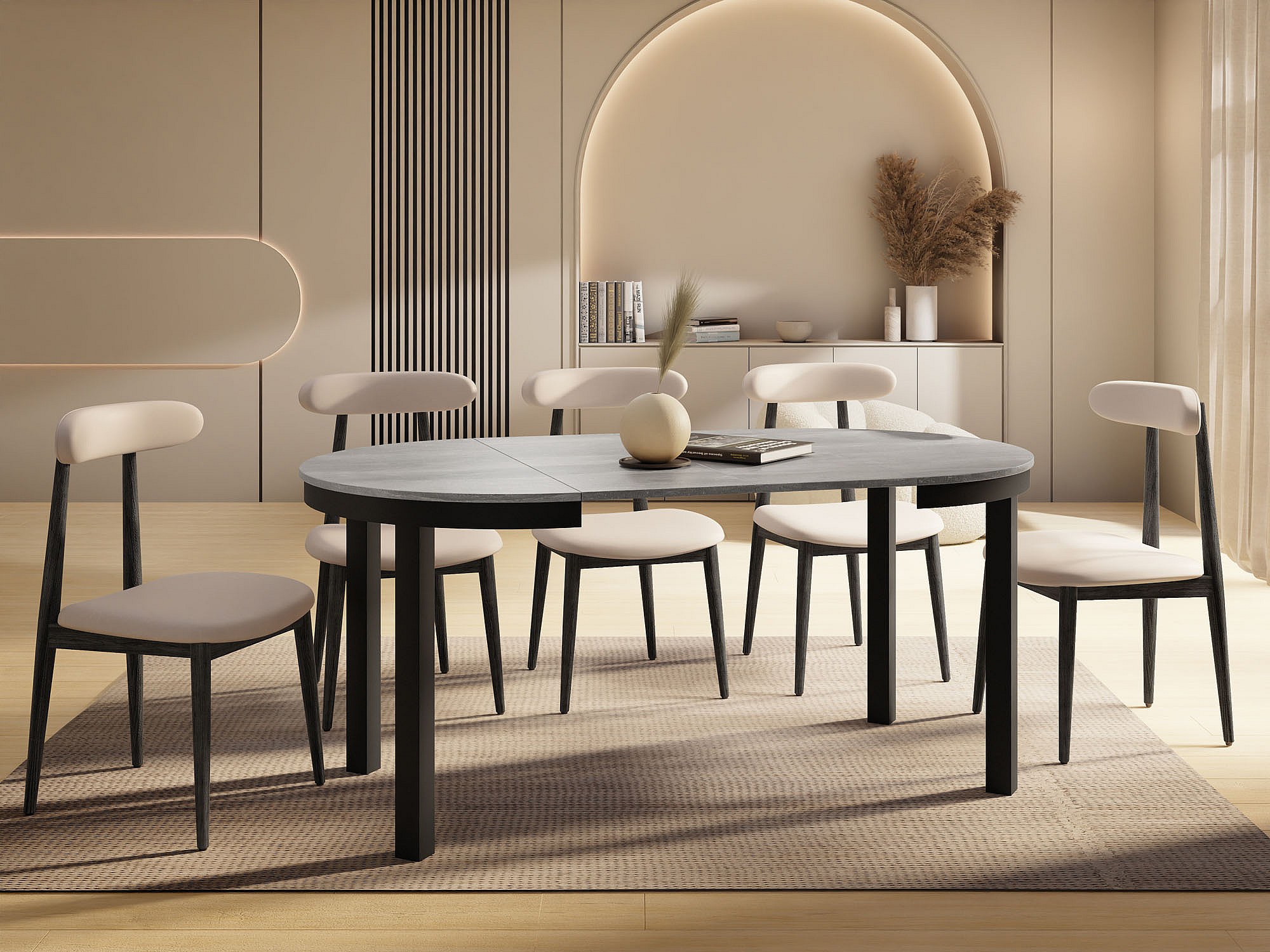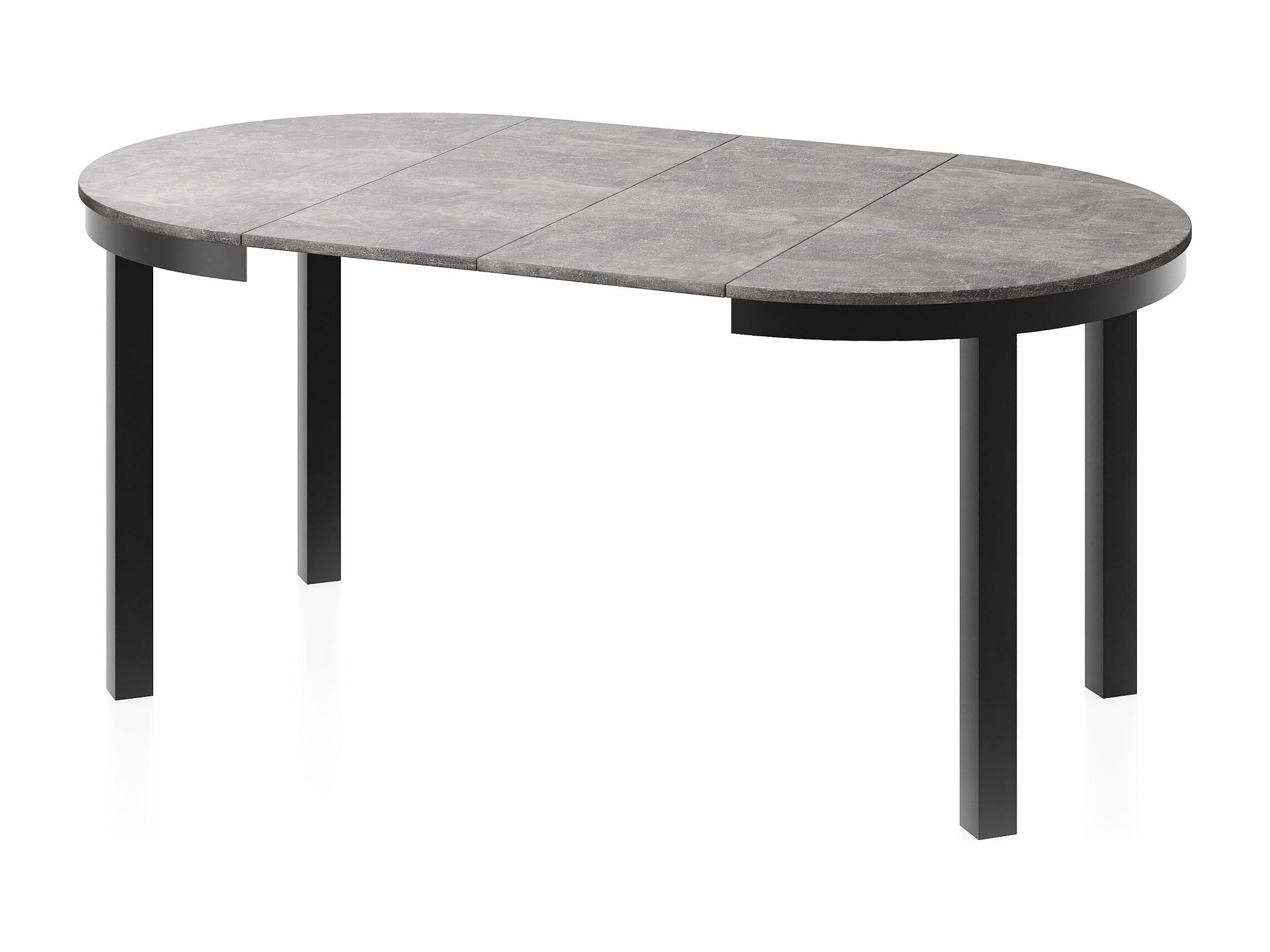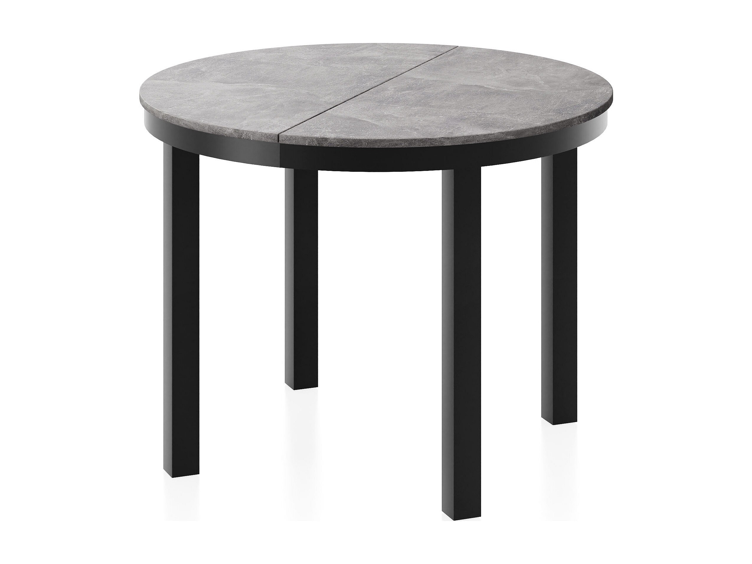 Runder Ausziehbarer Esstisch mit Schwarzem Metallgestell – Platzsparender Tisch im Loft-Stil – Grauer Beton mit Schwarzen Metallbeinen – 100 bis 180 cm