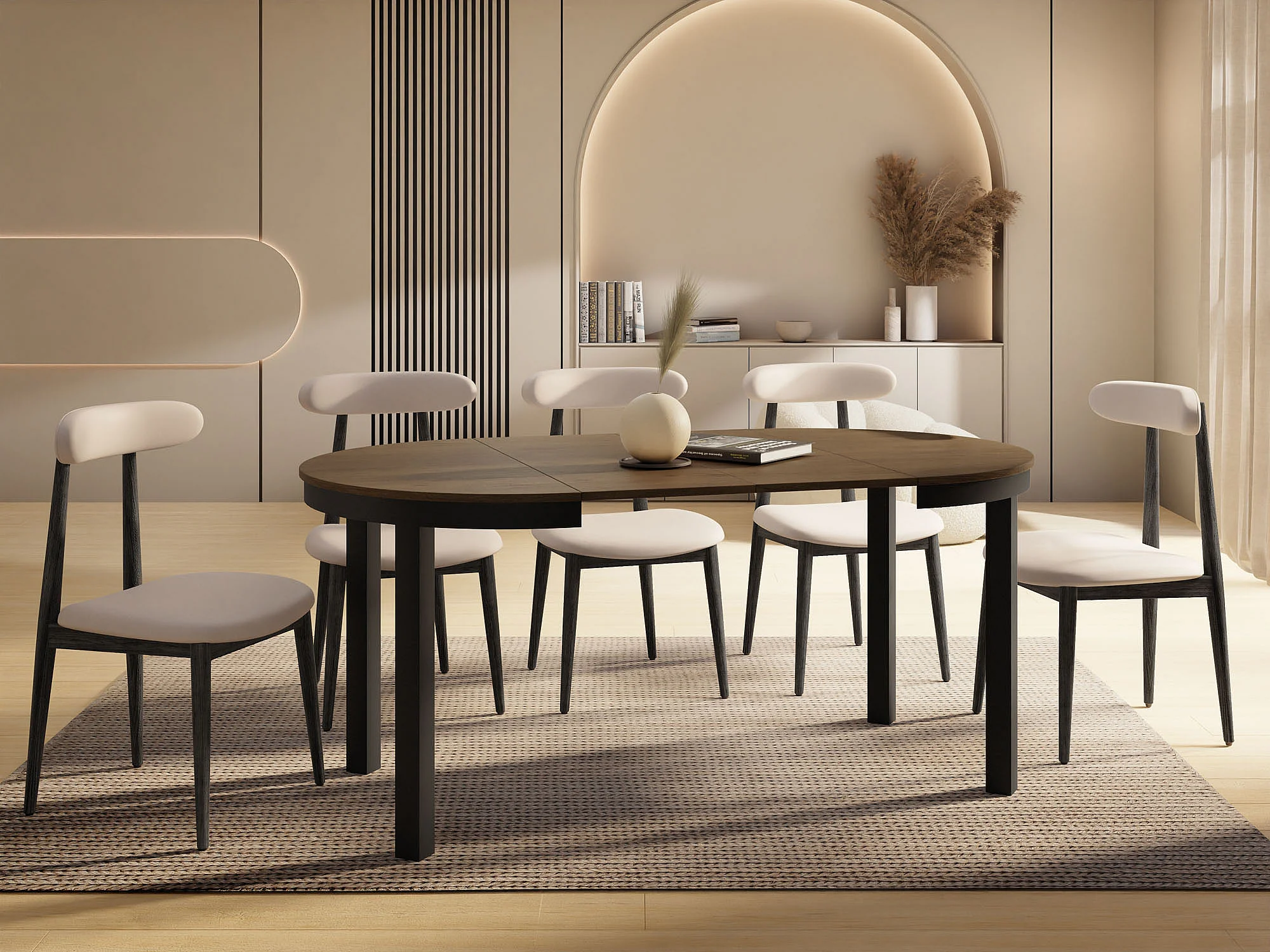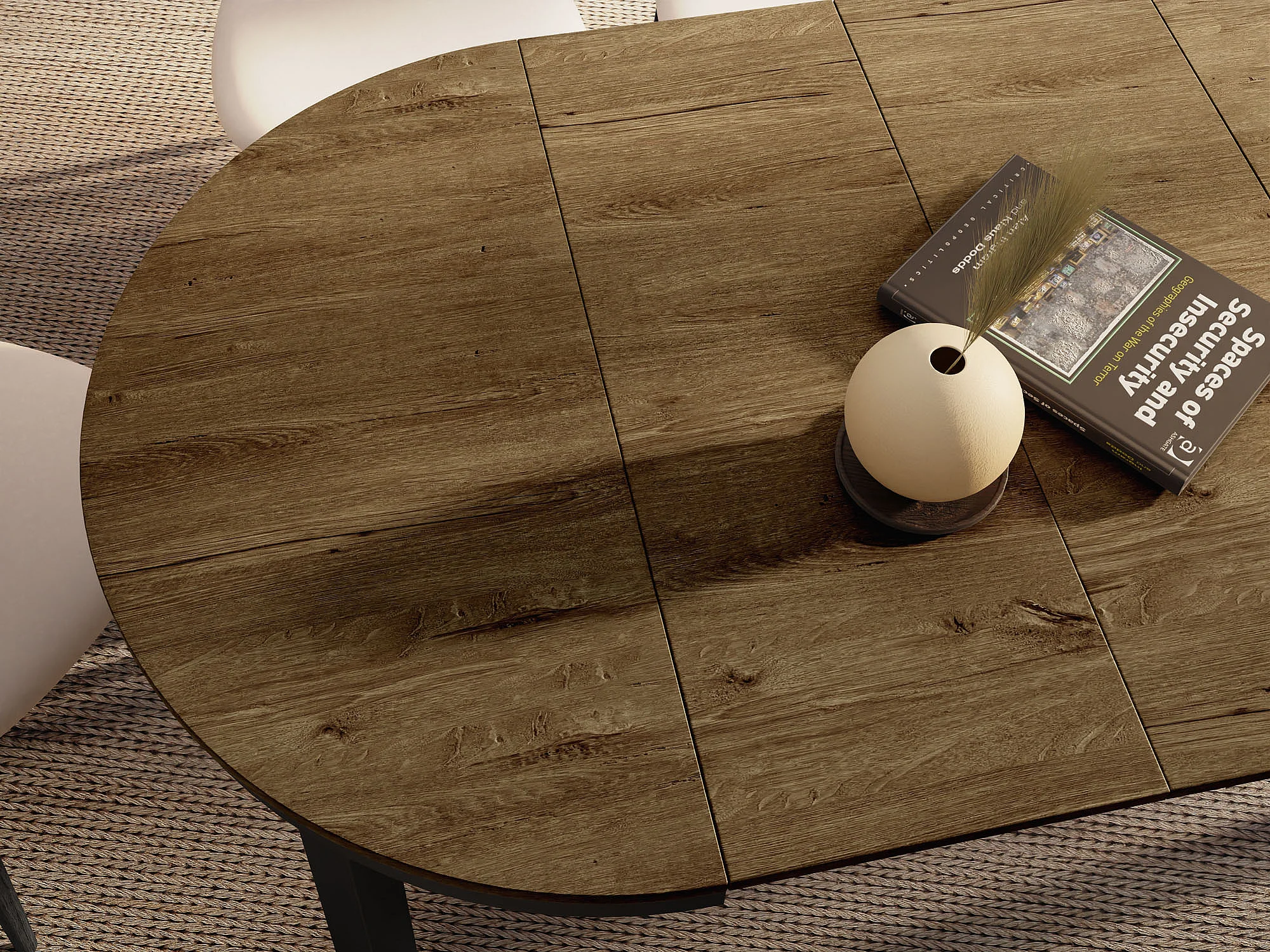 Runder Ausziehbarer Esstisch mit Schwarzem Metallgestell – Platzsparender Tisch im Loft-Stil – Lefkas Eiche mit Schwarzen Metallbeinen – 100 bis 180 cm