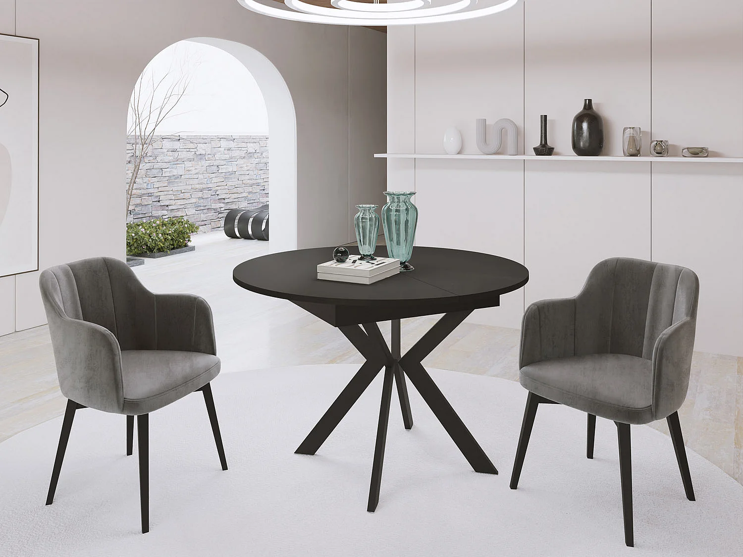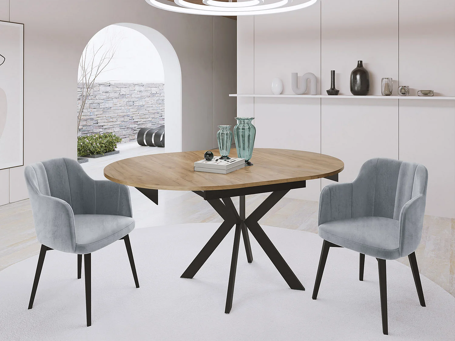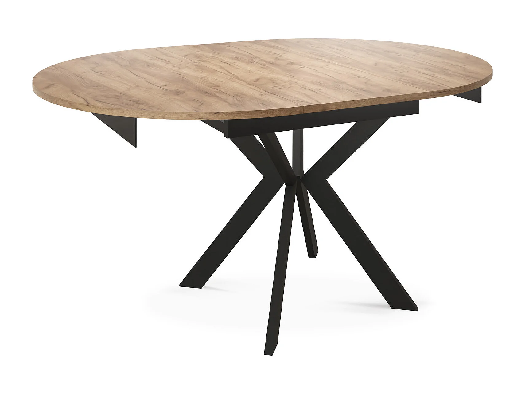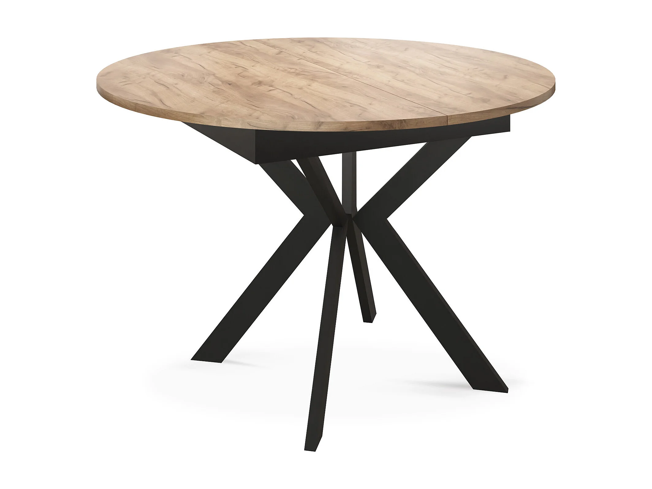 Runder Ausziehbarer Esstisch mit Schwarzen Metallbeinen - Aufbewahrung der Erweiterungsplatte im Inneren - Industrieller Tisch für Wohnzimmer - 100 cm - Craft Eiche