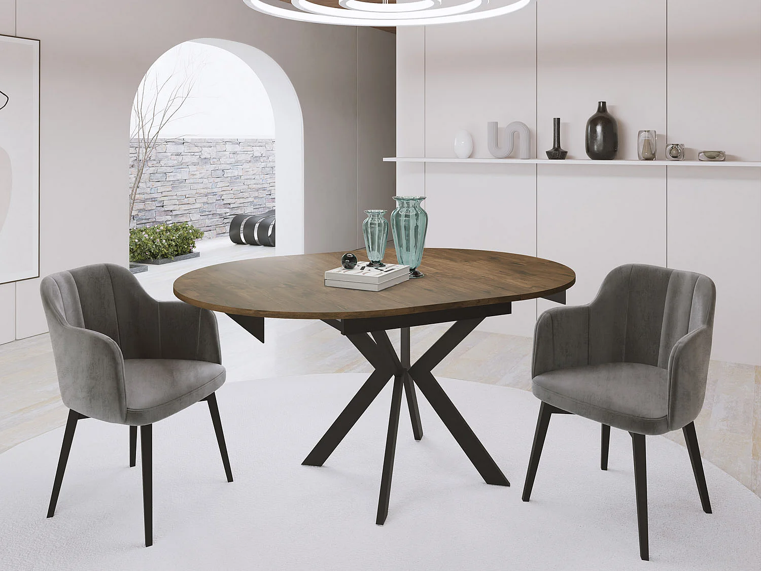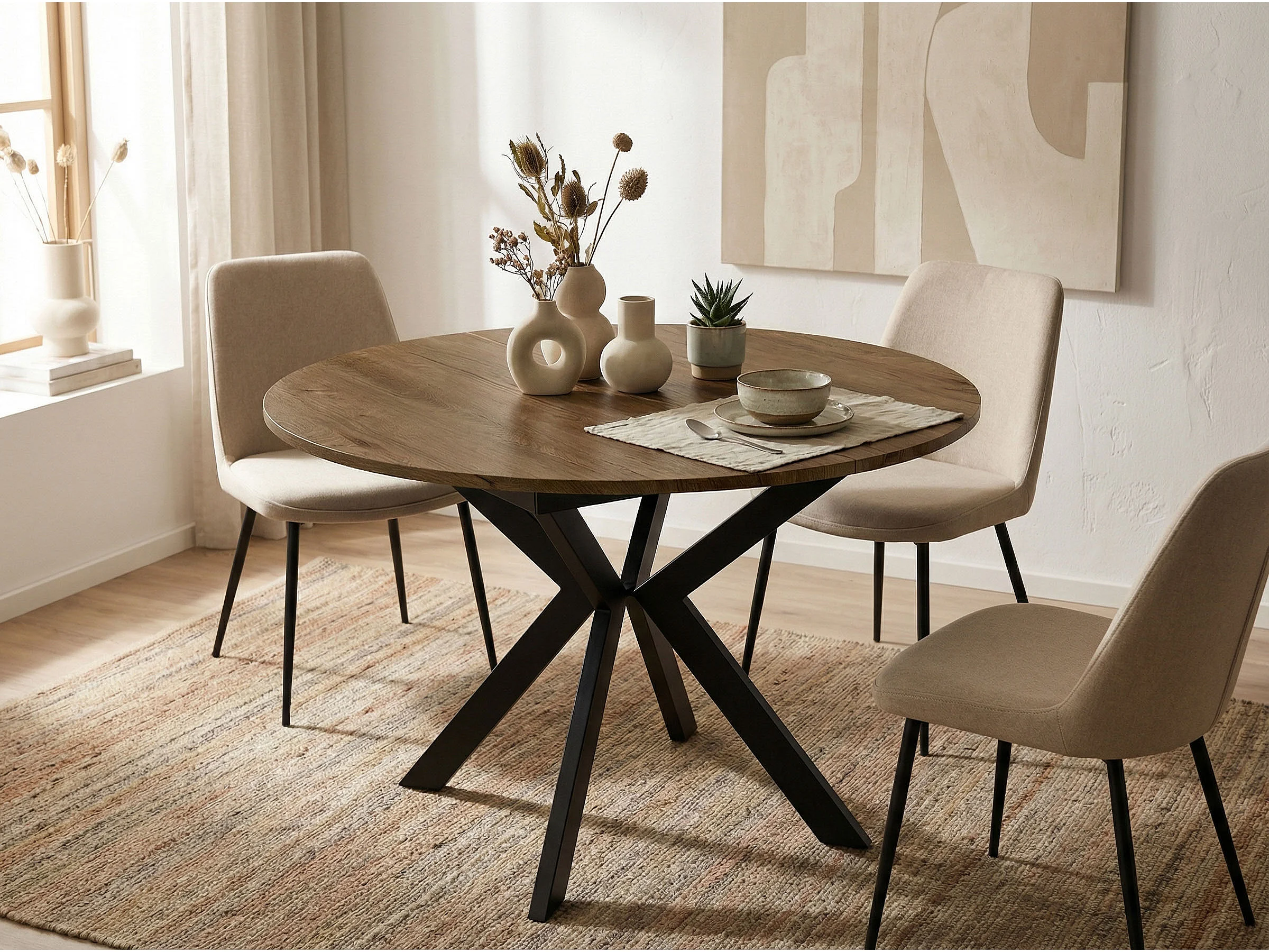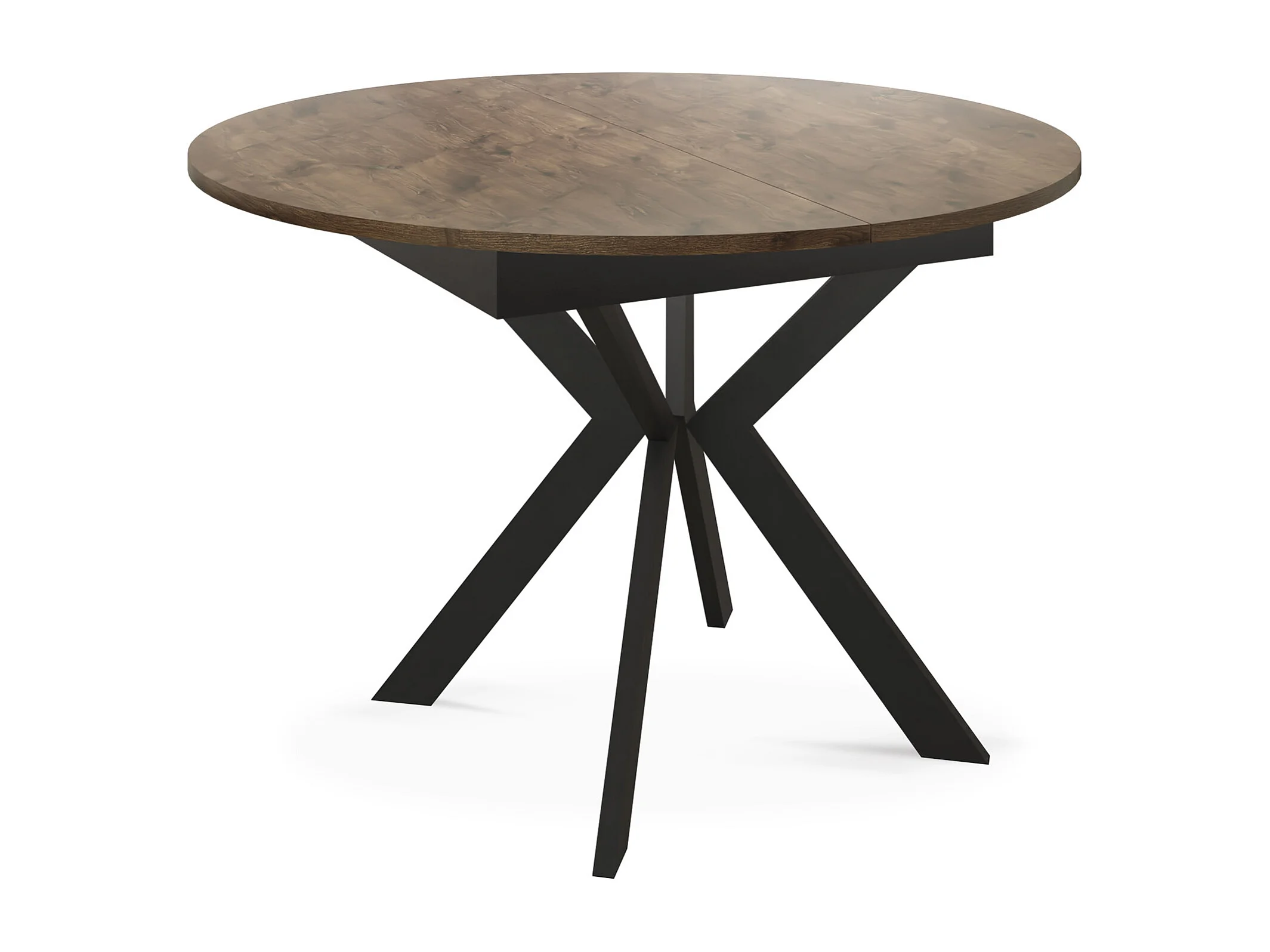 Runder Ausziehbarer Esstisch mit Schwarzen Metallbeinen - Aufbewahrung der Erweiterungsplatte im Inneren - Industrieller Tisch für Wohnzimmer 100 cm - Lefkas Eiche