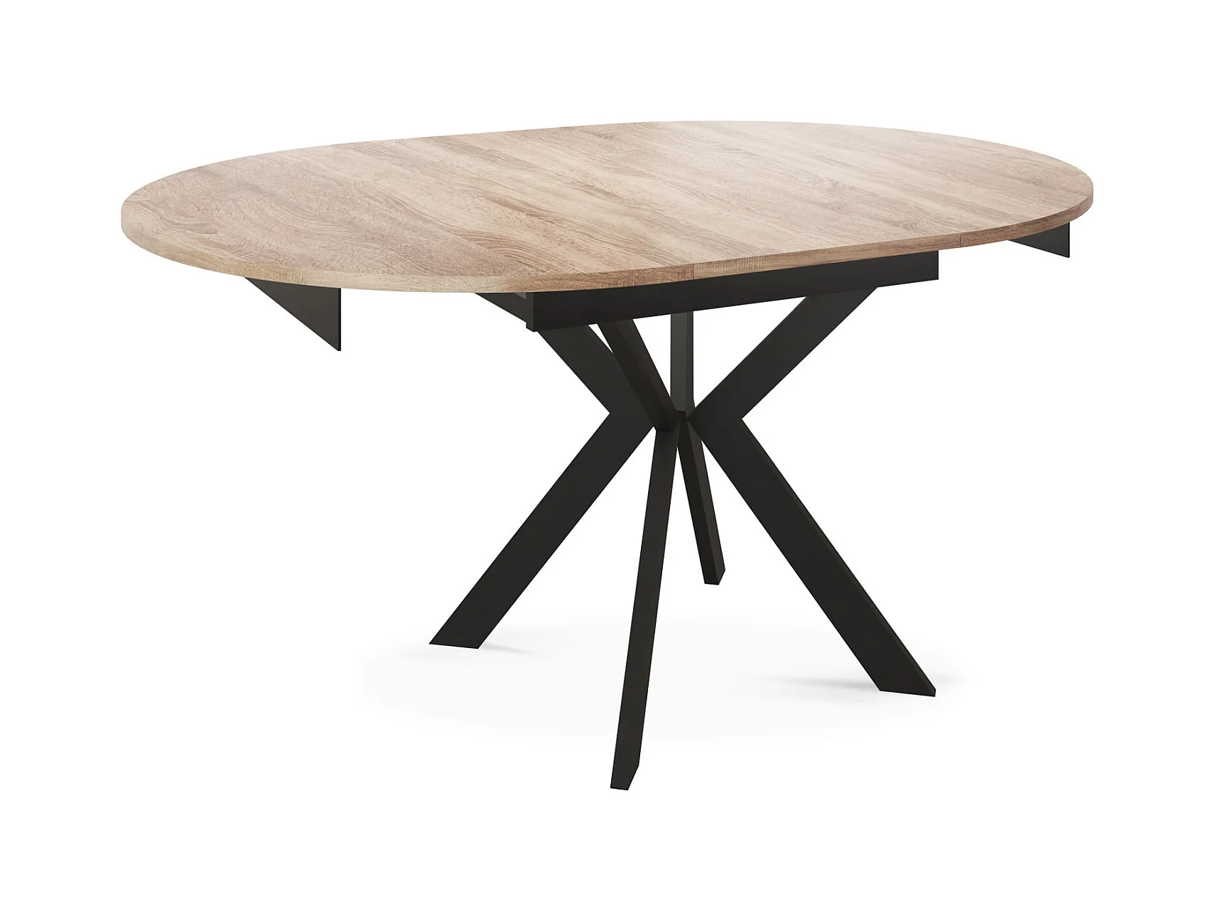 Runder Ausziehbarer Esstisch mit Schwarzen Metallbeinen - Aufbewahrung der Erweiterungsplatte im Inneren - Industrieller Tisch für Wohnzimmer 100 cm - Sonoma Eiche
