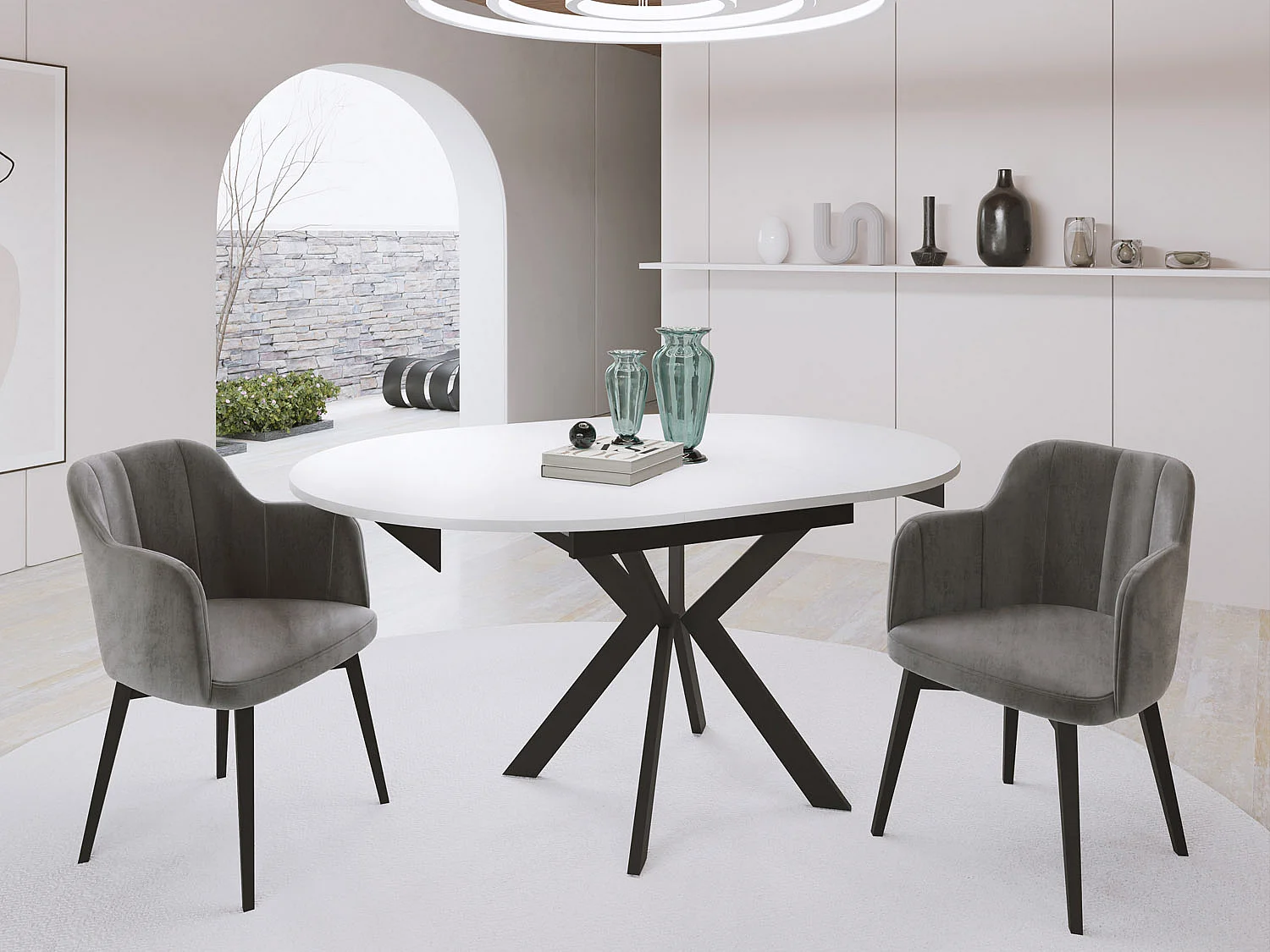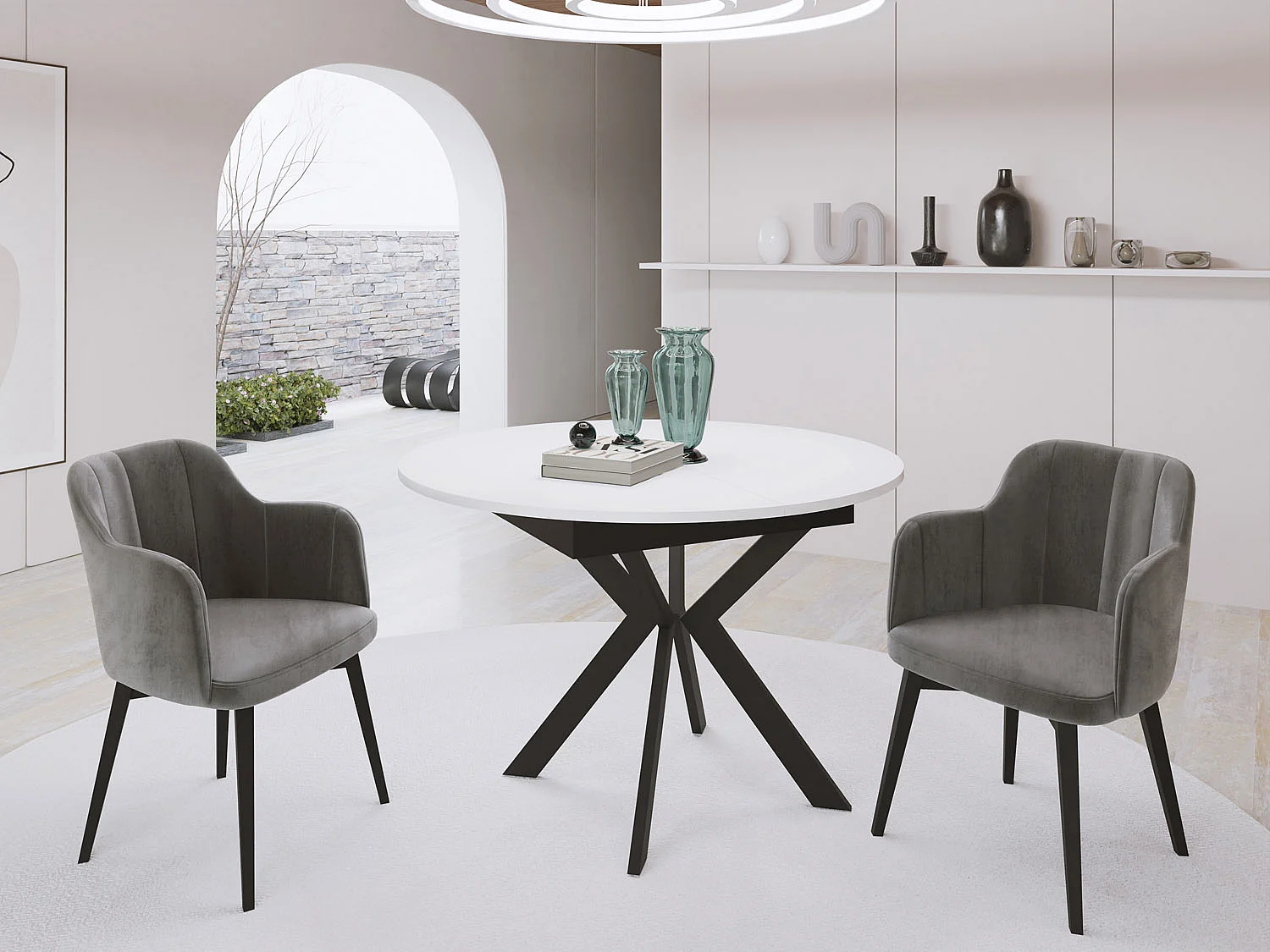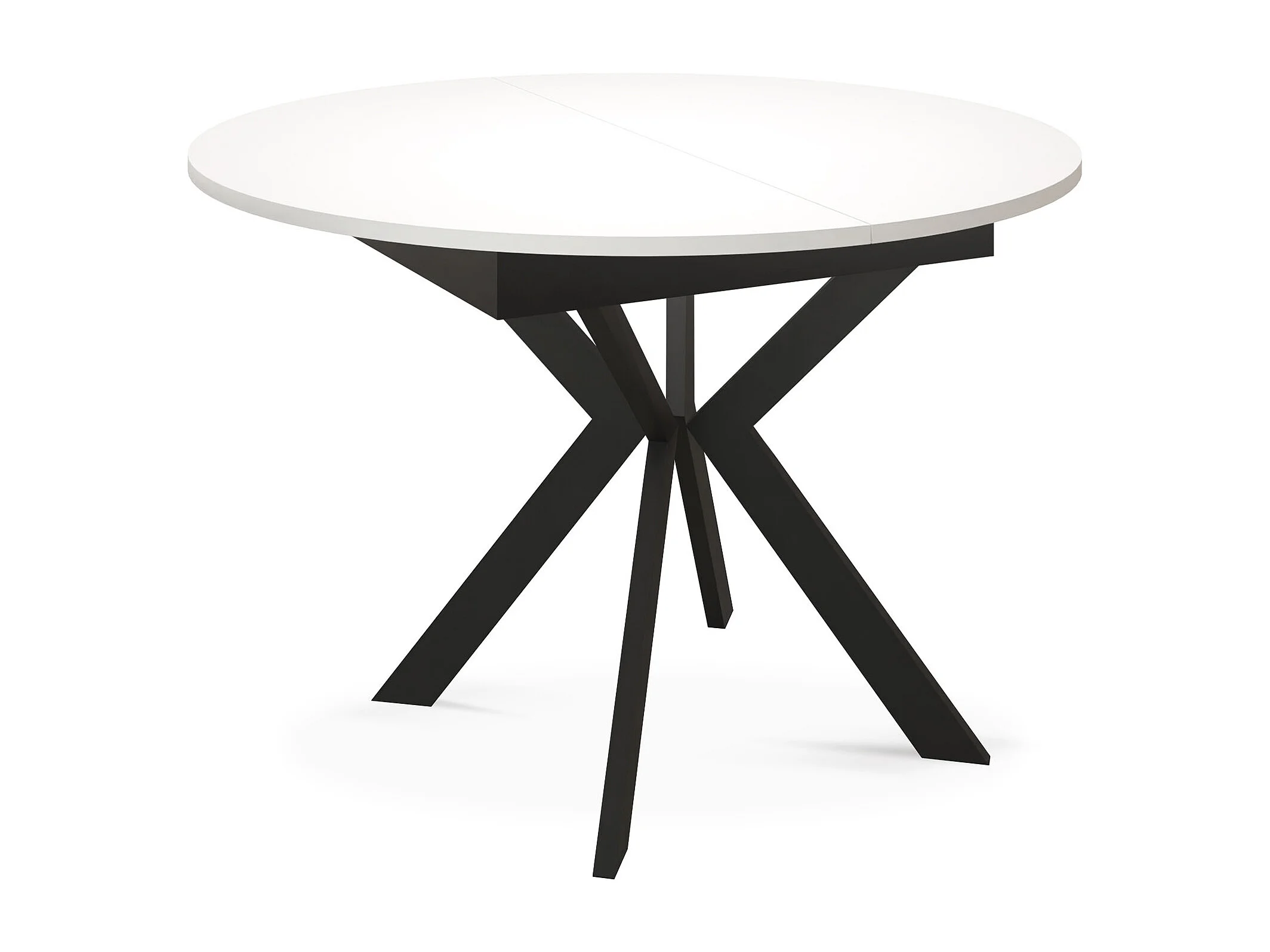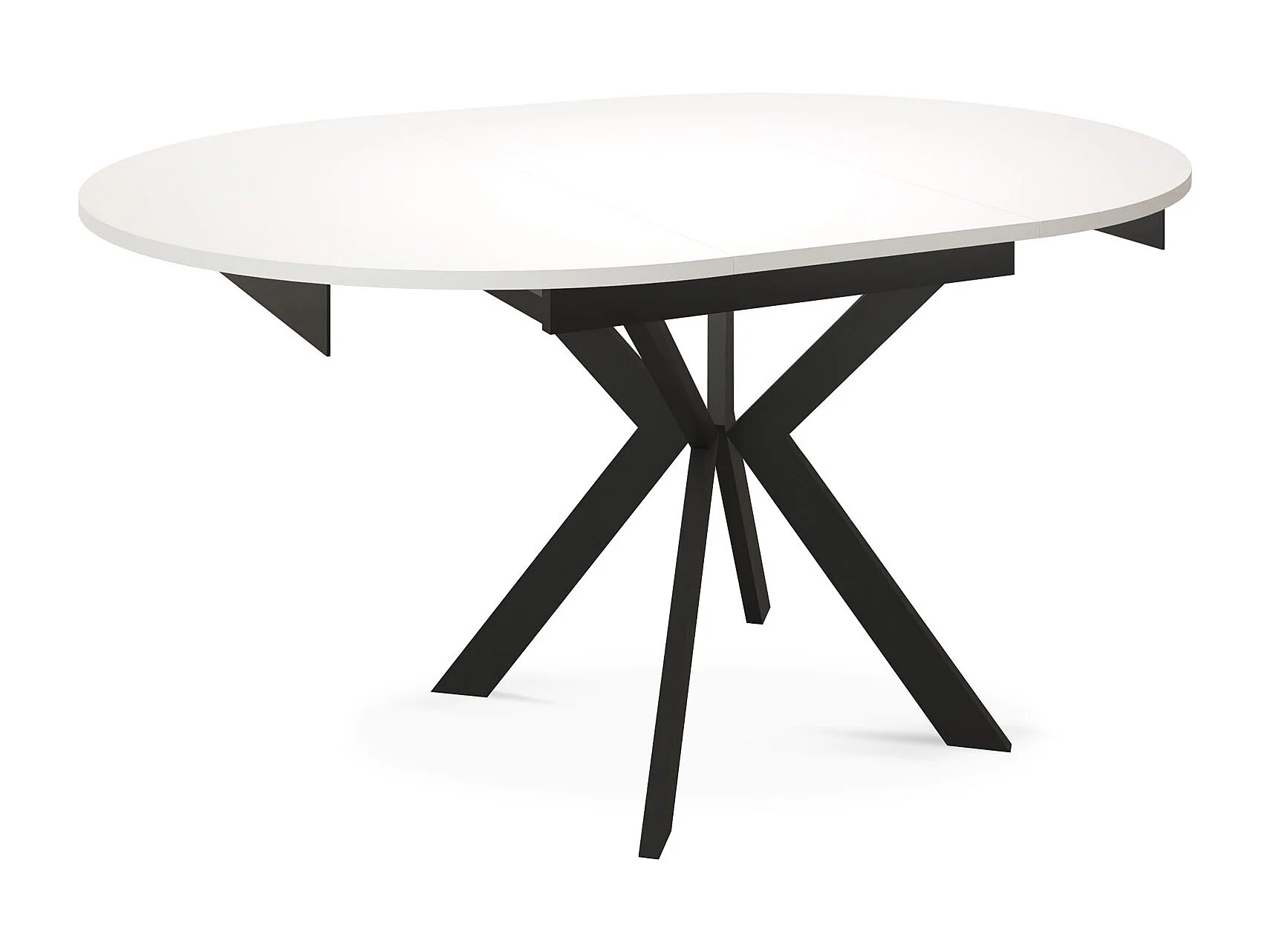 Runder Ausziehbarer Esstisch mit Schwarzen Metallbeinen - Aufbewahrung der Erweiterungsplatte im Inneren - Industrieller Tisch für Wohnzimmer - 100 cm - Weiß