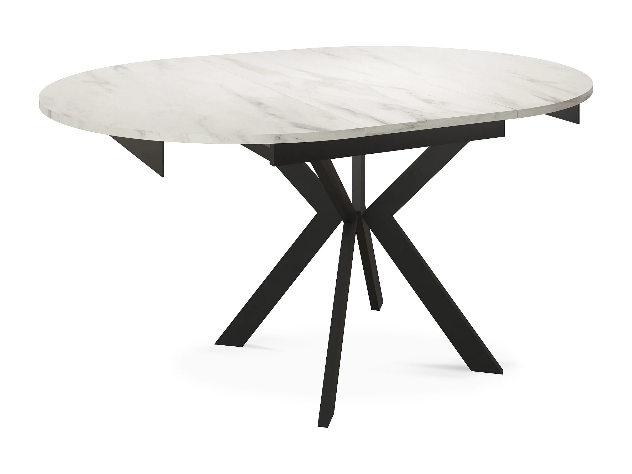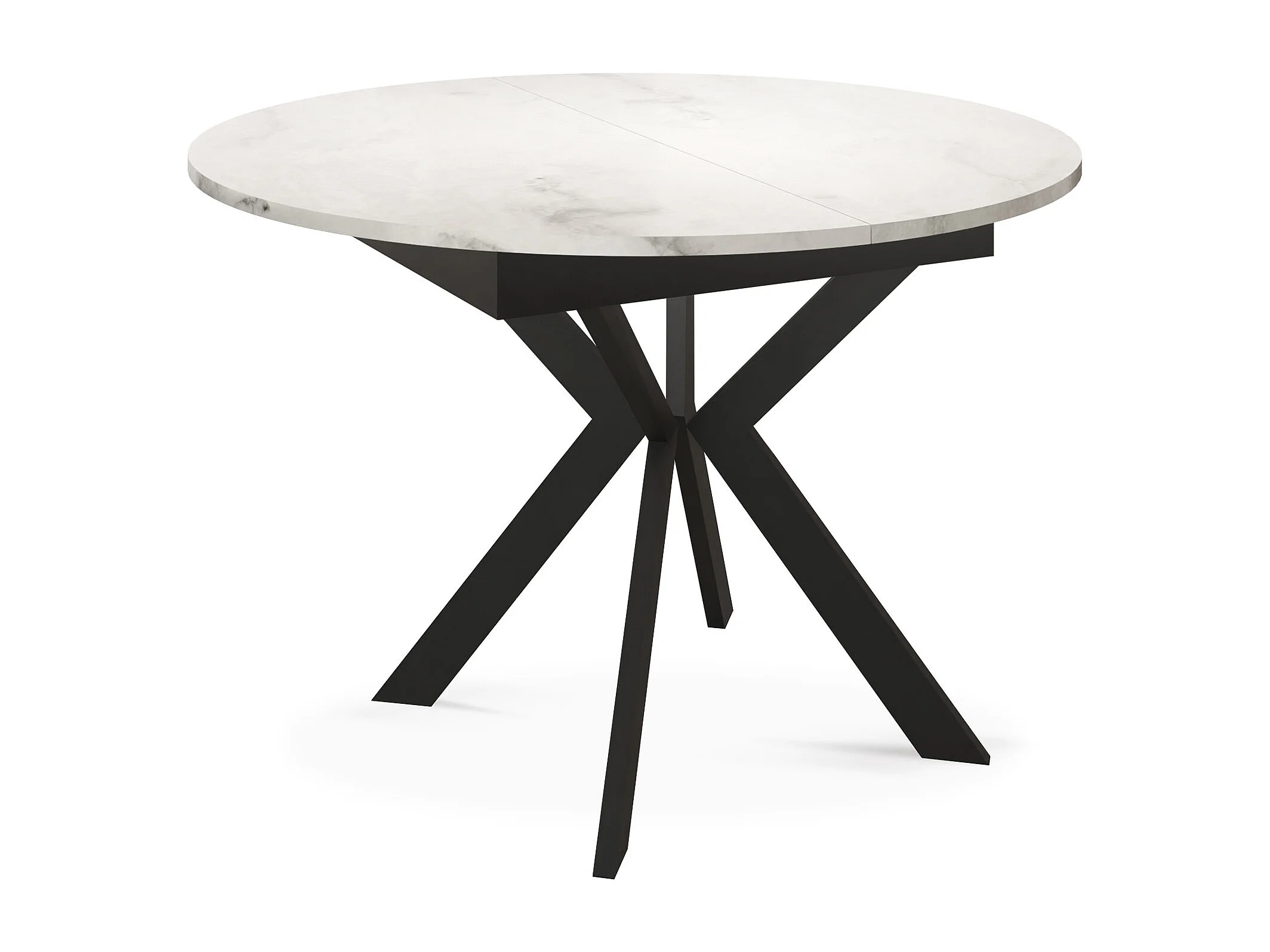 Runder Ausziehbarer Esstisch mit Schwarzen Metallbeinen - Aufbewahrung der Erweiterungsplatte im Inneren - Industrieller Tisch für Wohnzimmer 100 cm - Marmor Weiß