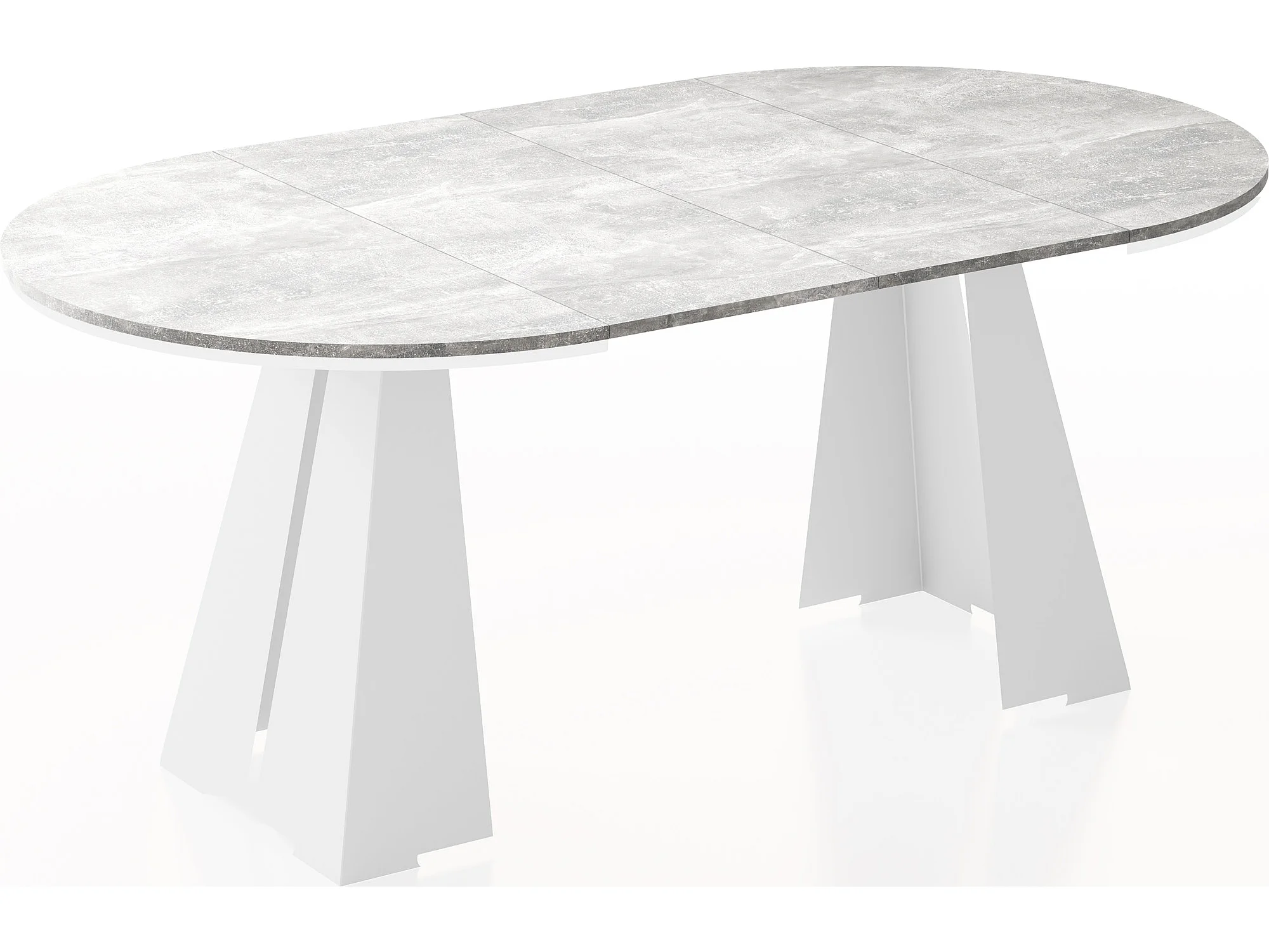 Runder ausziehbarer Esstisch mit weißem Metallgestell - Moderner industrieller Tisch für Esszimmer oder Küche - 100 cm bis 180 cm - Made in EU - Grauer Beton