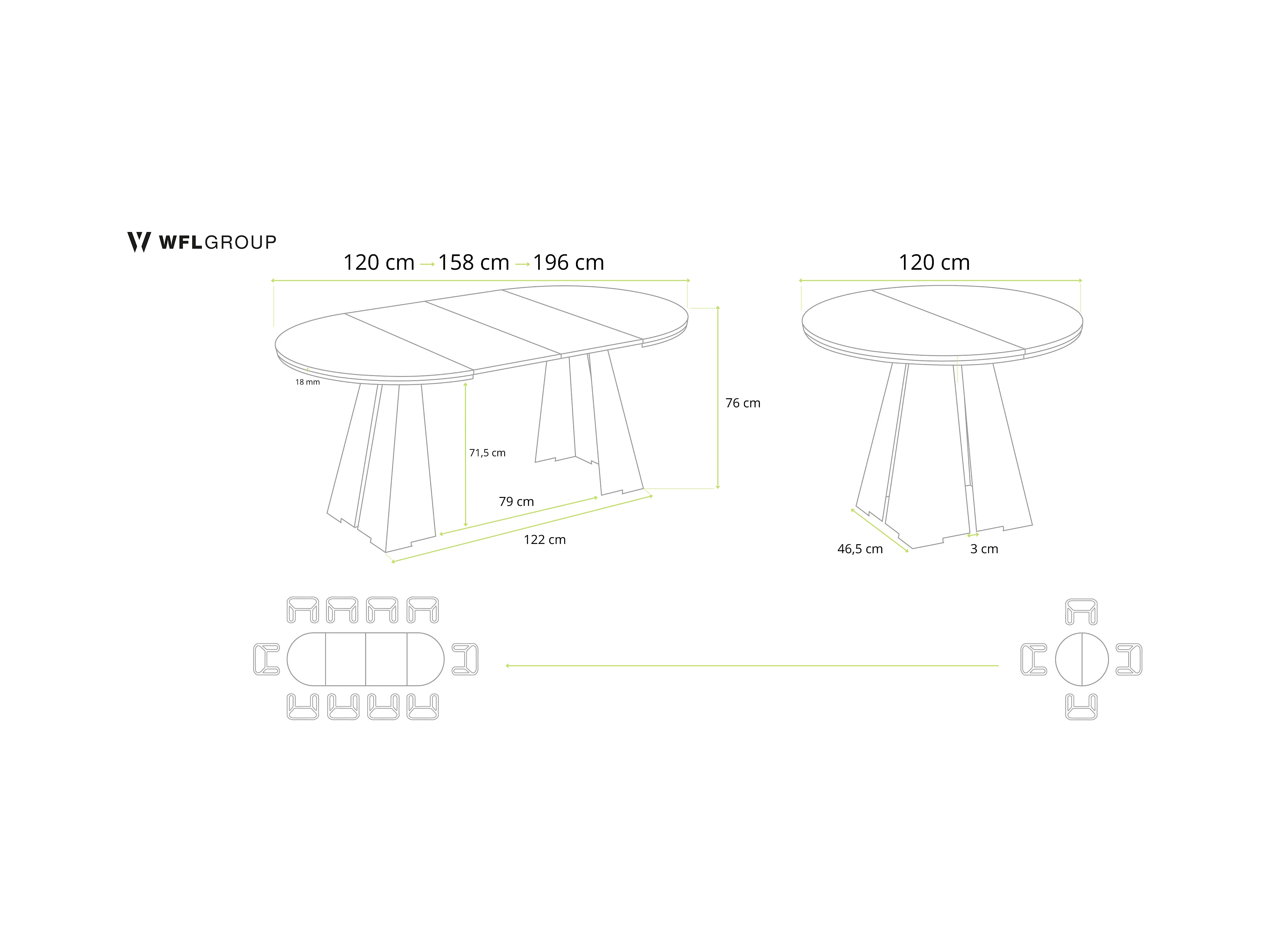 Runder ausziehbarer Esstisch mit weißem Metallgestell - moderner industrieller Tisch für Esszimmer oder Küche - 100 cm bis 180 cm - Made in EU - Lancelot Eiche