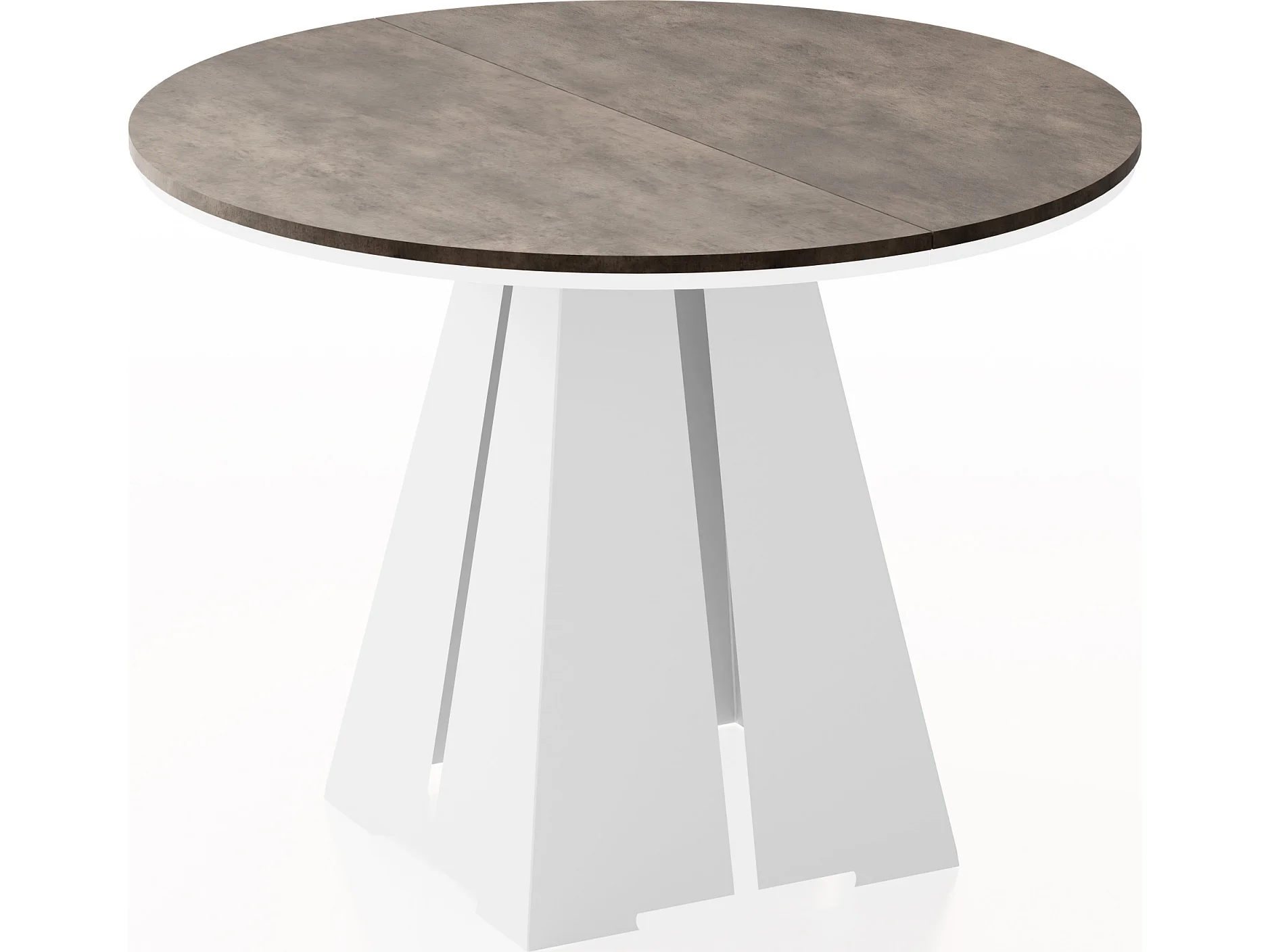 Runder ausziehbarer Esstisch mit weißem Metallgestell - moderner industrieller Tisch für Esszimmer oder Küche - 120 cm bis 200 cm - Made in EU - Chicago Beton