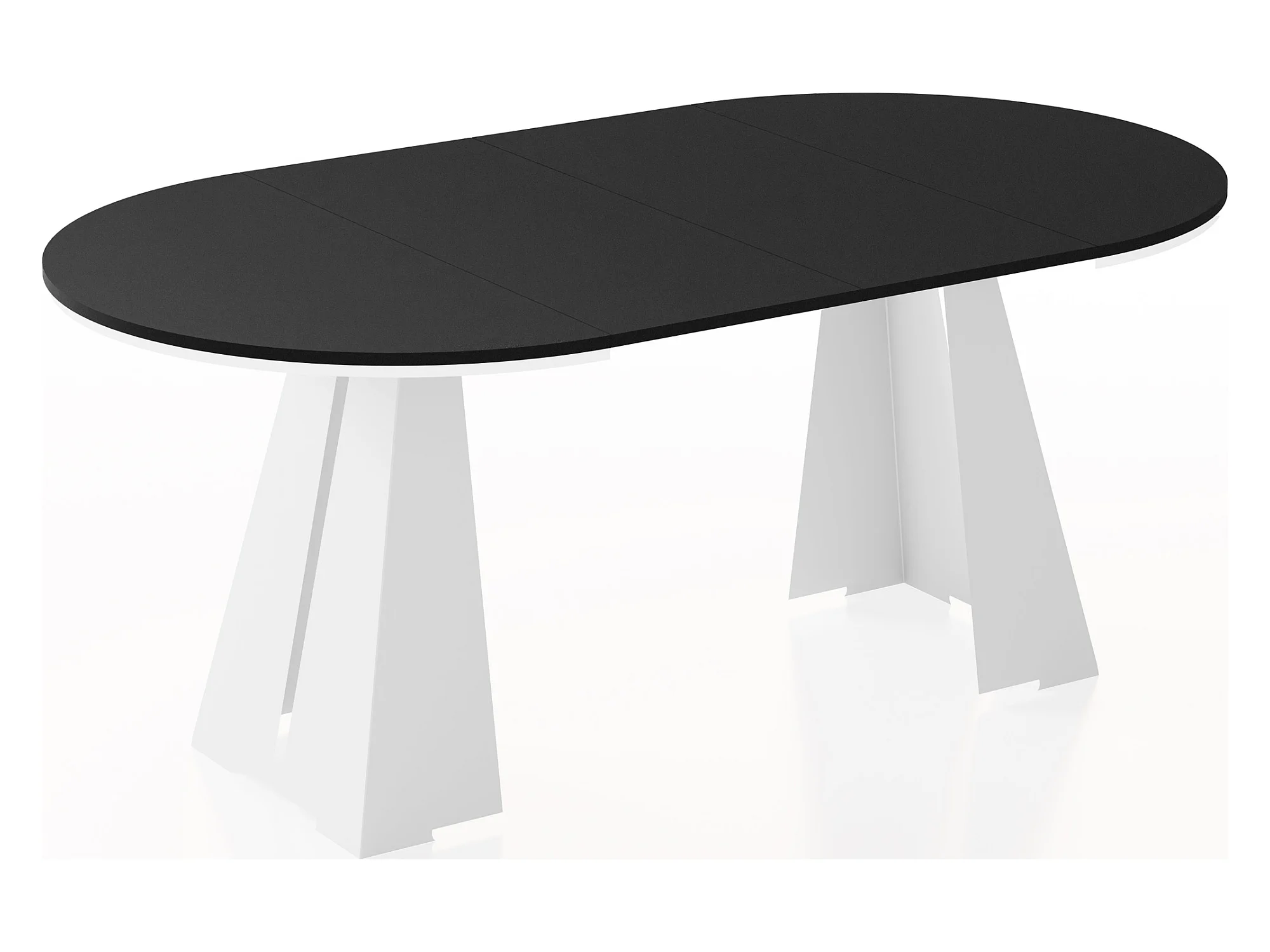 Runder ausziehbarer Esstisch mit weißem Metallgestell - moderner industrieller Tisch für Esszimmer oder Küche - 120 cm bis 200 cm - Made in EU - Schwarz