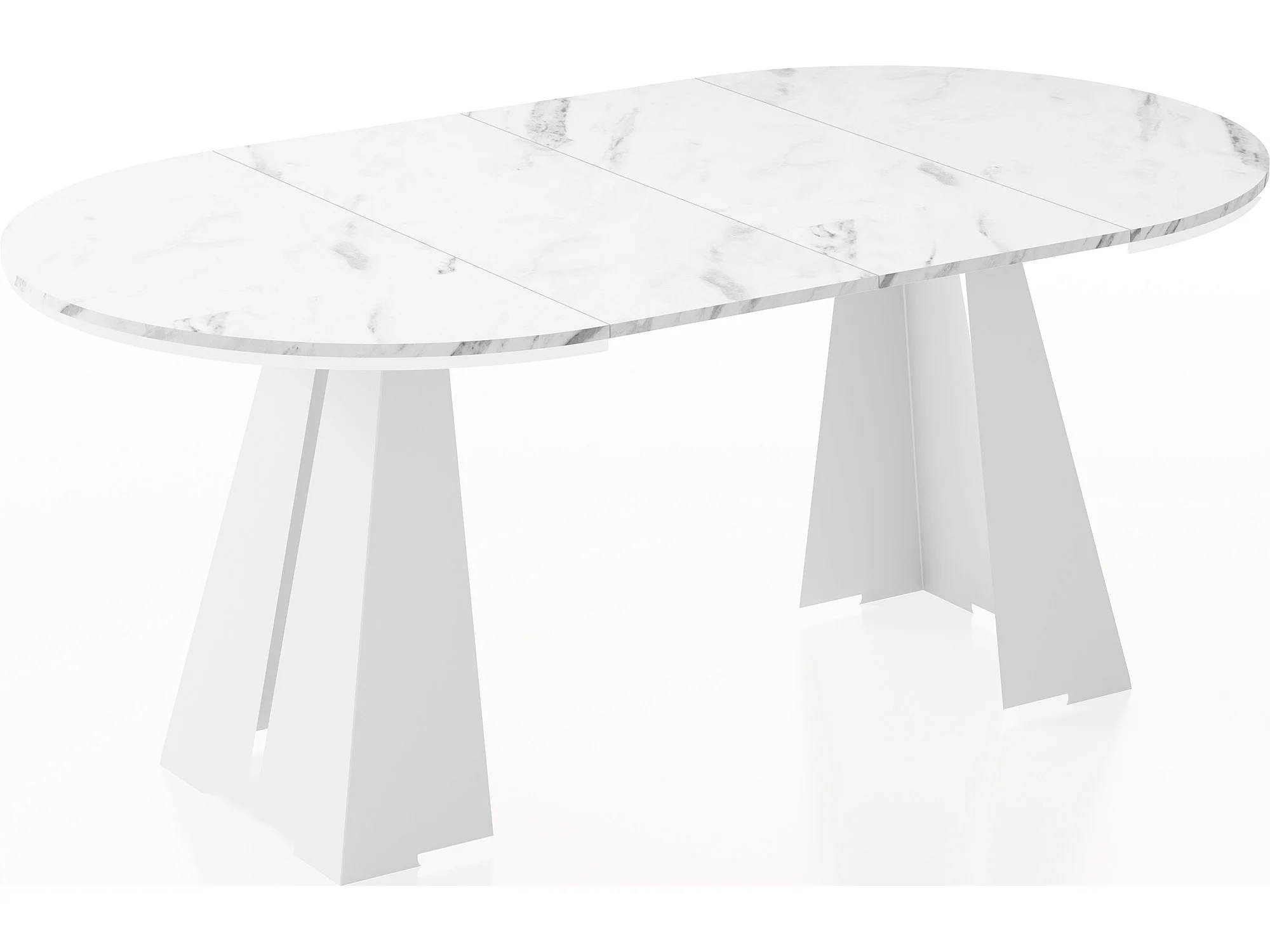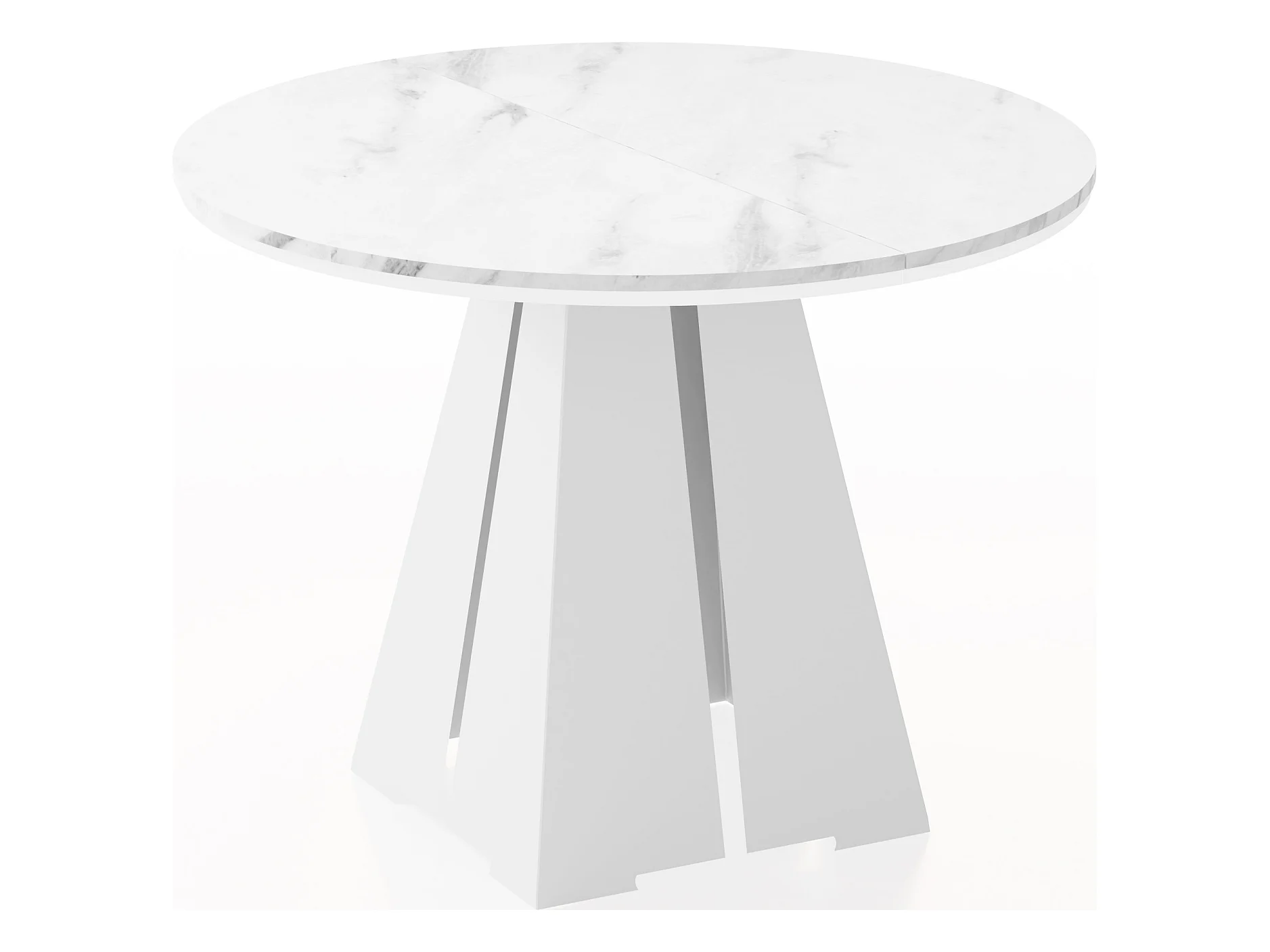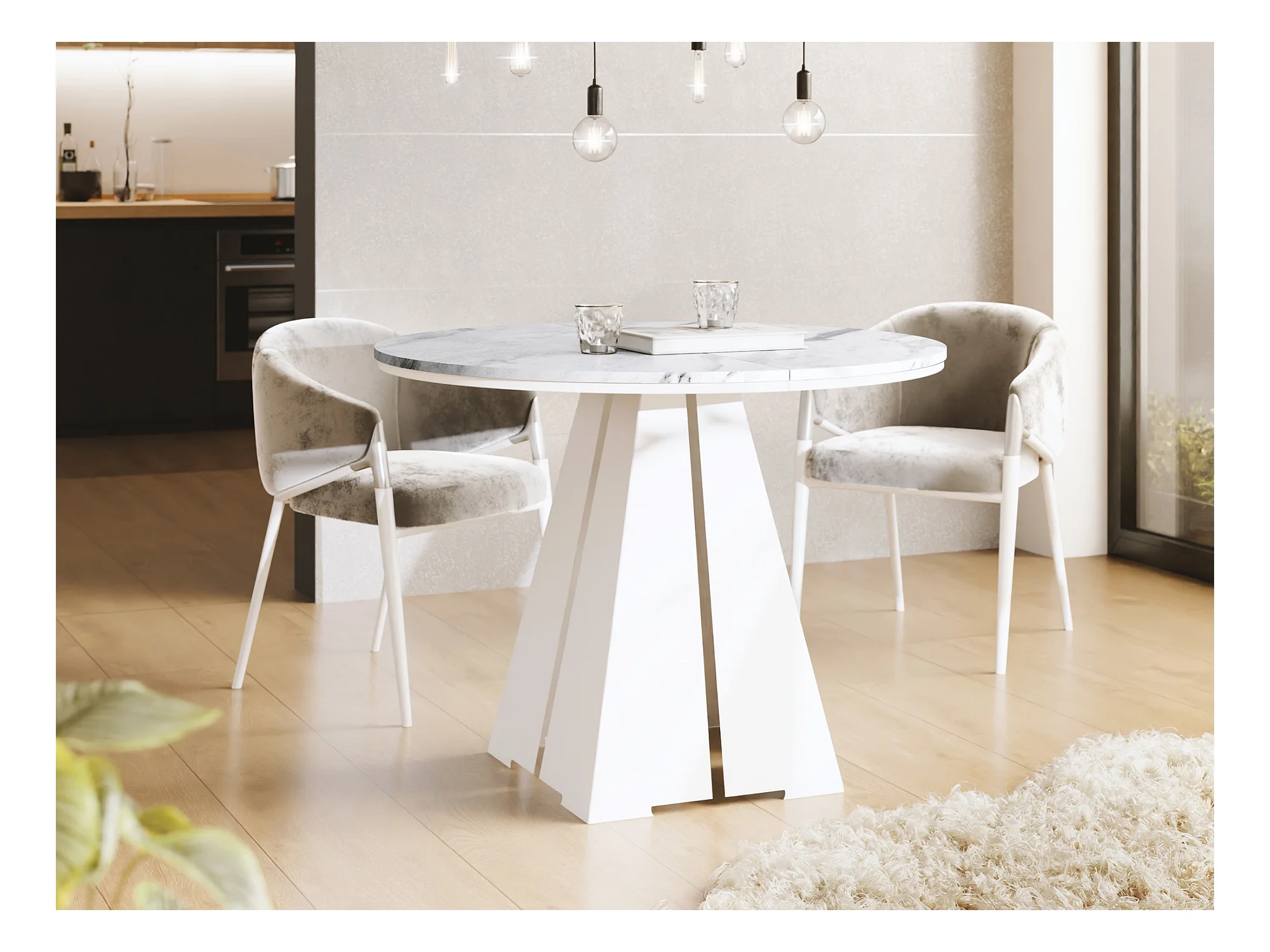 Runder Ausziehbarer Esstisch mit Weißem Metallgestell - Moderner Industrieller Tisch für Esszimmer oder Küche - 120 cm bis 200 cm - Made in EU - Marmor Weiß