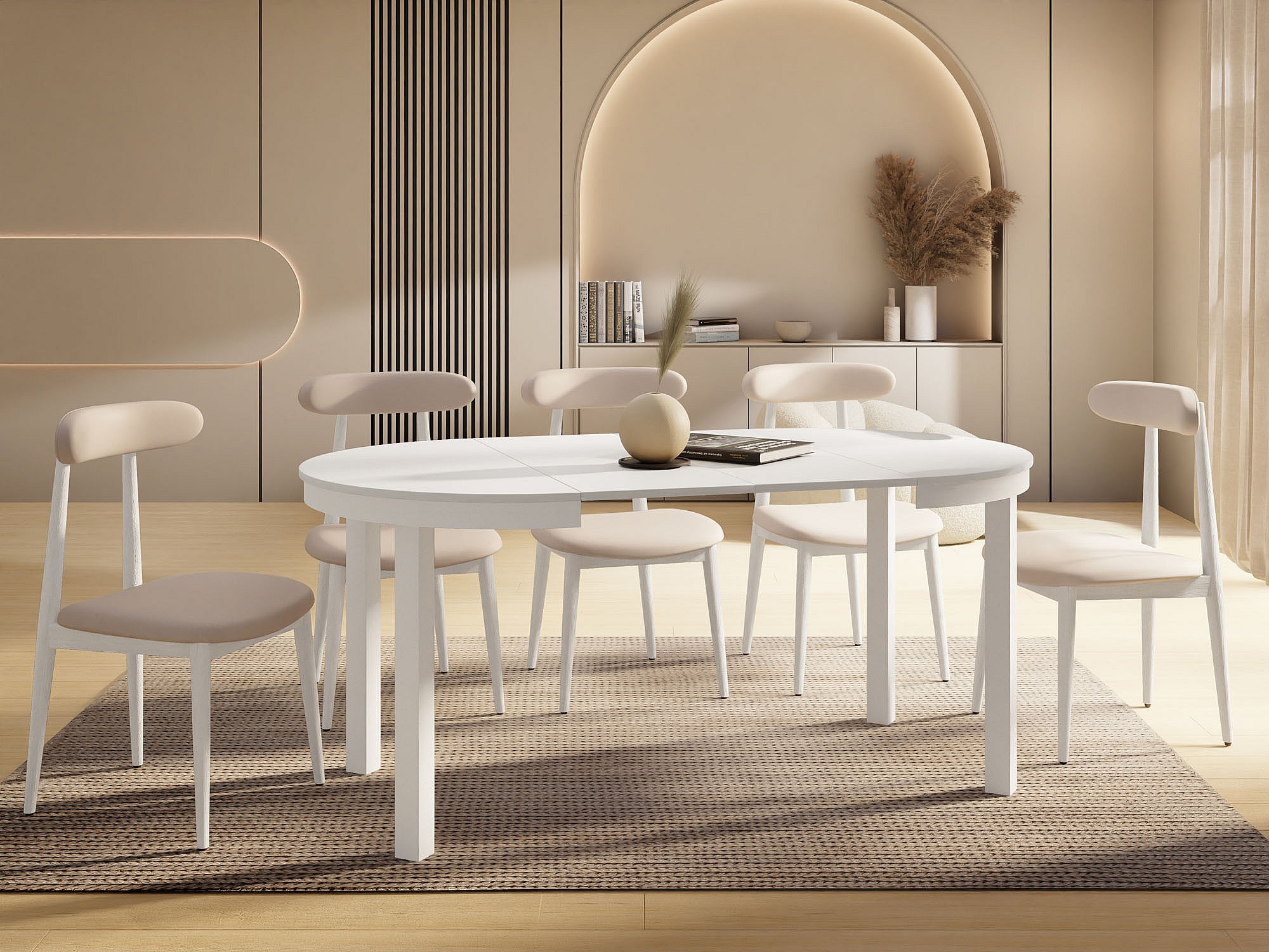 Runder Ausziehbarer Esstisch mit Weißem Metallgestell – Platzsparender Tisch im Loft-Stil für Wohnzimmer – Weiß mit Weißen Metallbeinen – 100 bis 180 cm