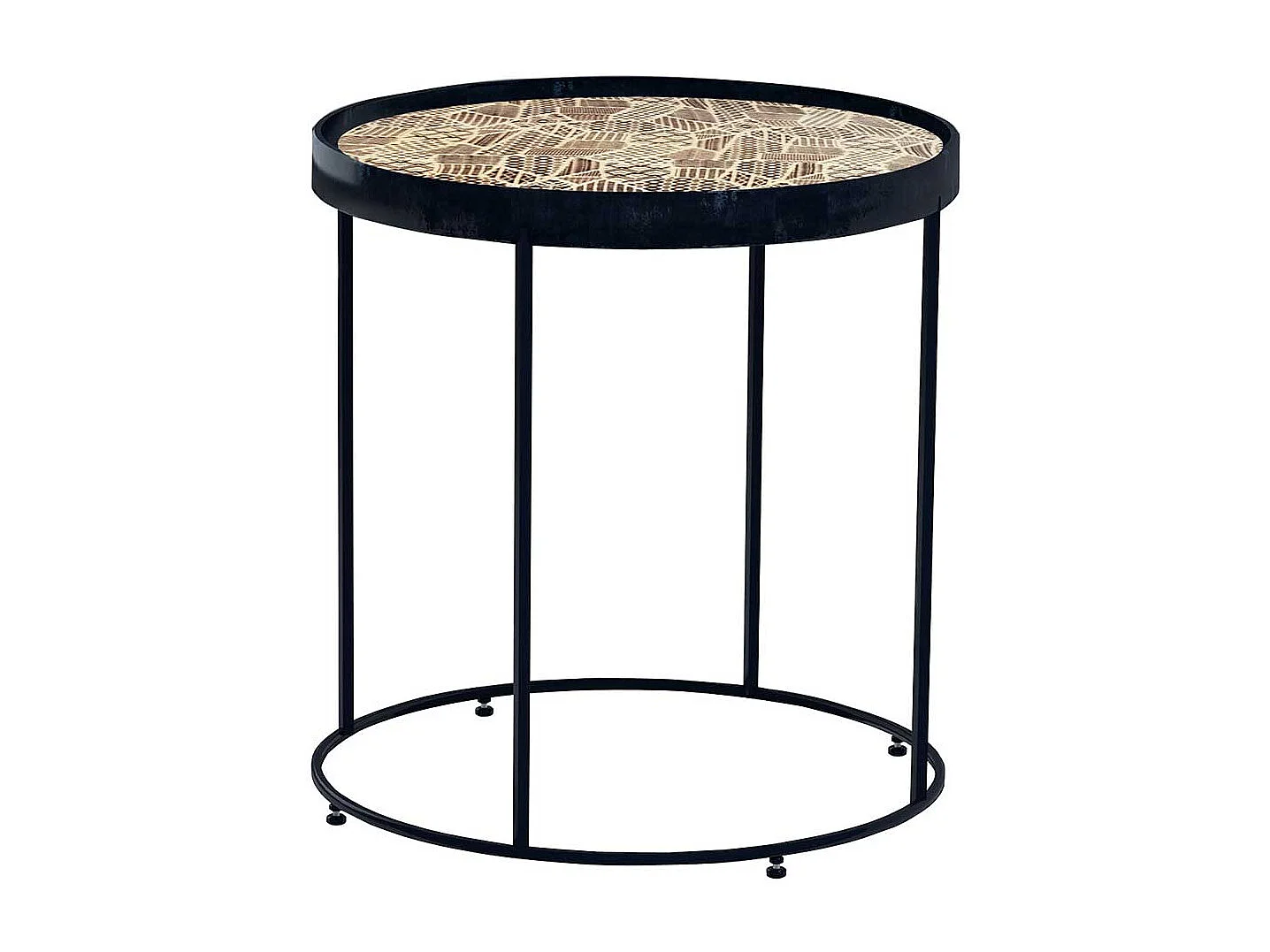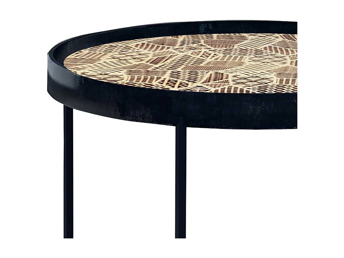 Runder Beistelltisch in Braun und Schwarz Metallgestell