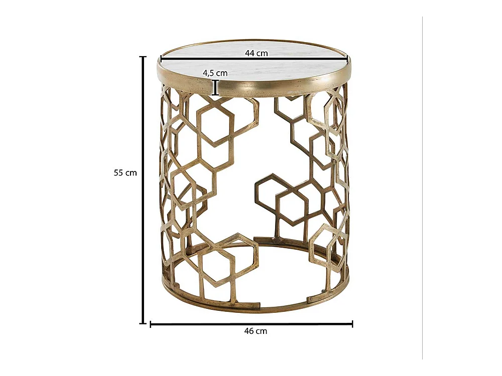 Runder Beistelltisch Sofa in Goldfarben Marmorplatte in Weiß