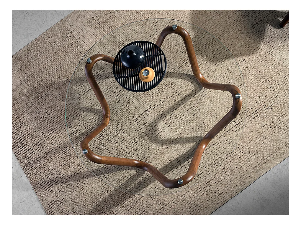 Runder Couchtisch aus gehärtetem Glas und Nussbaum 2124 ANGEL CERDA