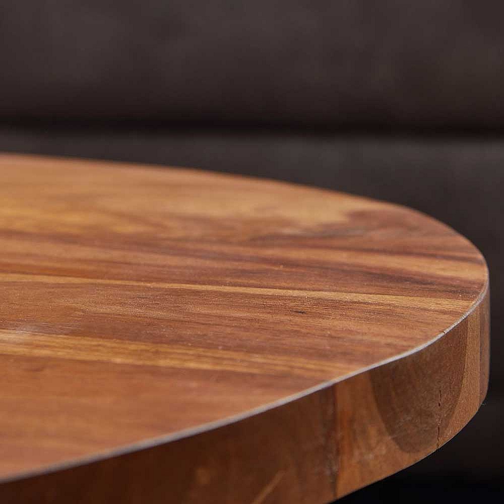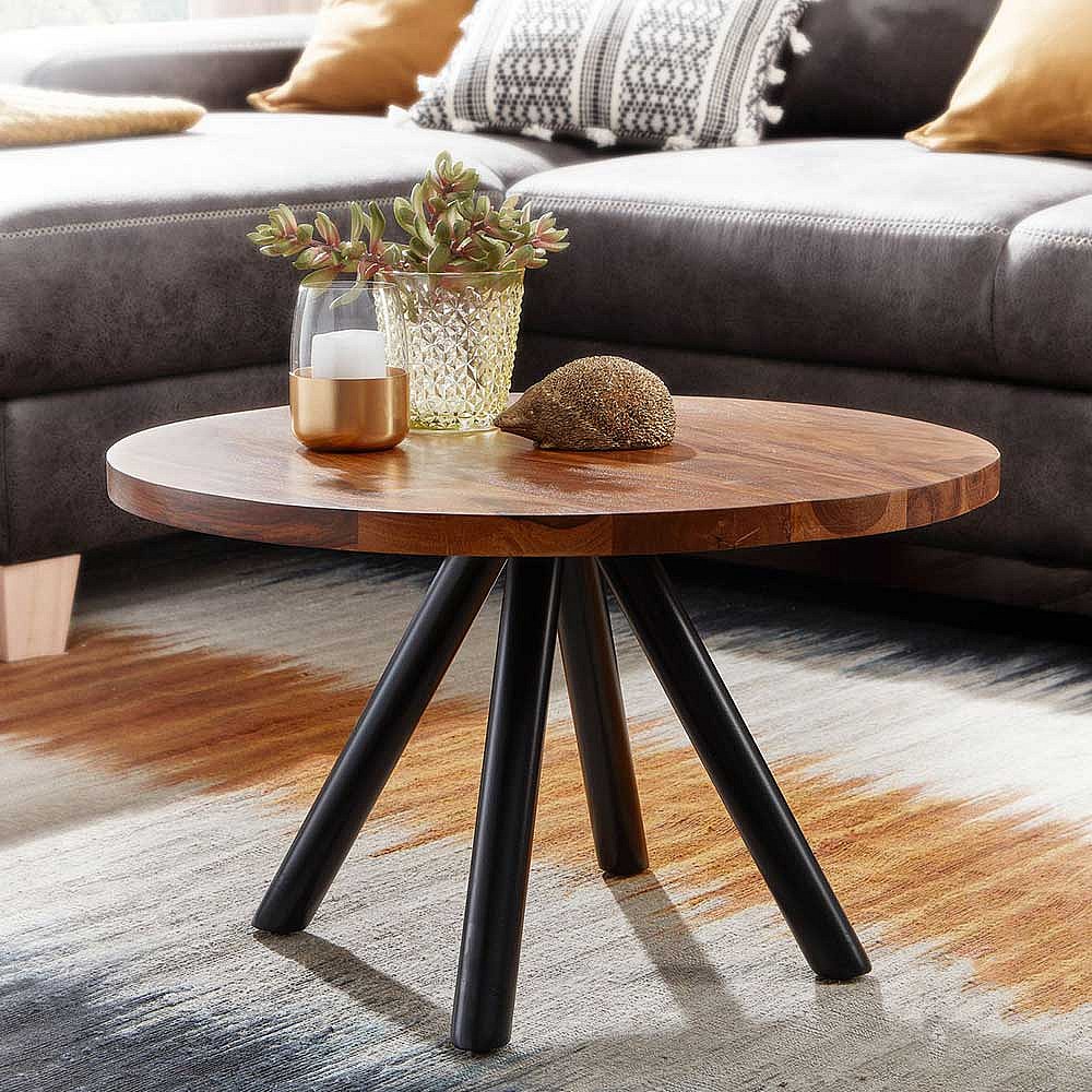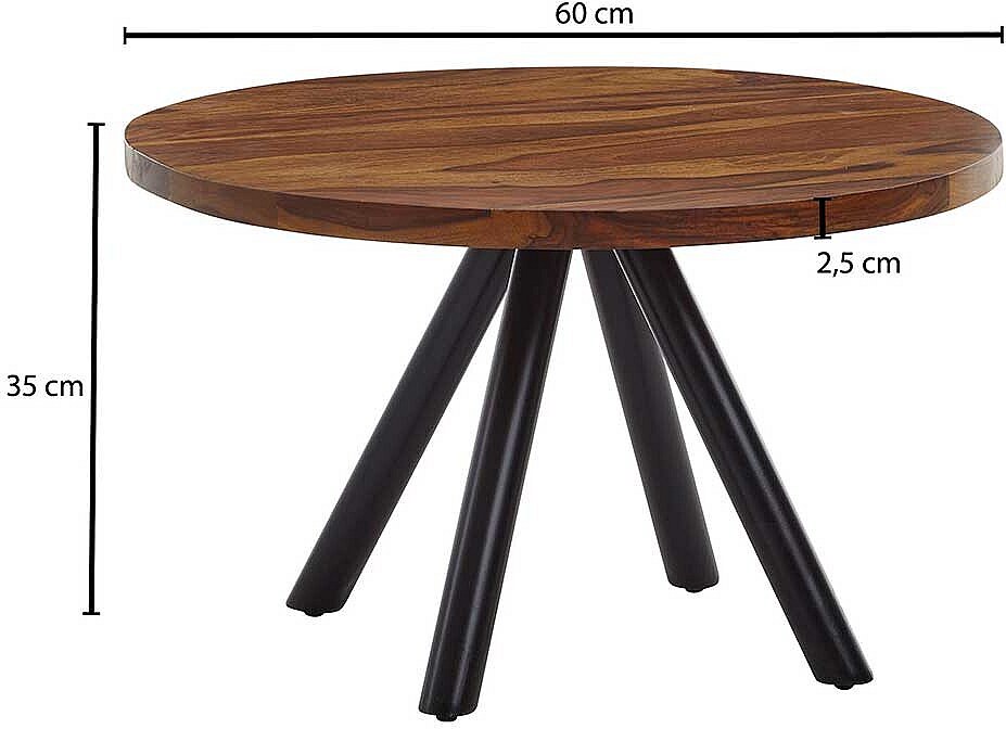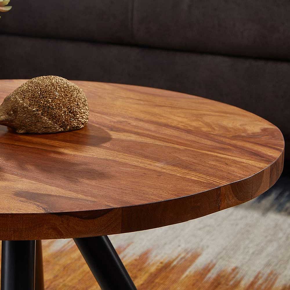 Runder Couchtisch aus Sheesham Massivholz und Stahl Industry und Loft Stil