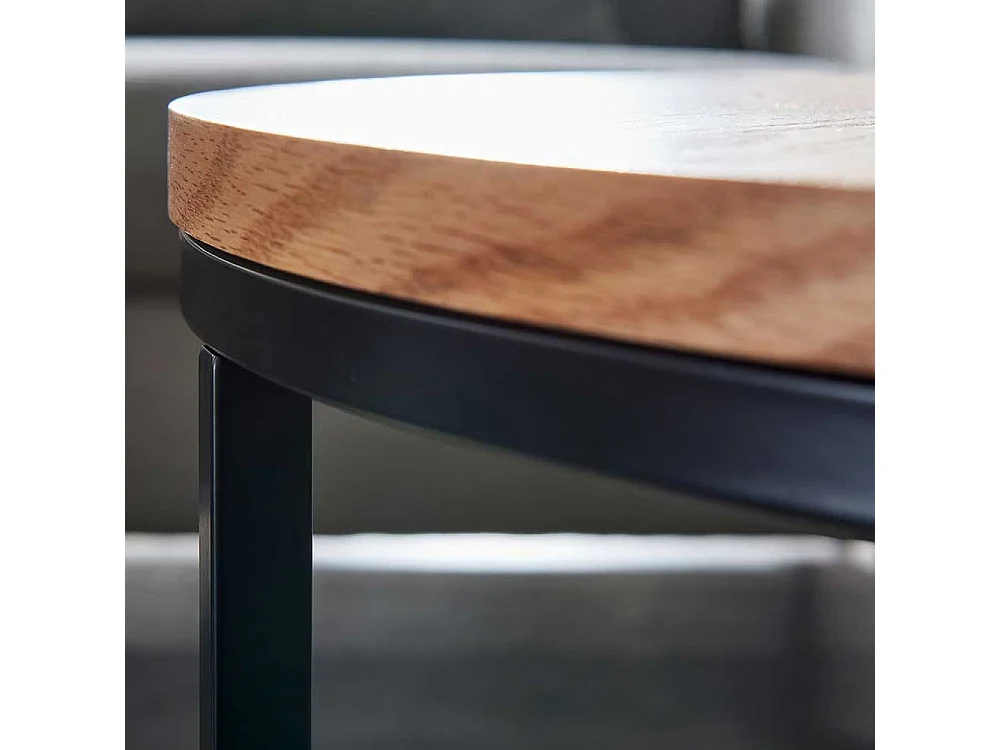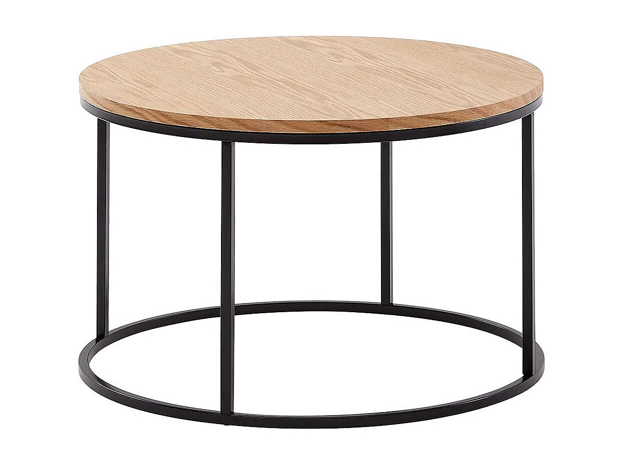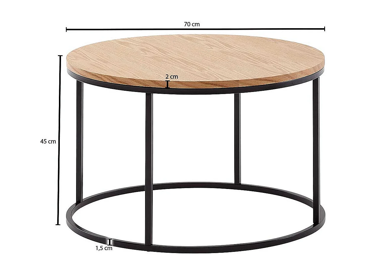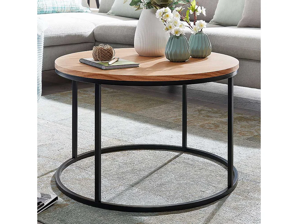 Runder Couchtisch in Eichefarben und Schwarz Ringgestell