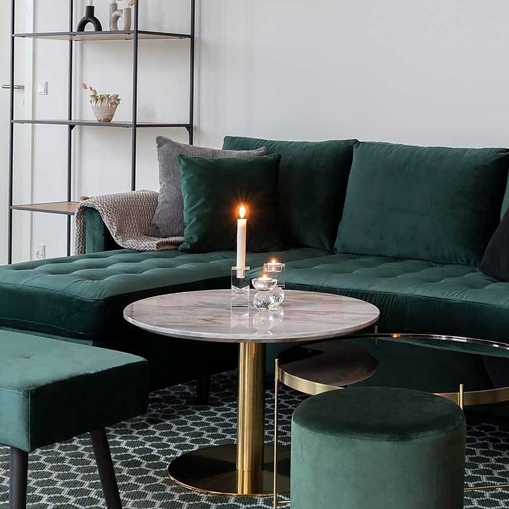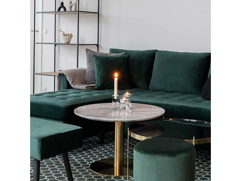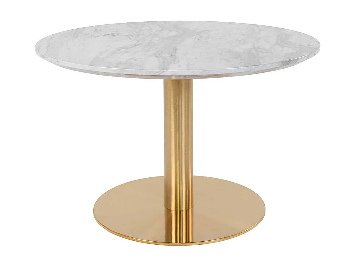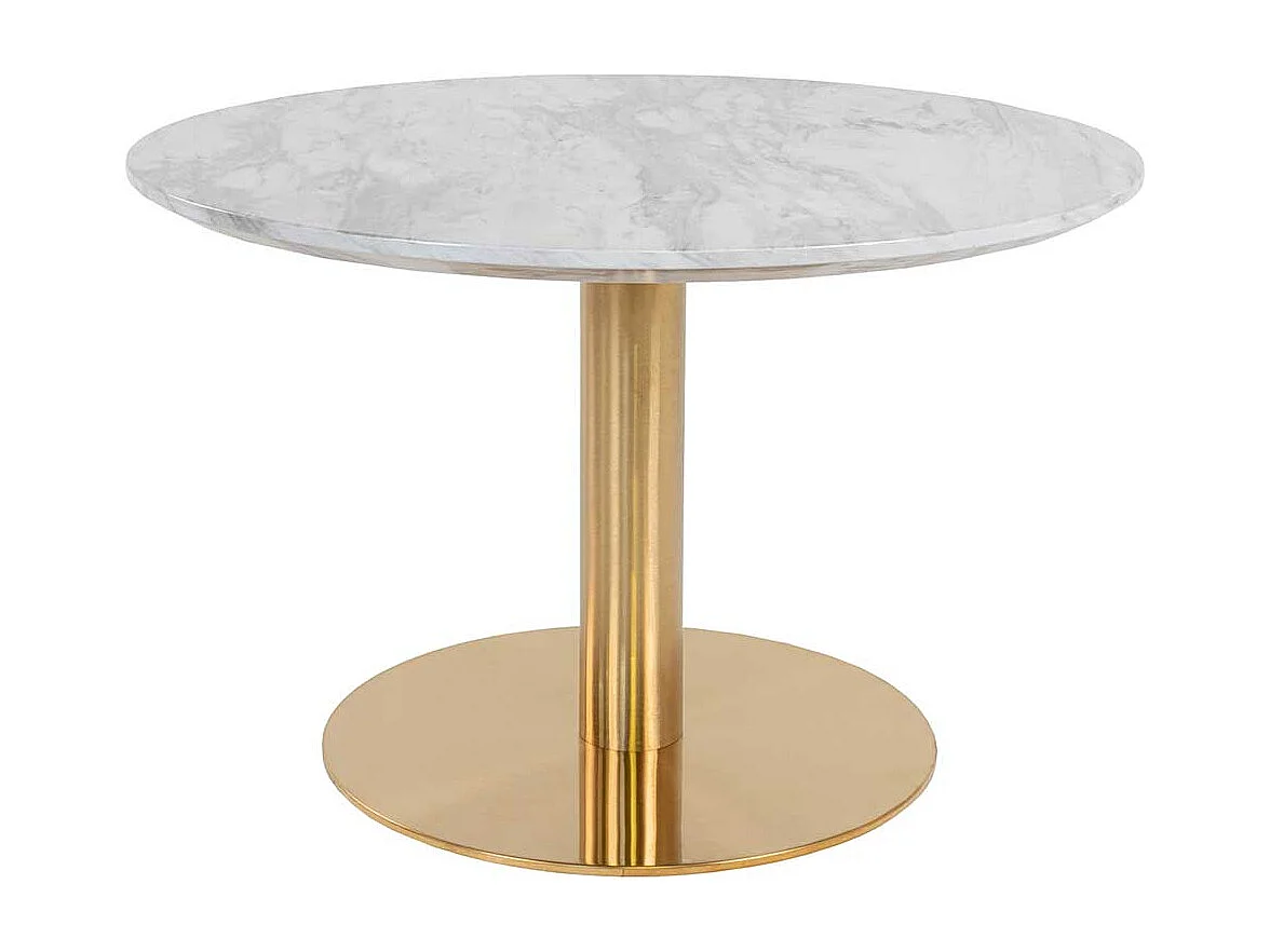 Runder Couchtisch in Messingfarben und Hellgrau marmoriert 45 cm hoch