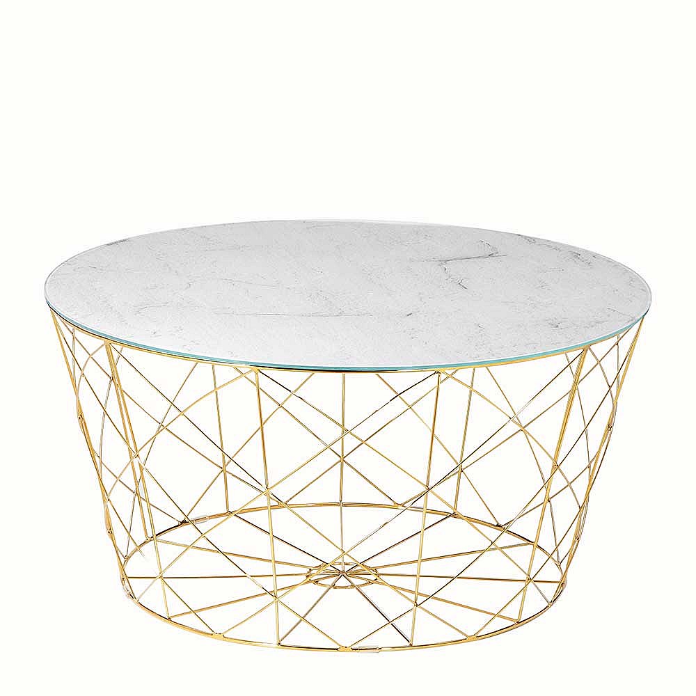 Runder Couchtisch in Weiß und Goldfarben Skandi Design