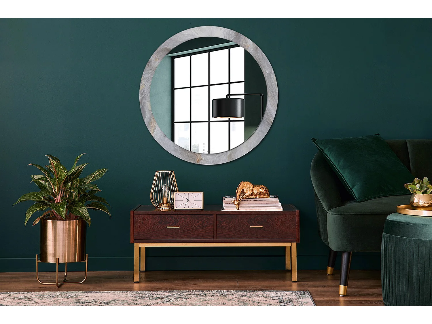 Runder dekorativer Spiegel - Abstrakter Marmor - 90 cm
