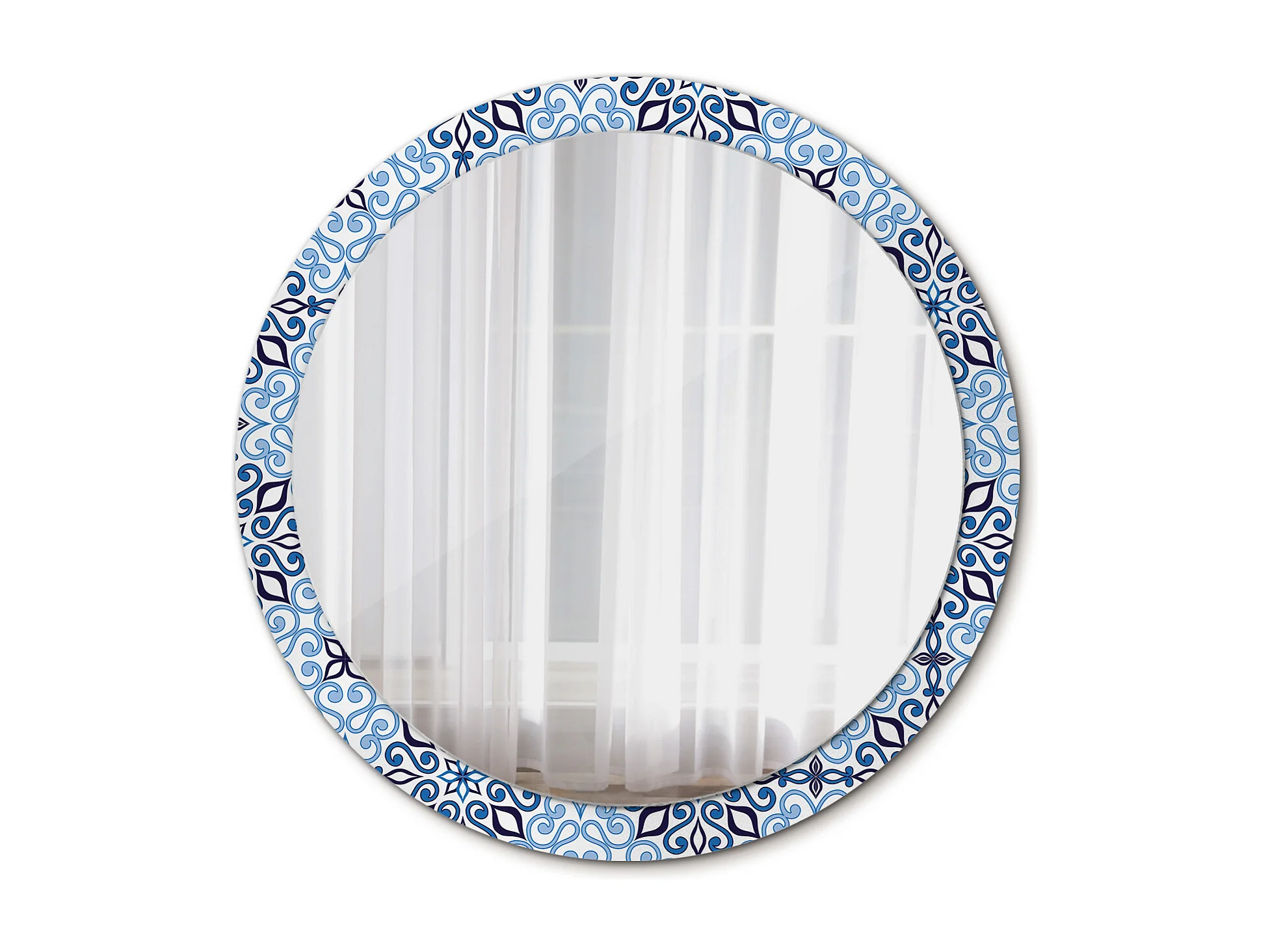 Runder dekorativer Spiegel - Blaues arabisches Motiv - 100 cm