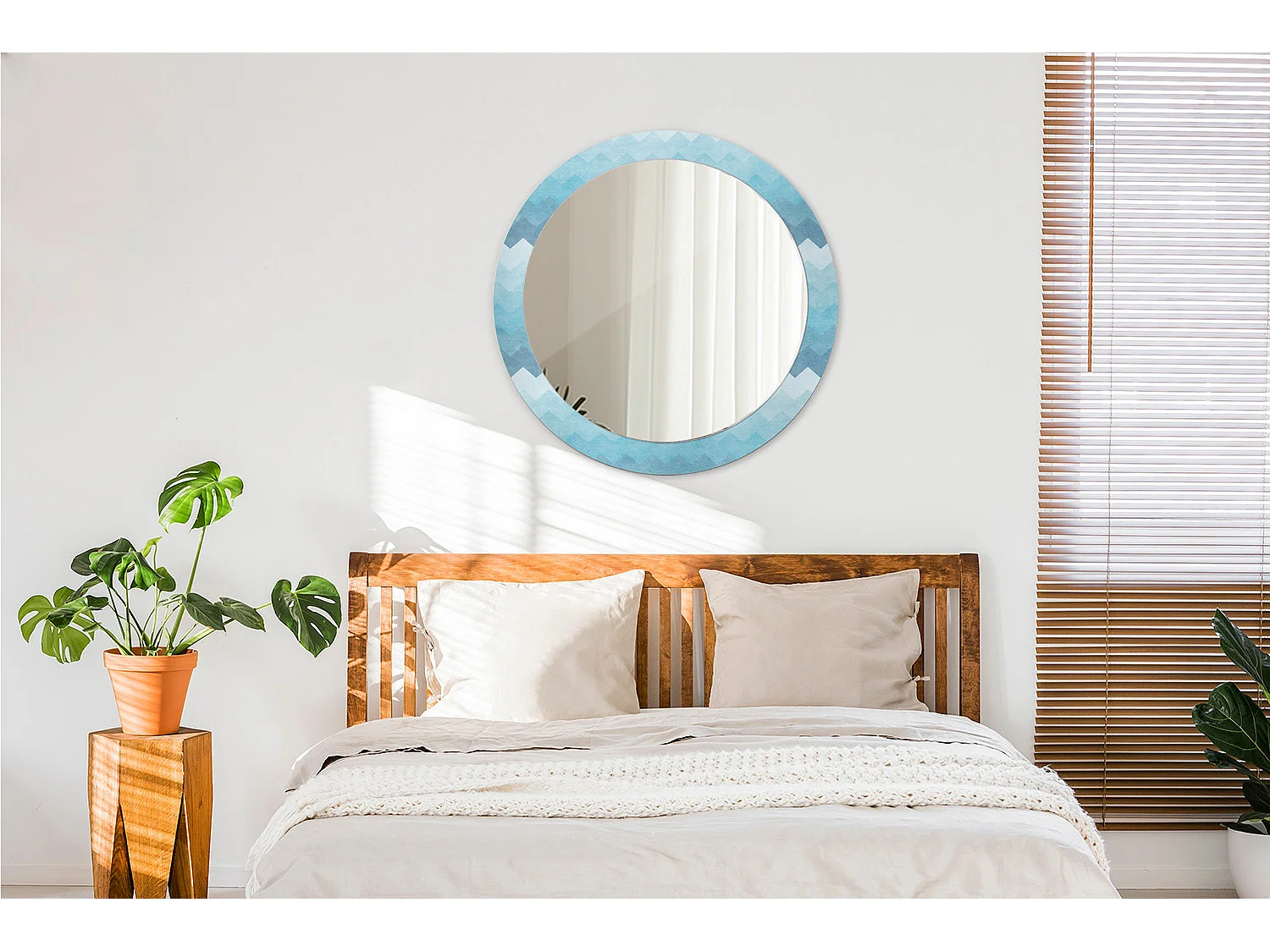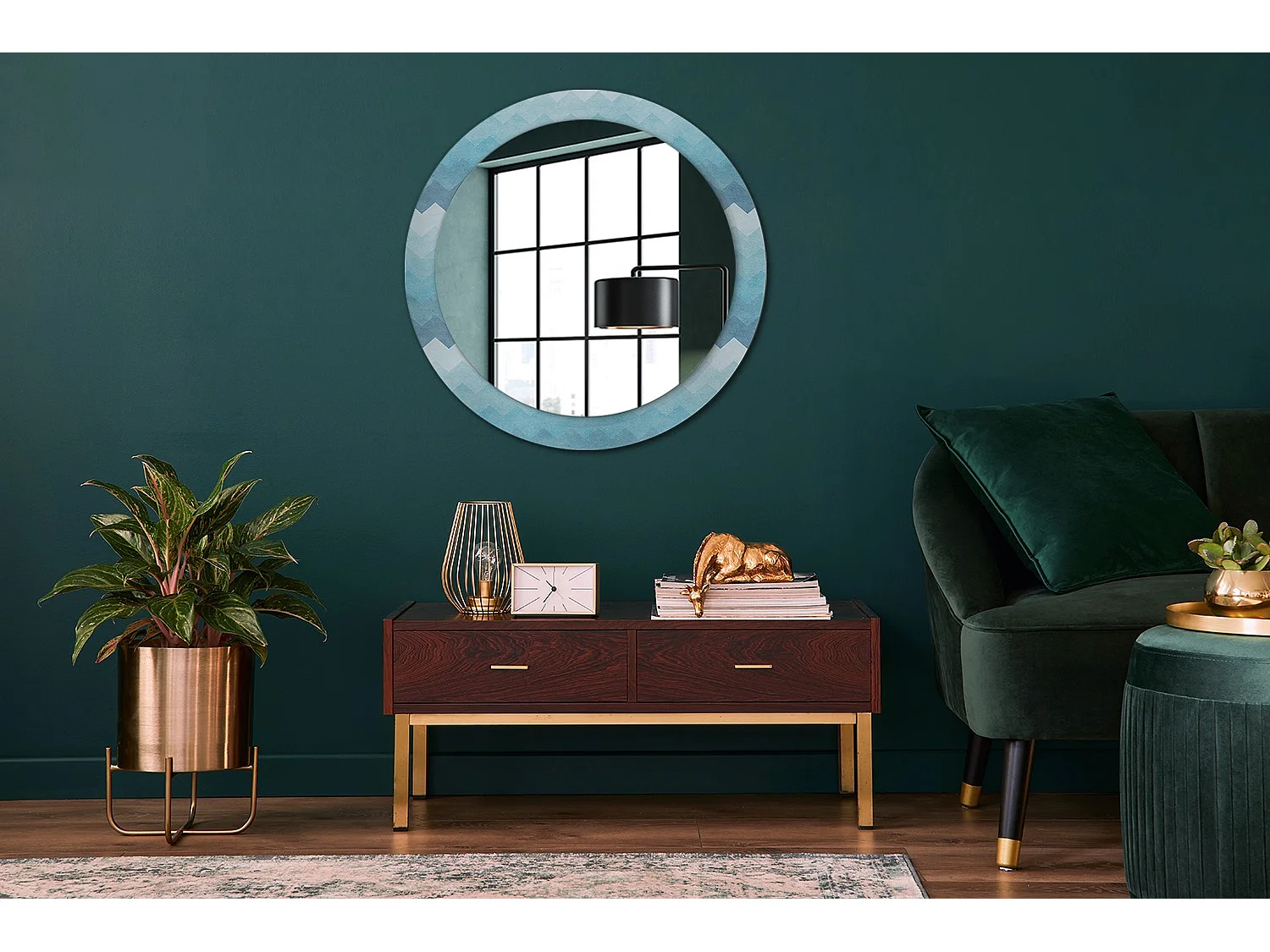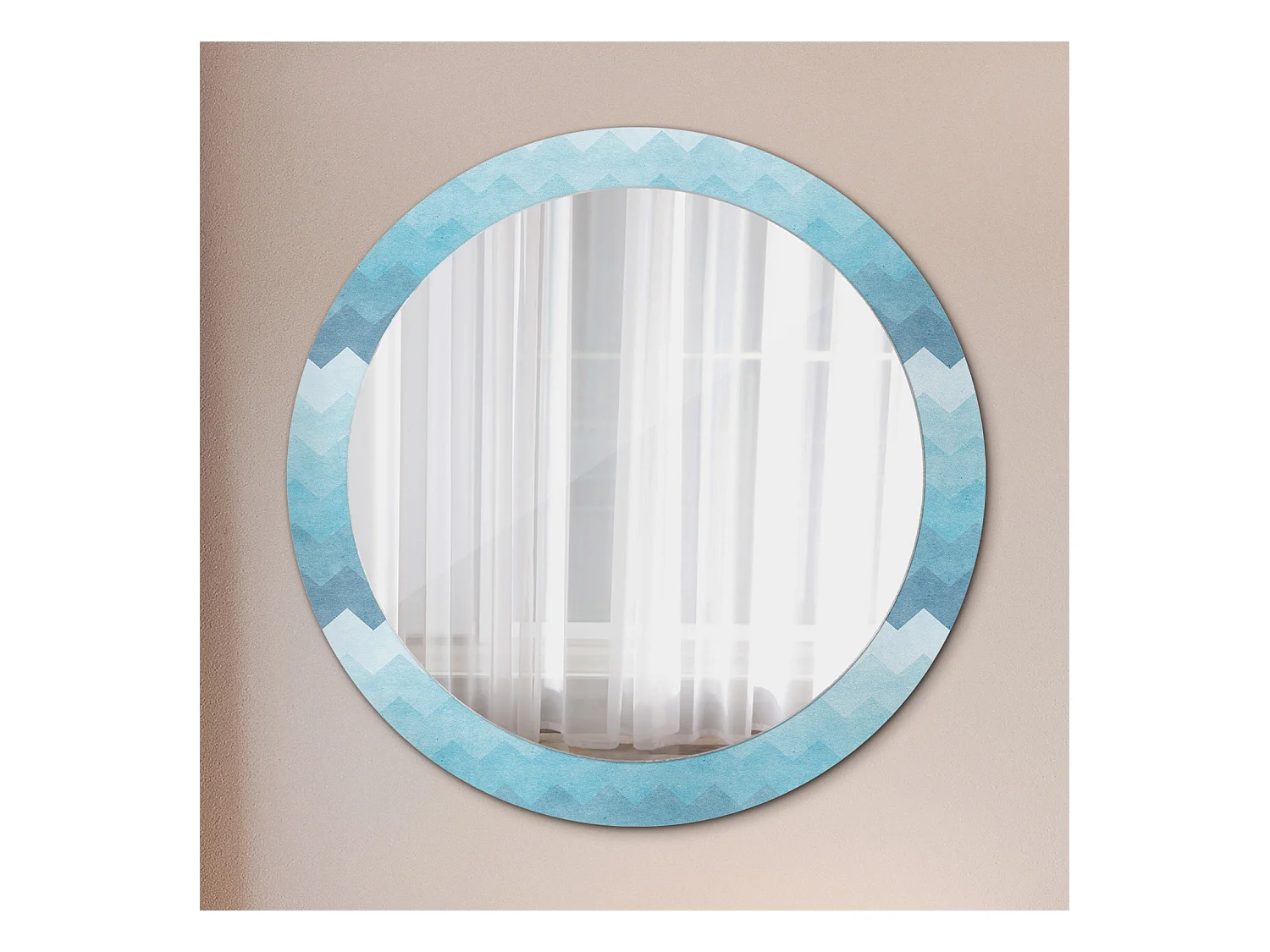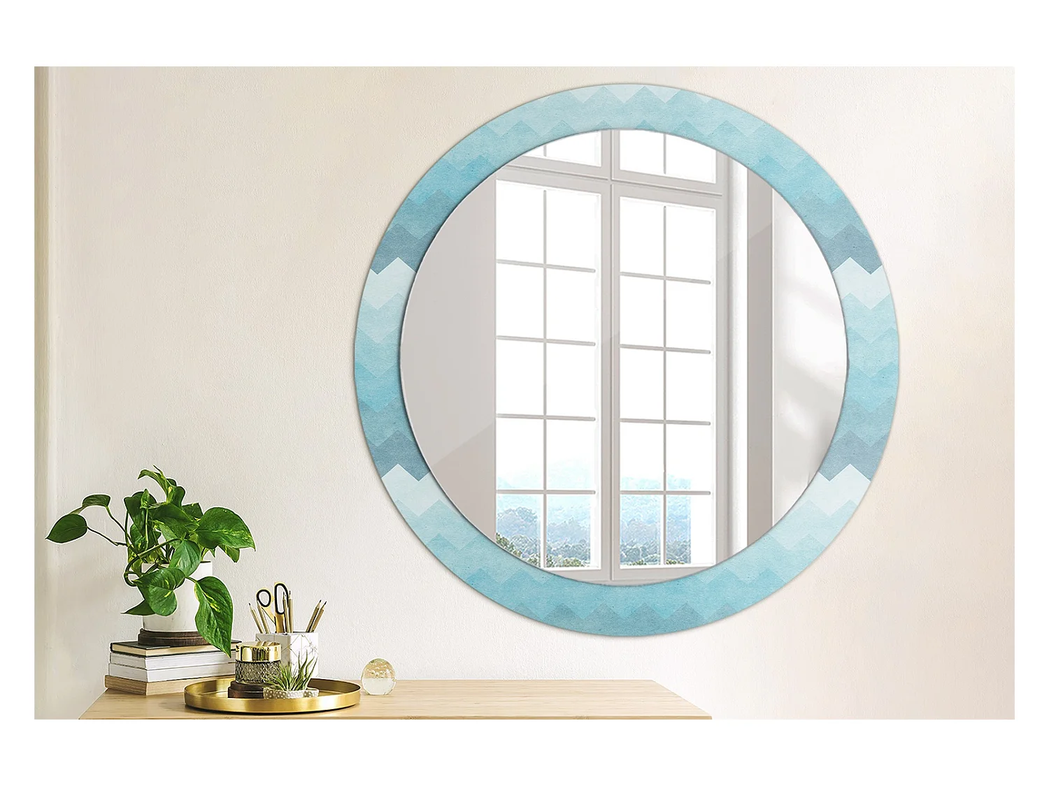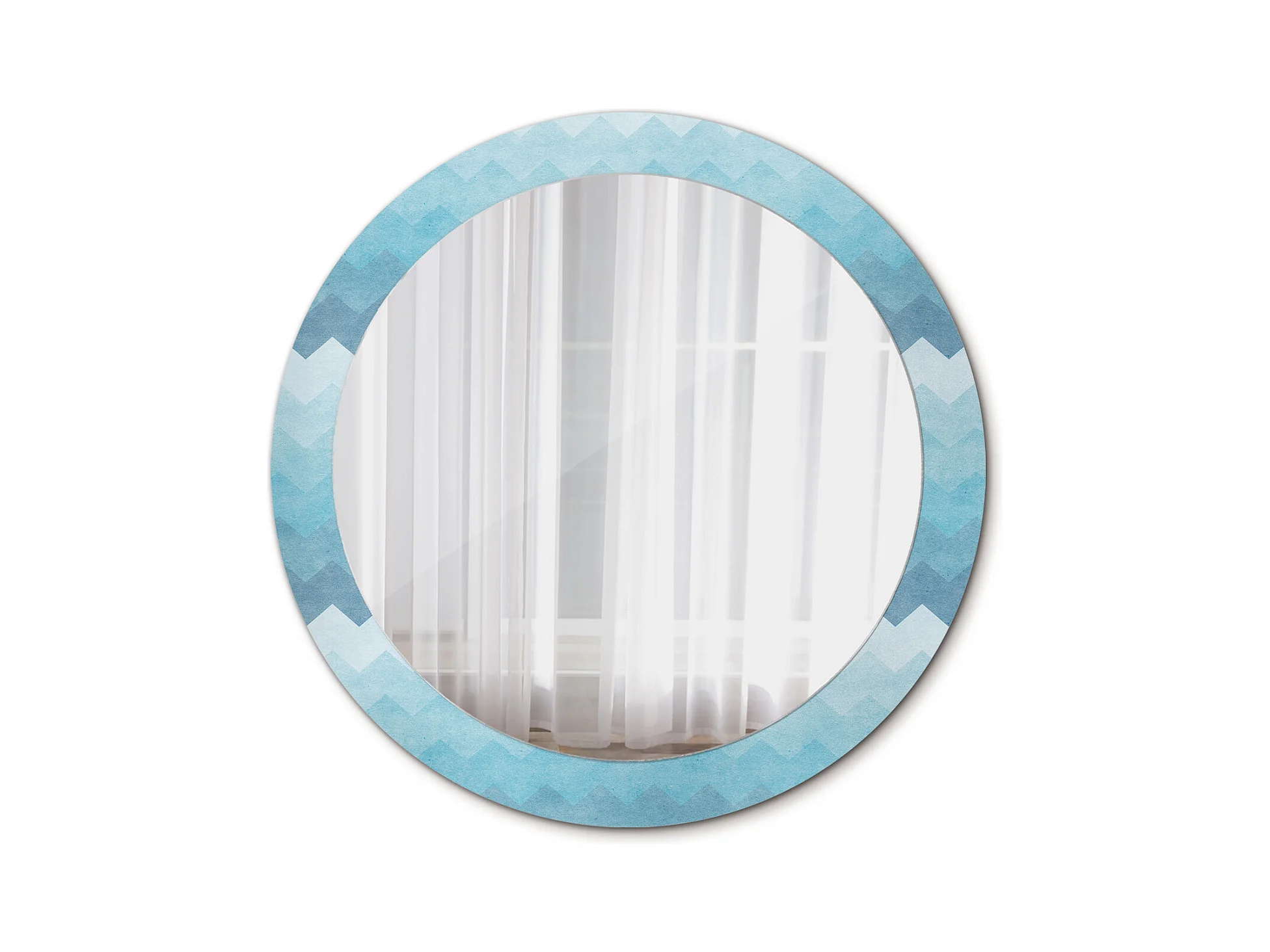 Runder dekorativer Spiegel – Blue Chevron – 80 cm