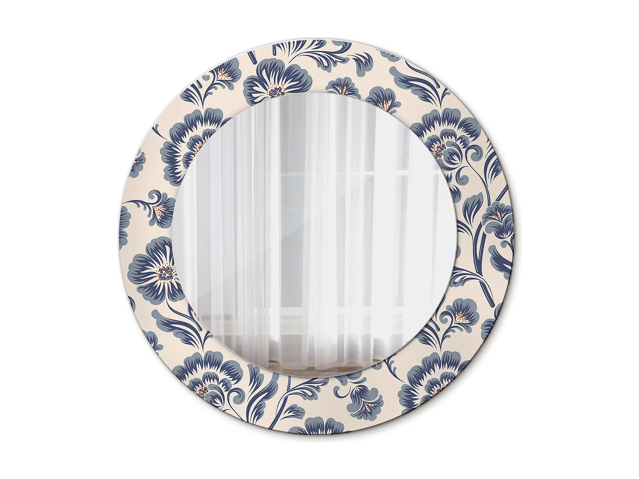 Runder dekorativer Spiegel - Blumendruck - 50 cm