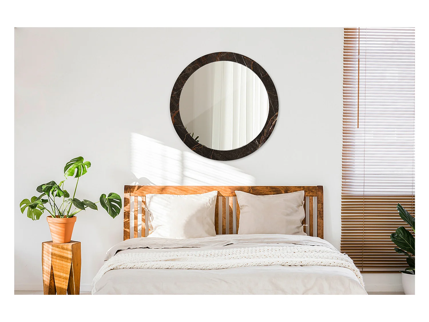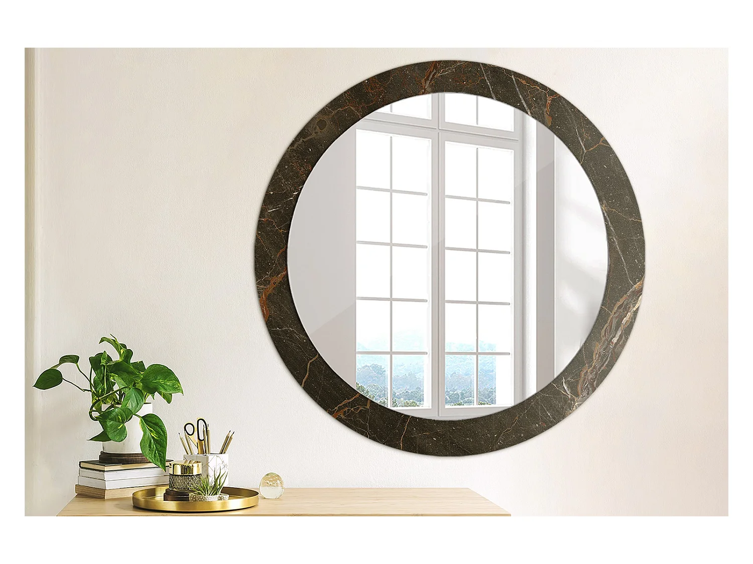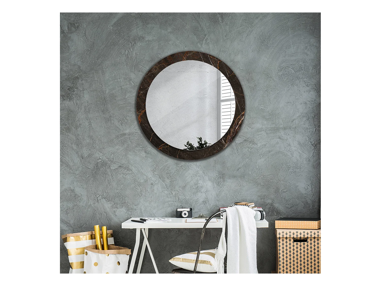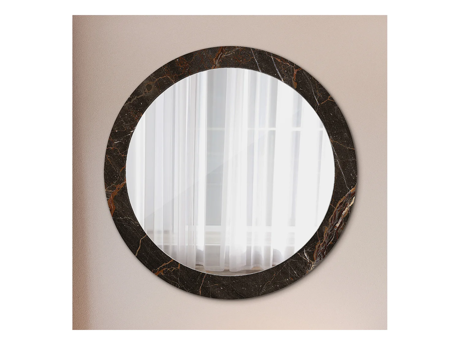 Runder dekorativer Spiegel - Brauner Marmor - 80 cm