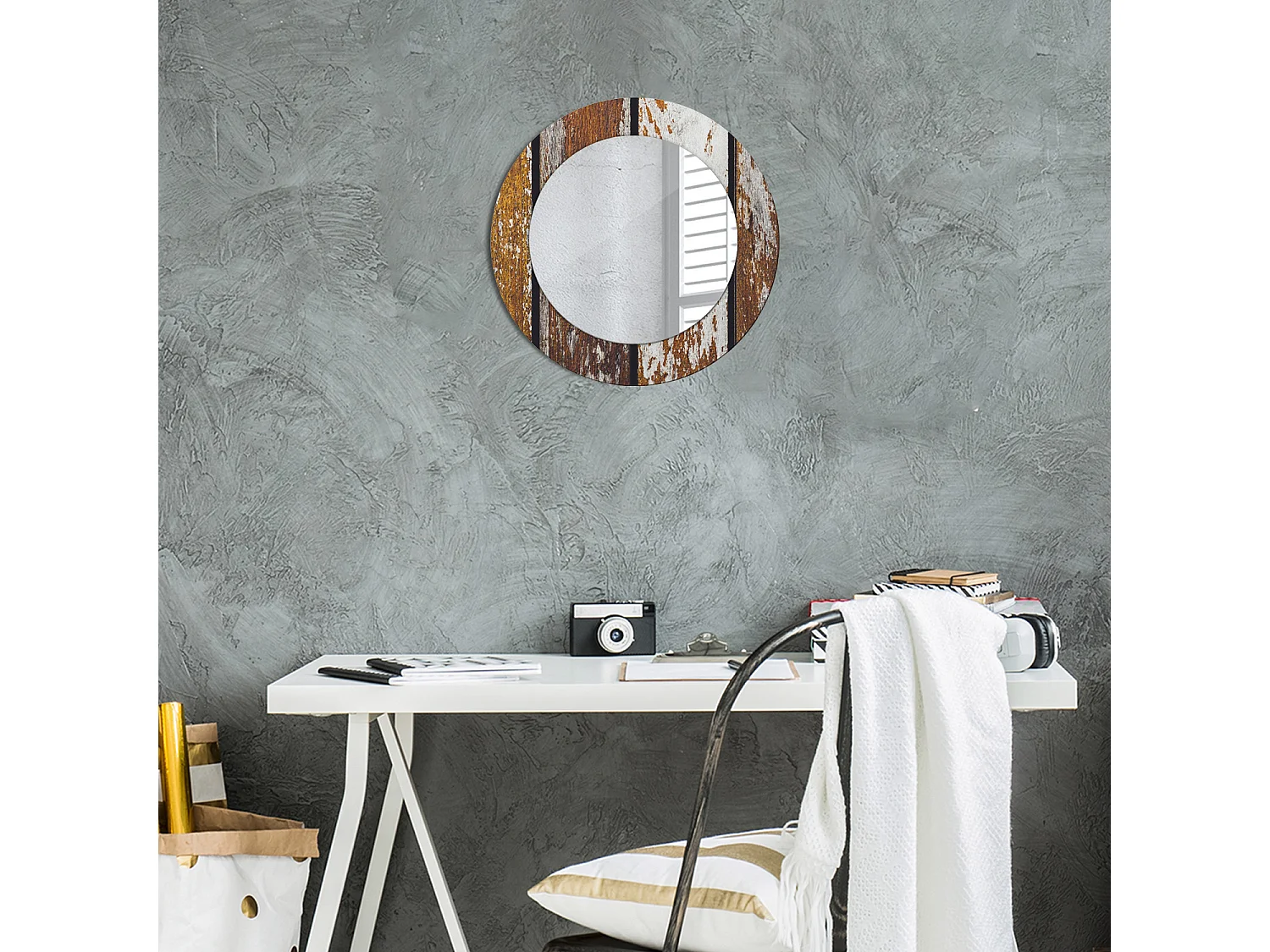 Runder dekorativer Spiegel - Dunkles Vintage-Holz - 50 cm