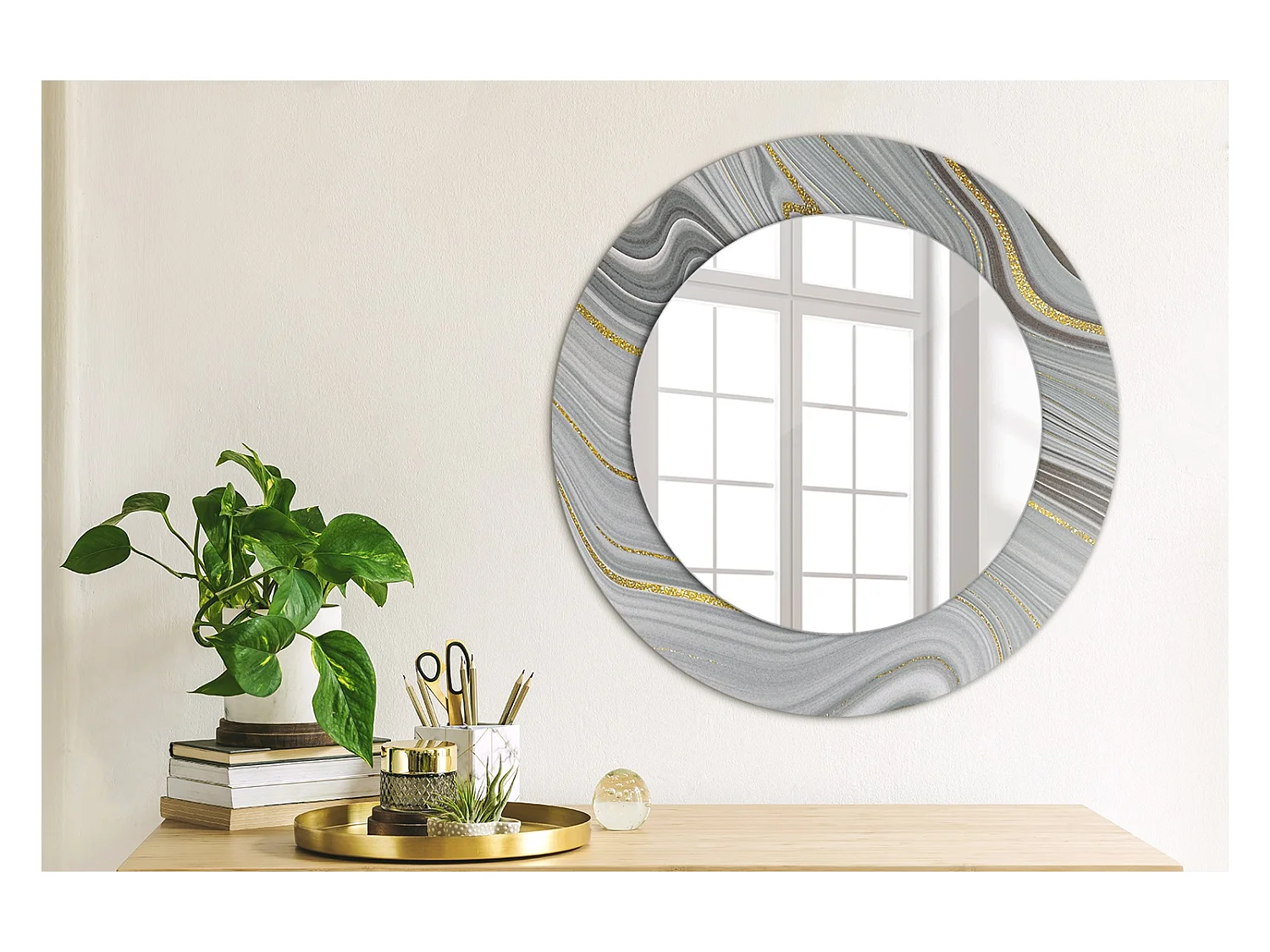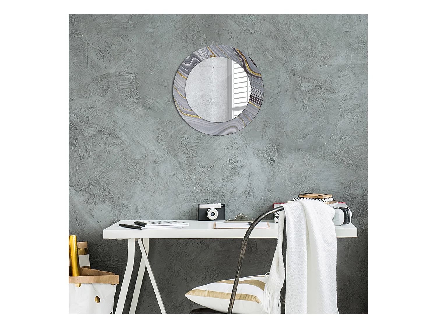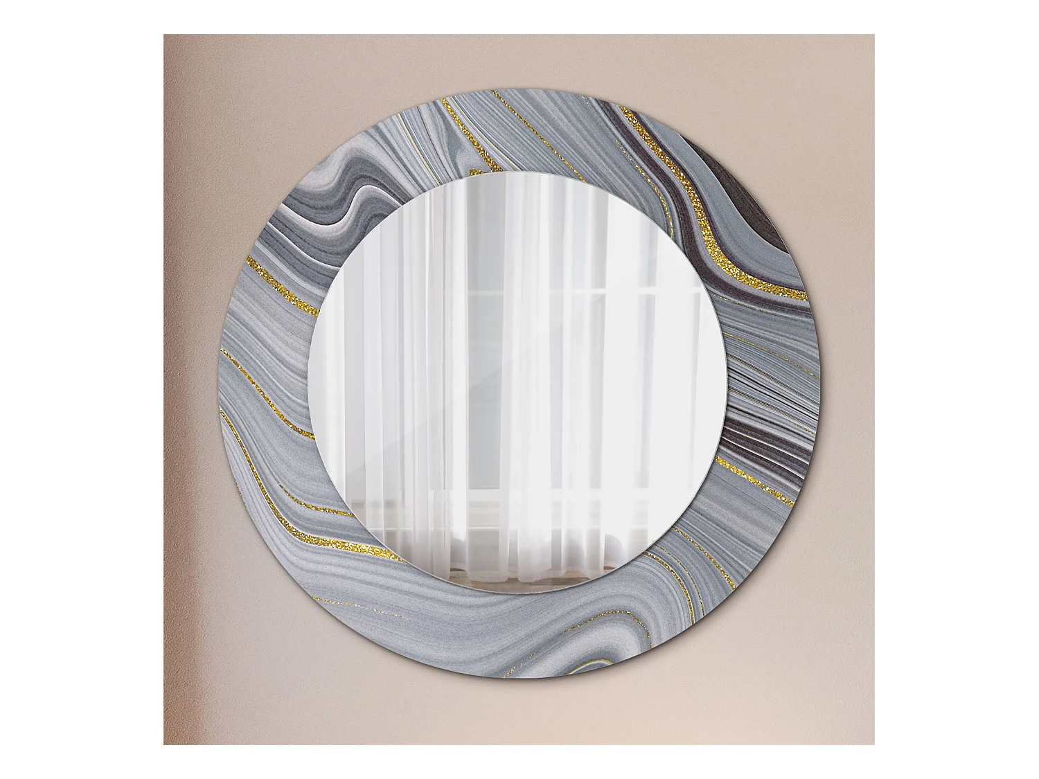 Runder dekorativer Spiegel - Grauer Marmor - 50 cm