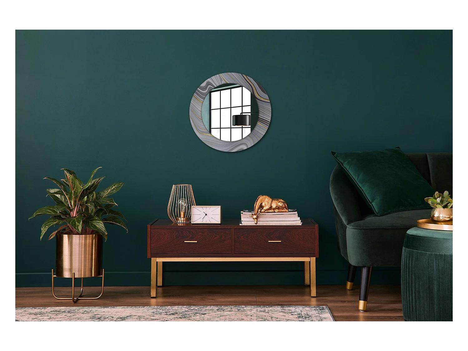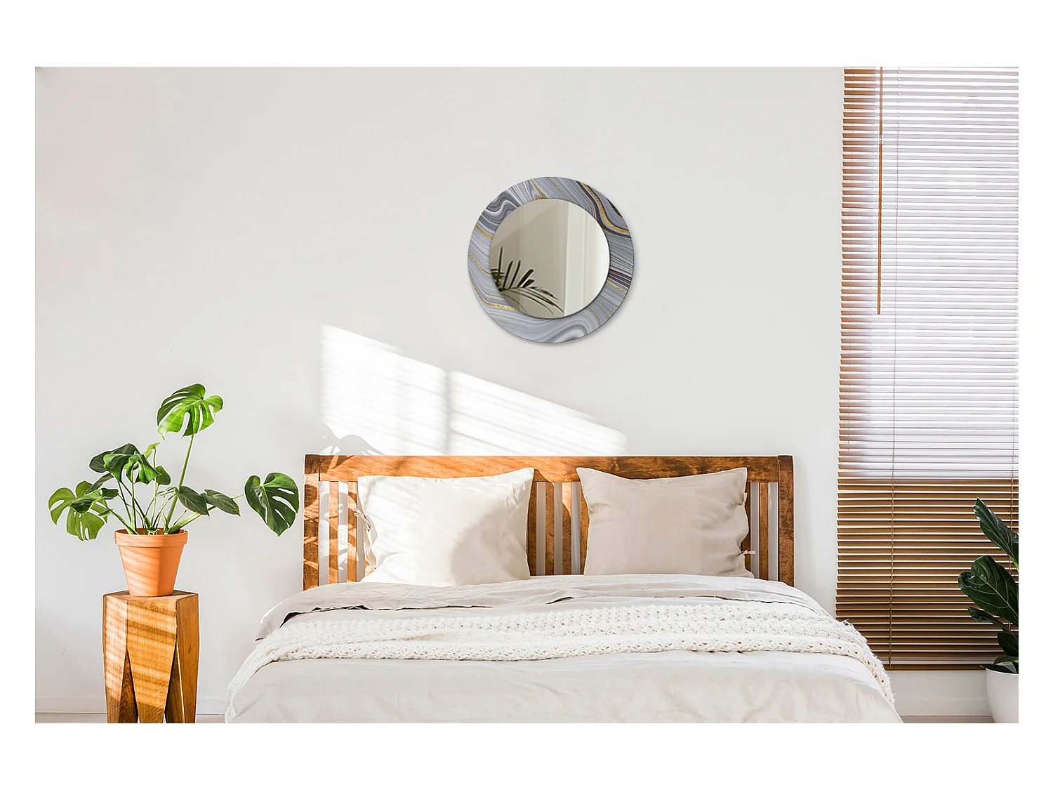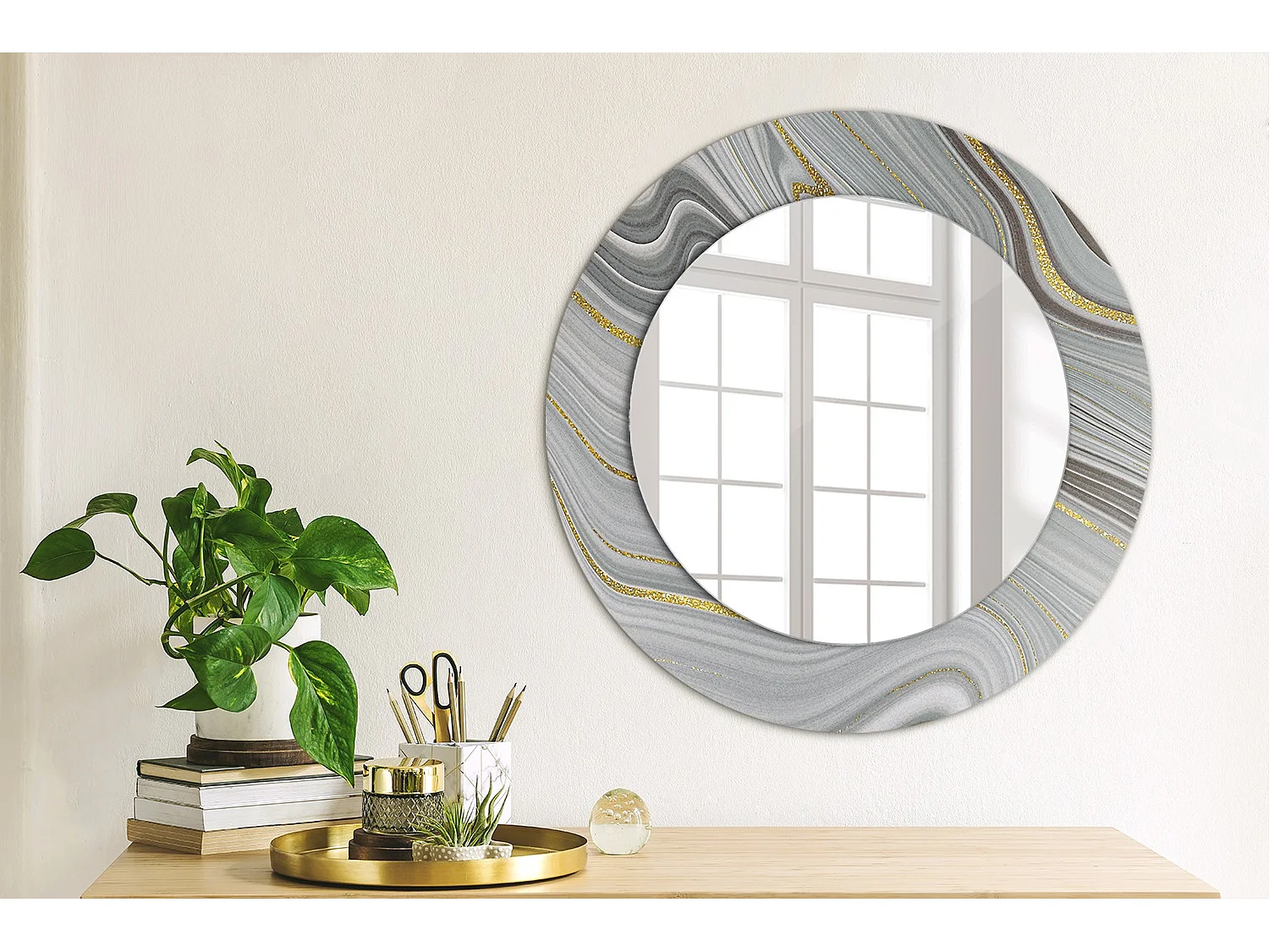 Runder dekorativer Spiegel - Grauer Marmor - 50 cm