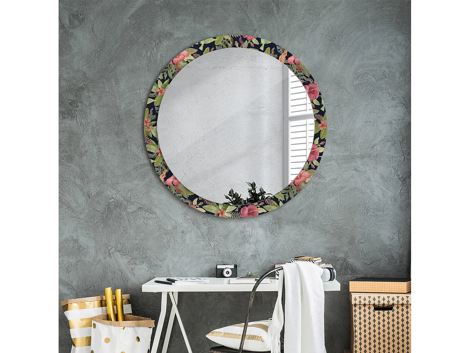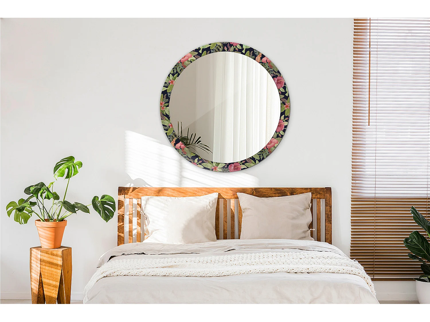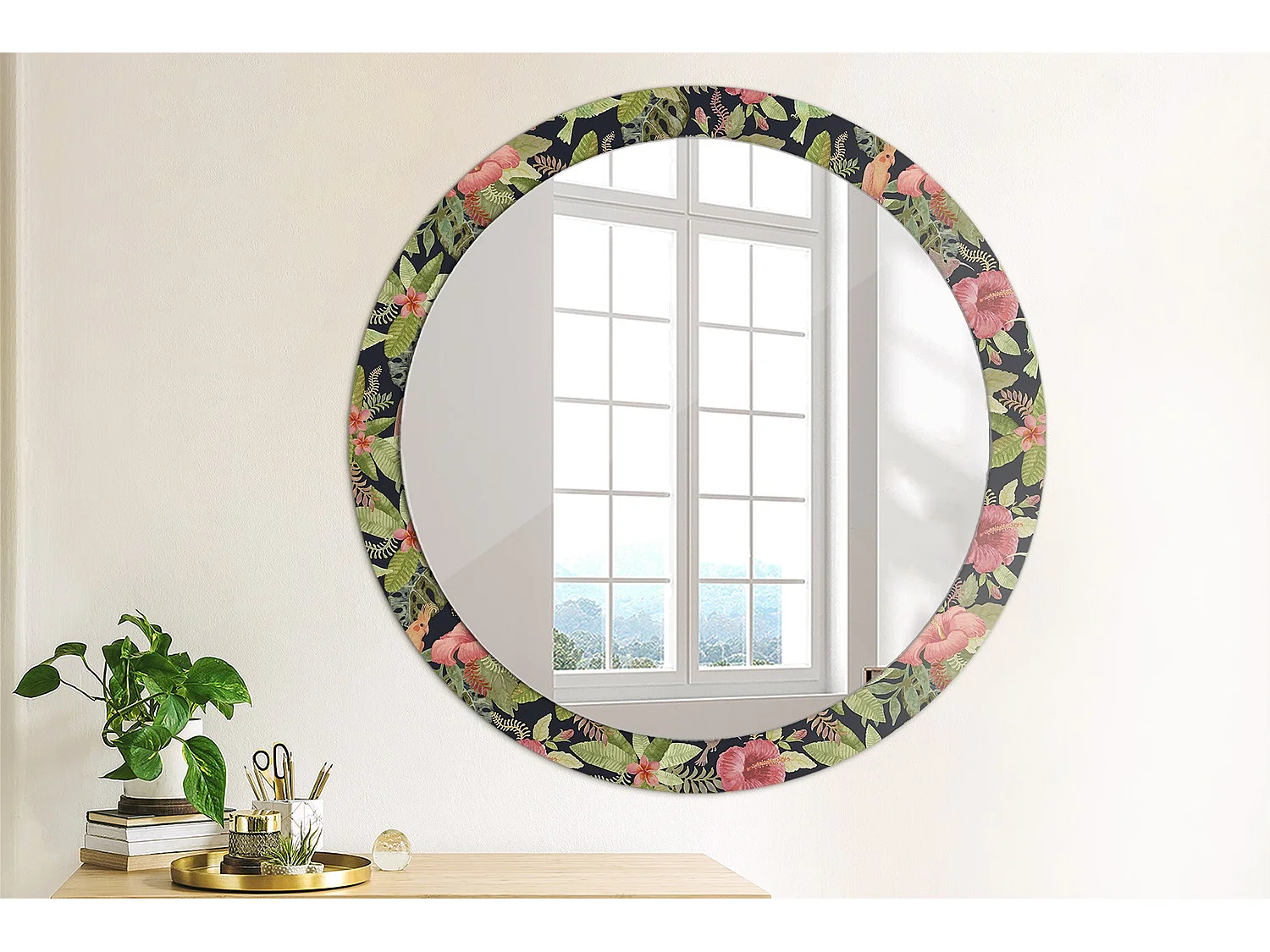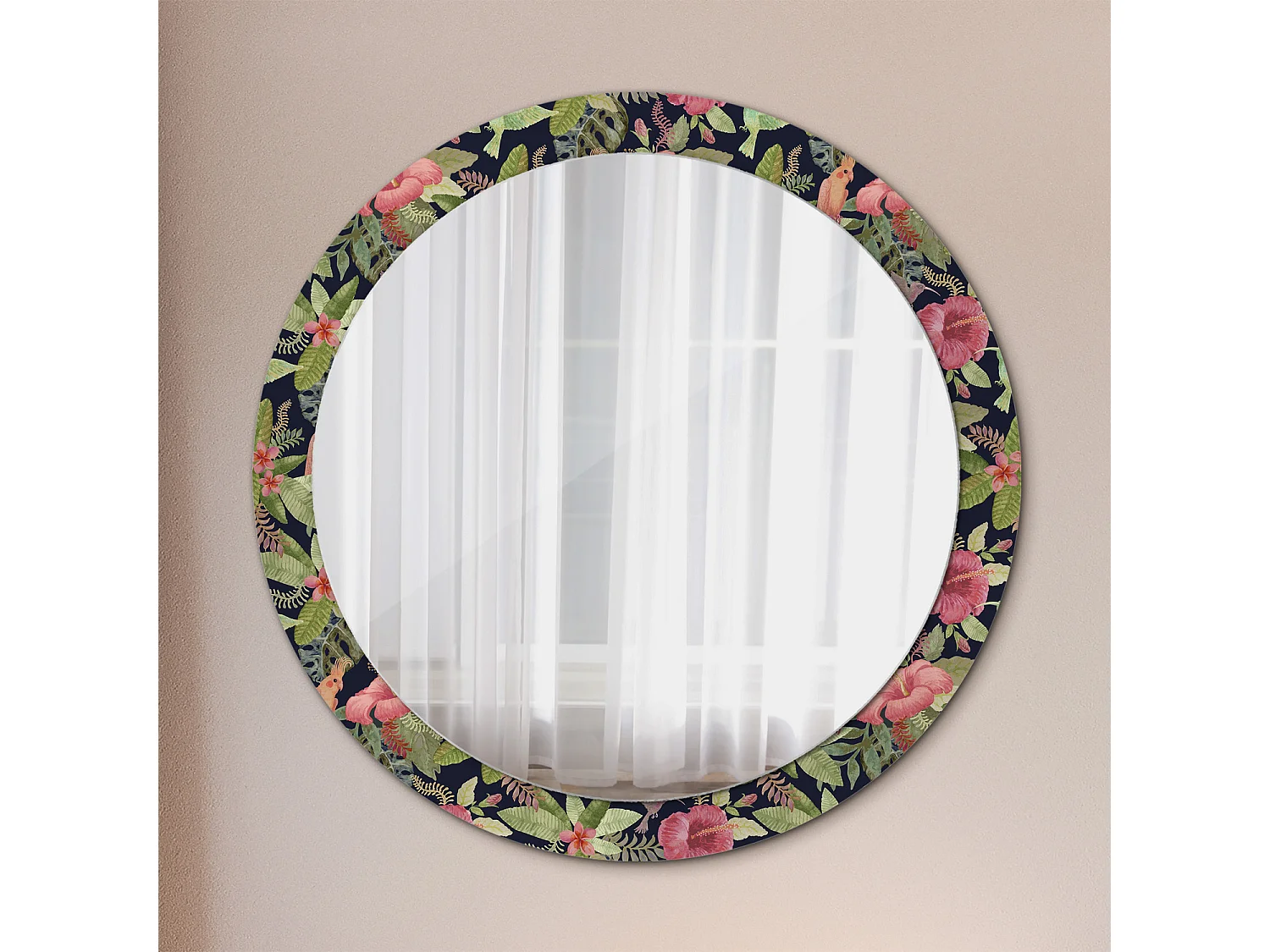 Runder dekorativer Spiegel - Hibiskusblüten - 90 cm