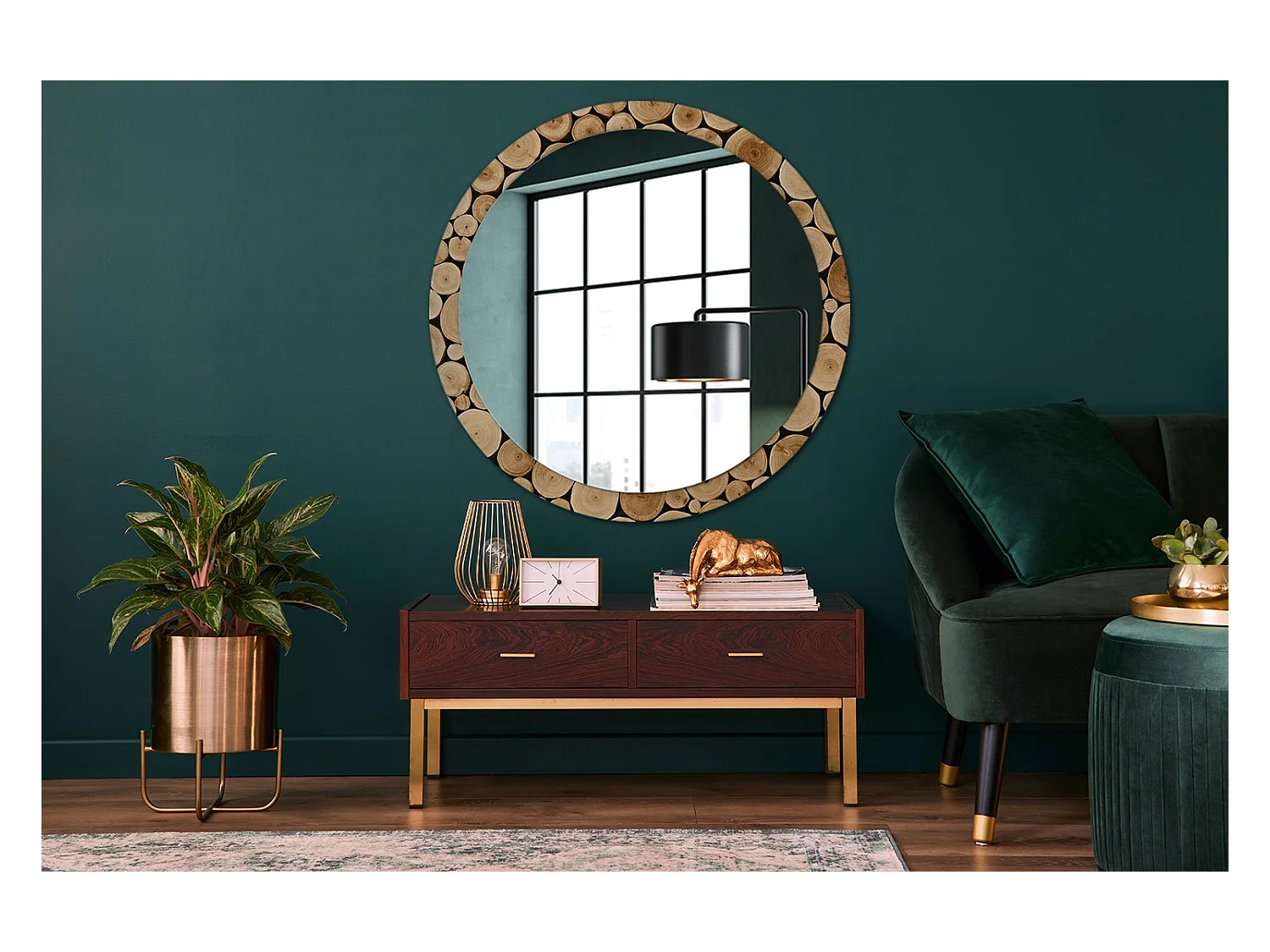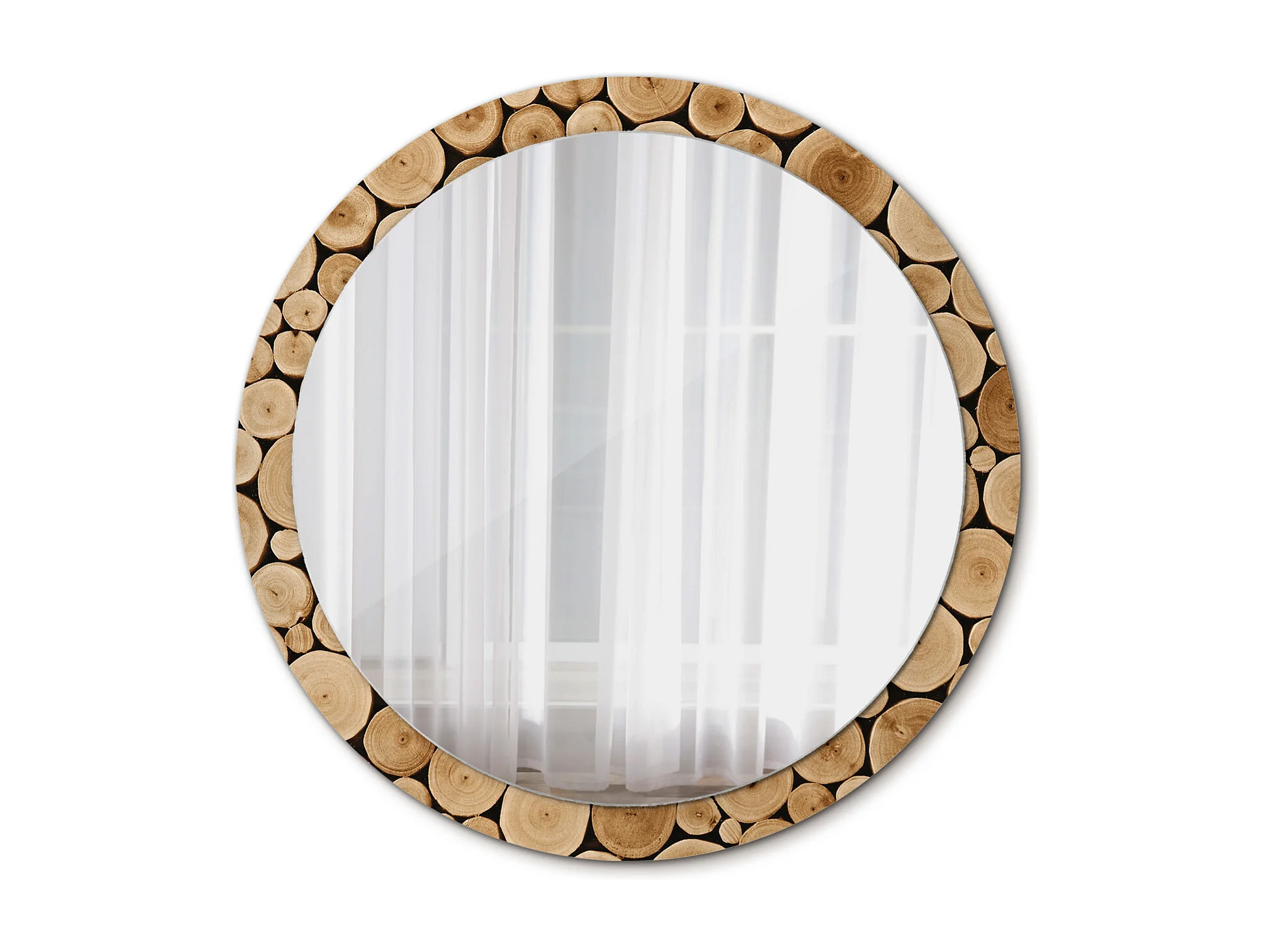 Runder dekorativer Spiegel - Holzscheite - 100 cm