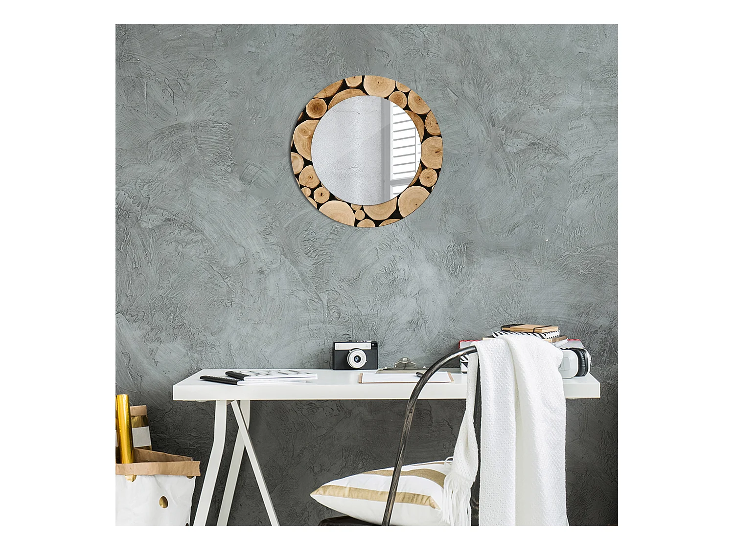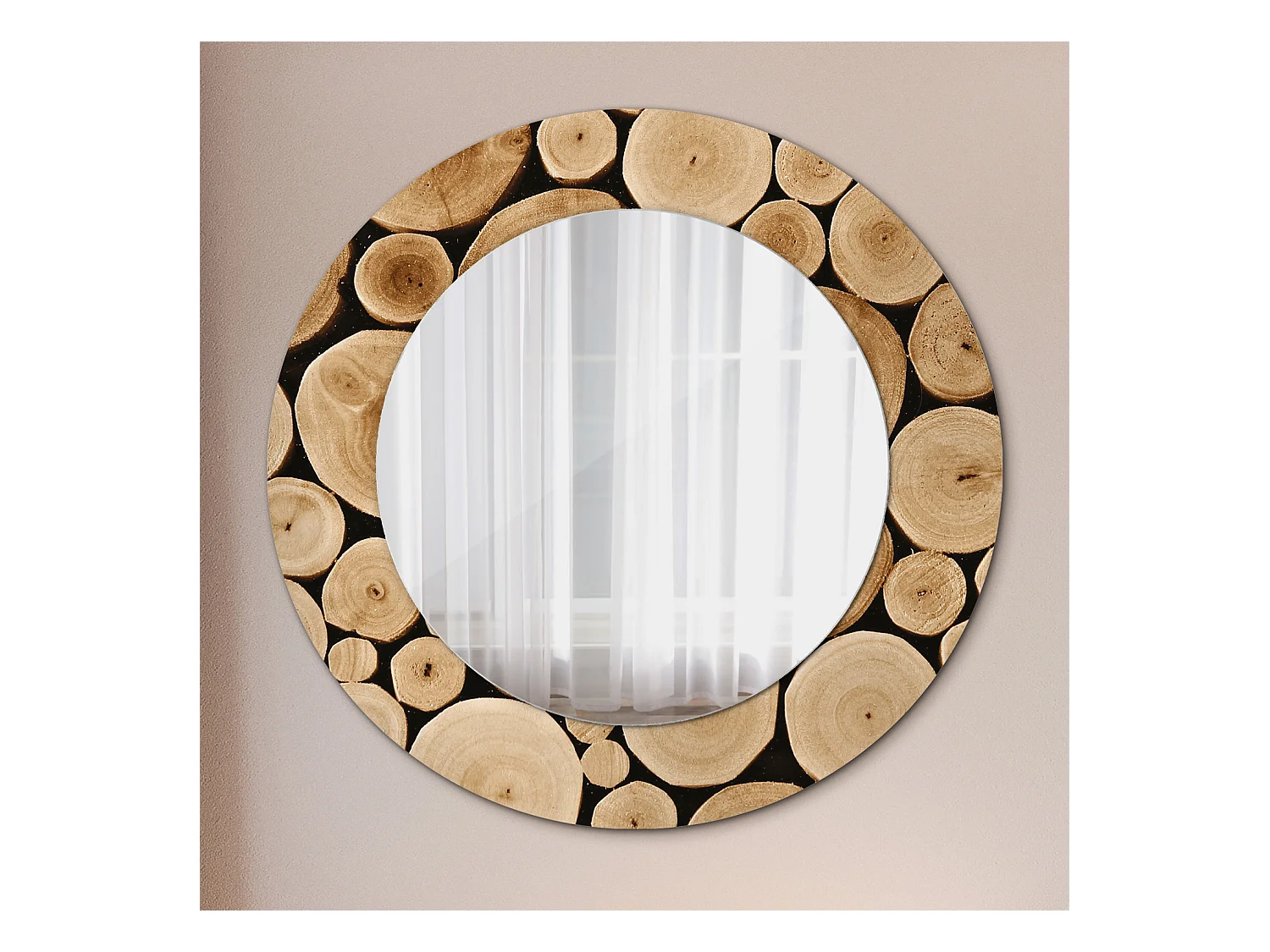 Runder dekorativer Spiegel - Holzscheite - 50 cm