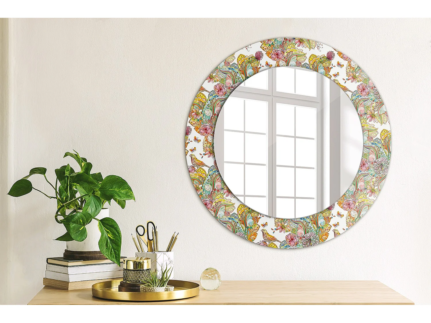 Runder dekorativer Spiegel - Märchenblumen - 50 cm