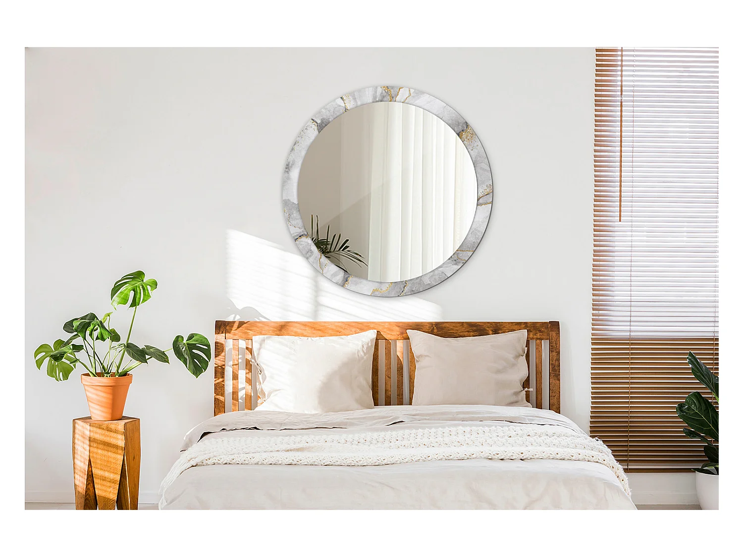 Runder dekorativer Spiegel - Marmormotiv - 90 cm
