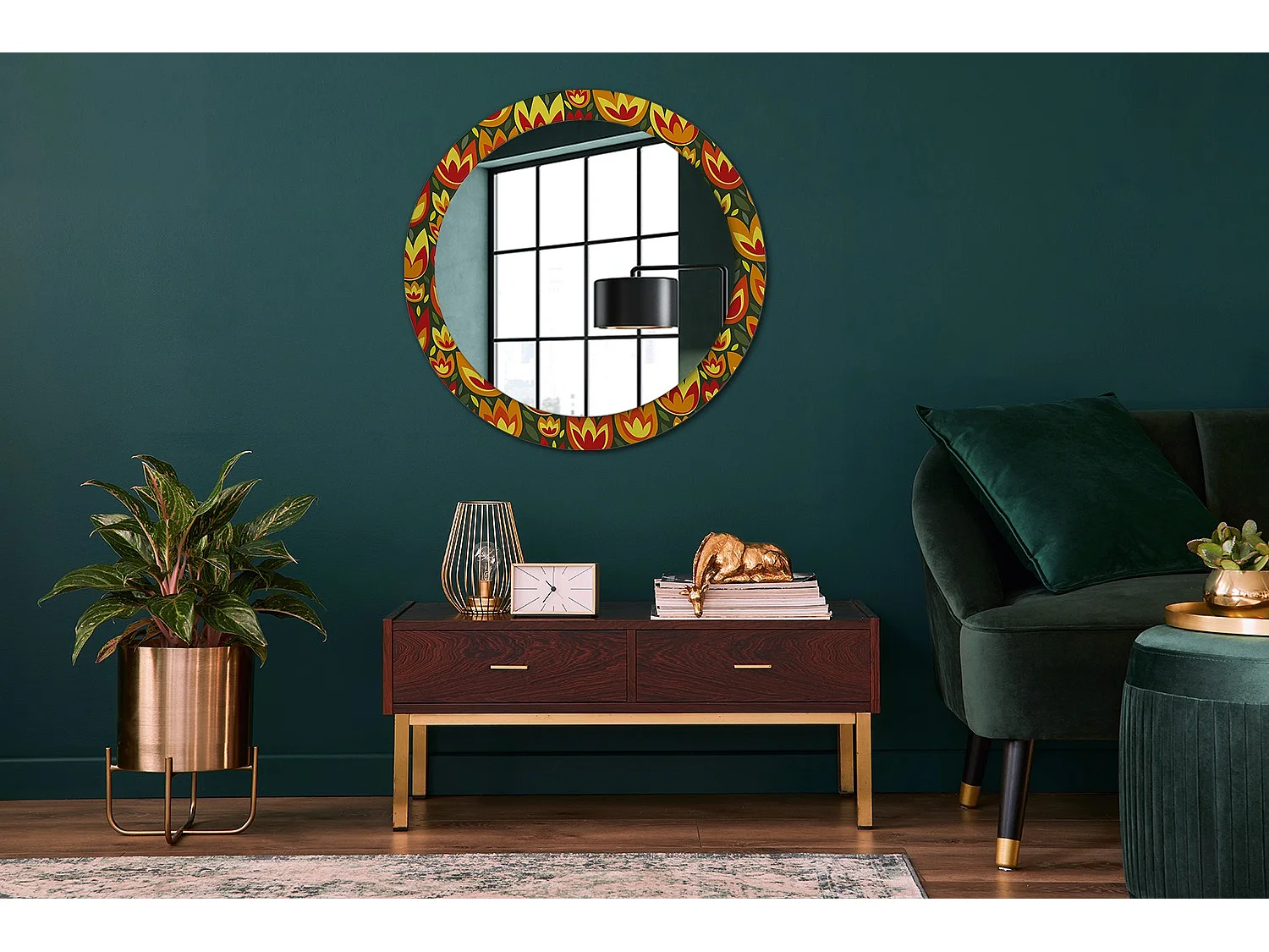 Runder dekorativer Spiegel - Retro-Tulpen - 80 cm
