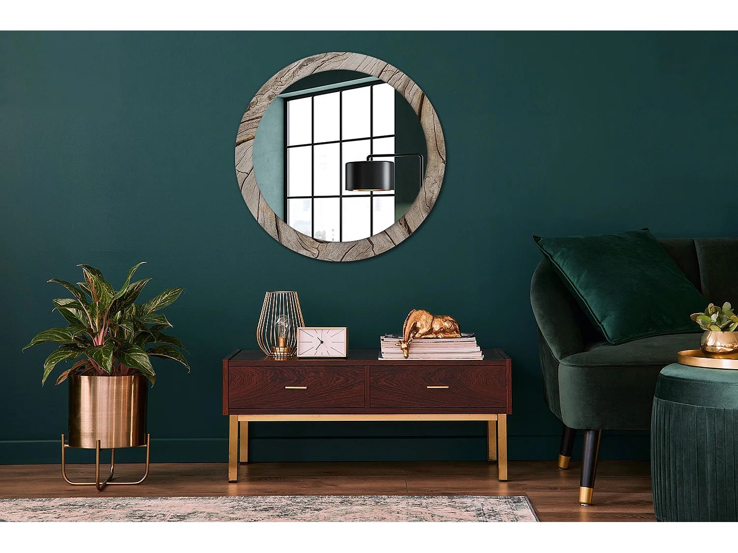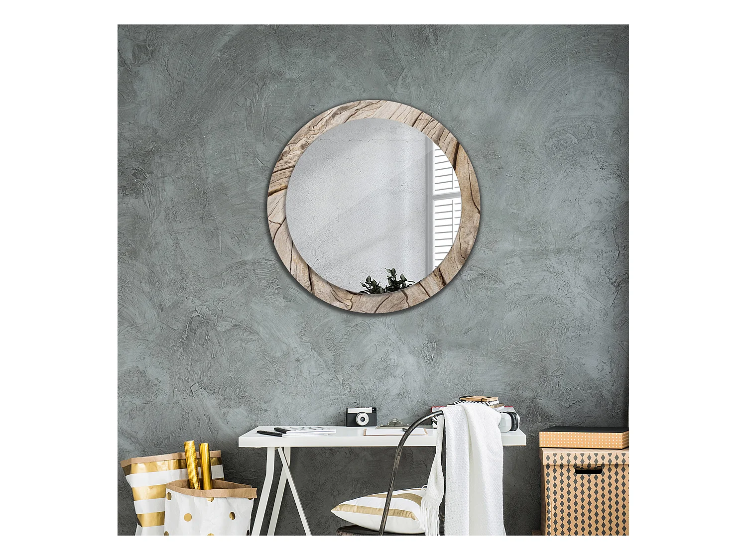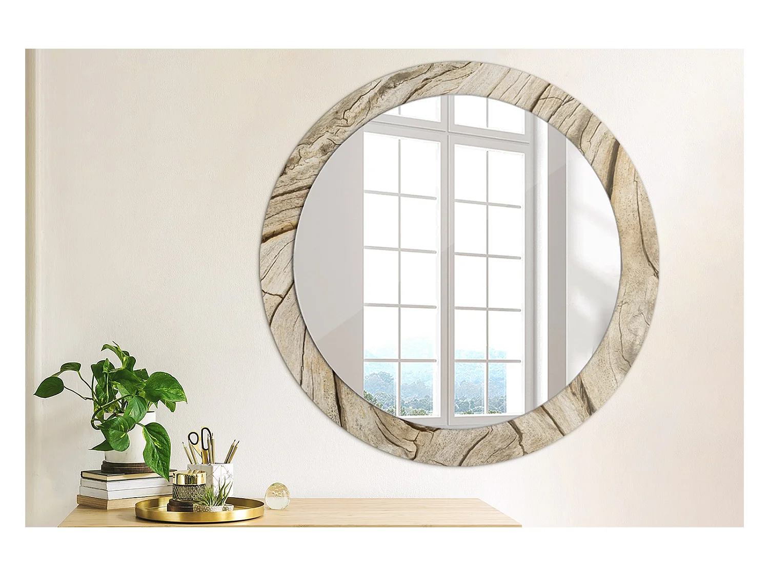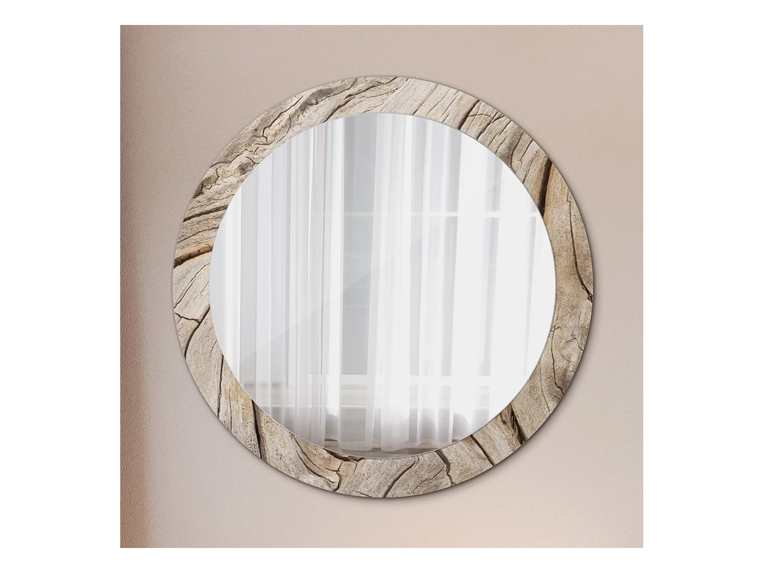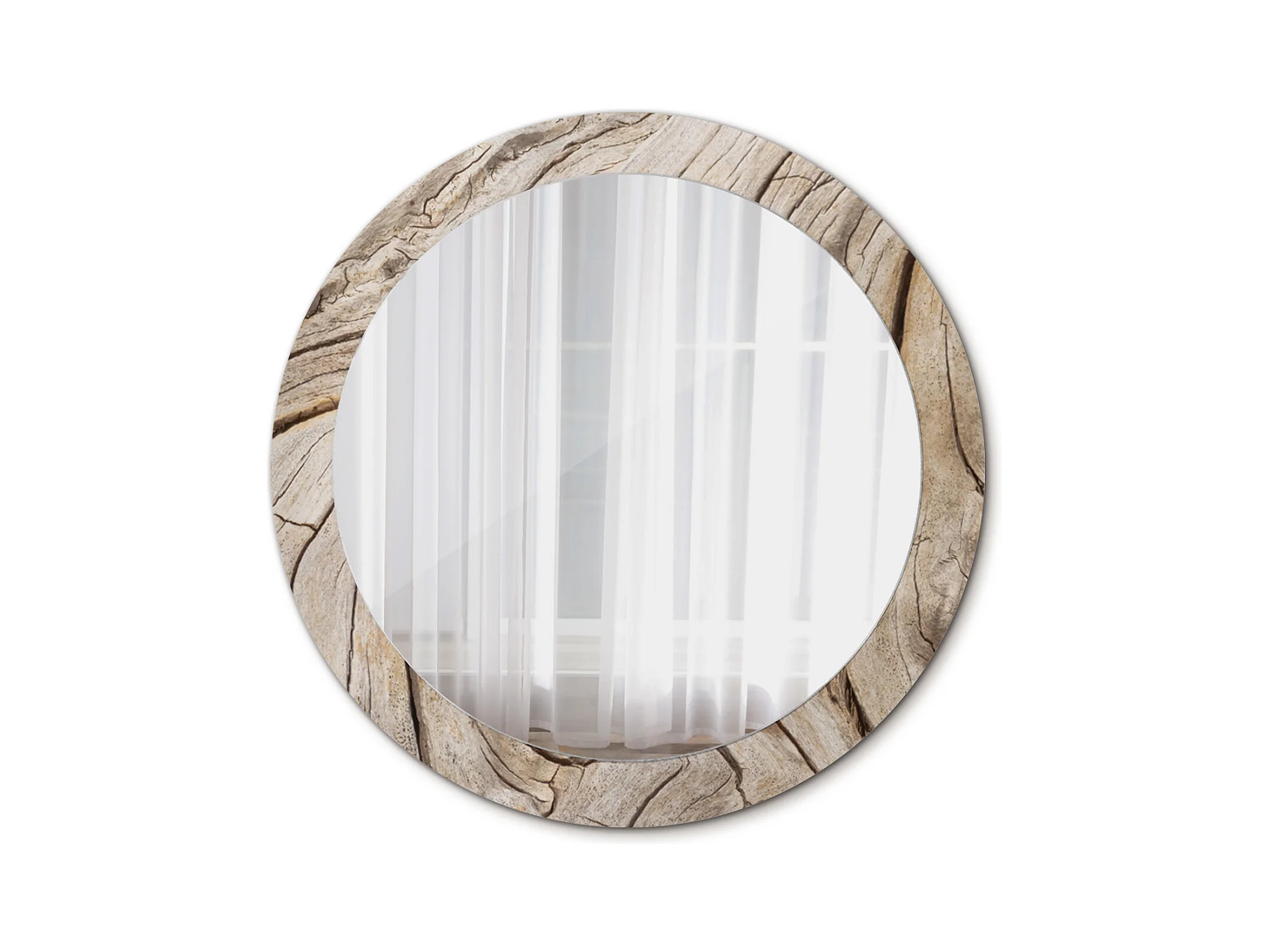Runder dekorativer Spiegel - Rissiges Holz - 80 cm
