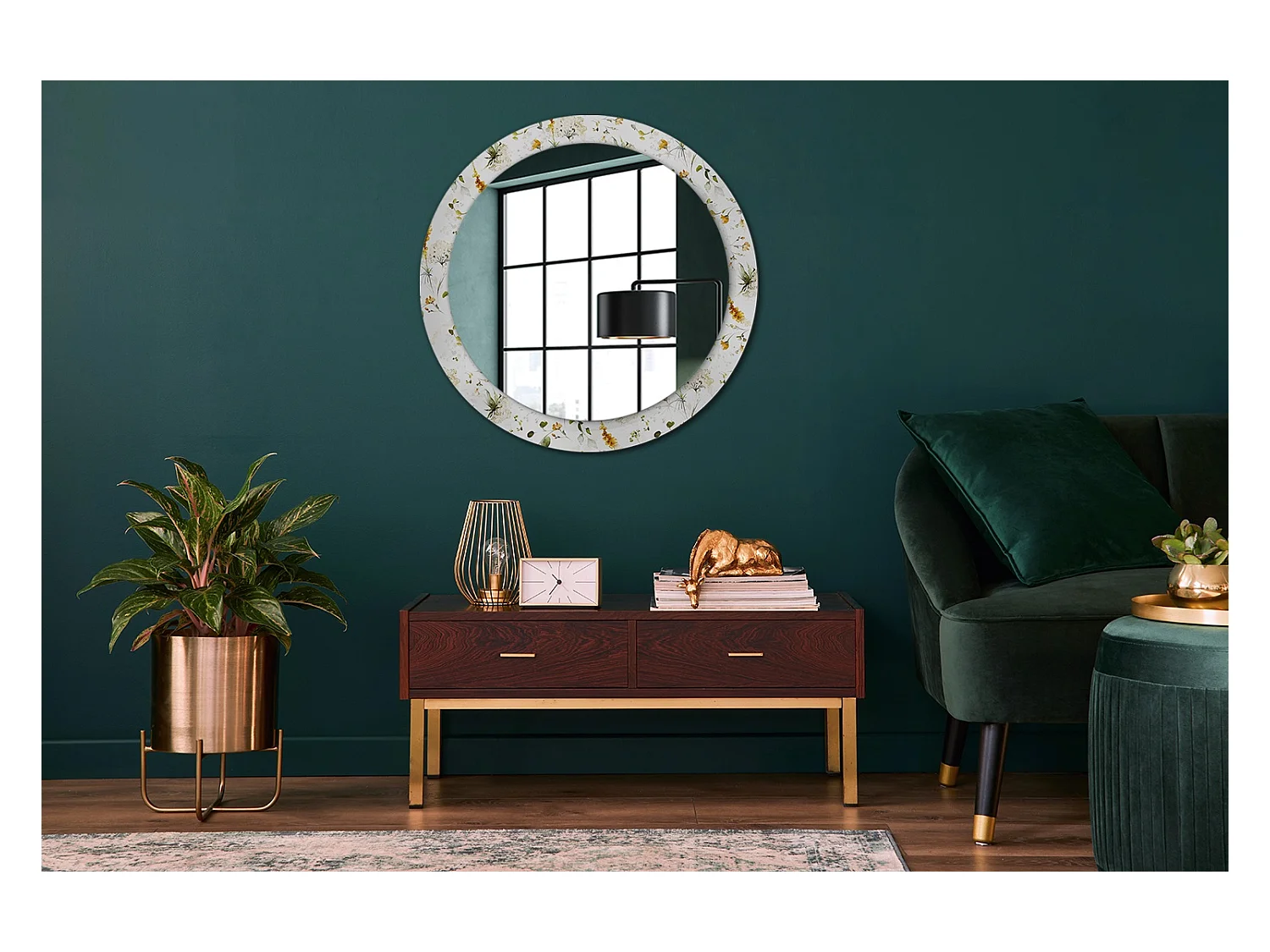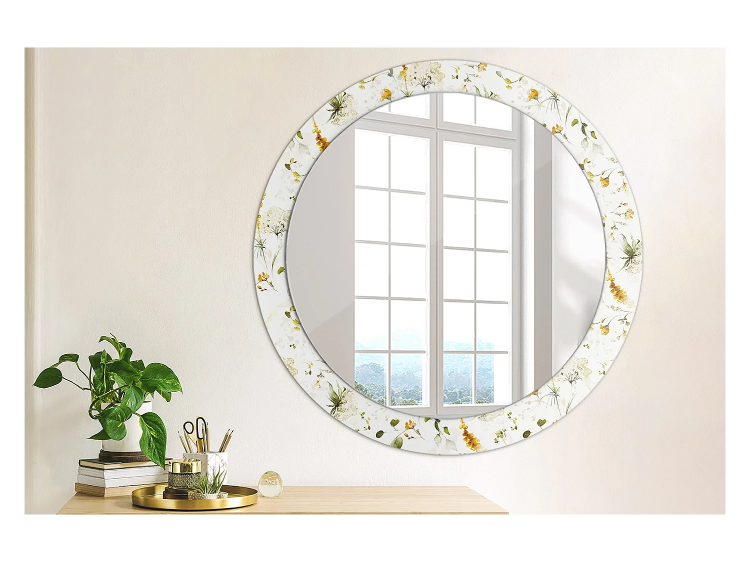 Runder dekorativer Spiegel - Wildblumen - 80 cm