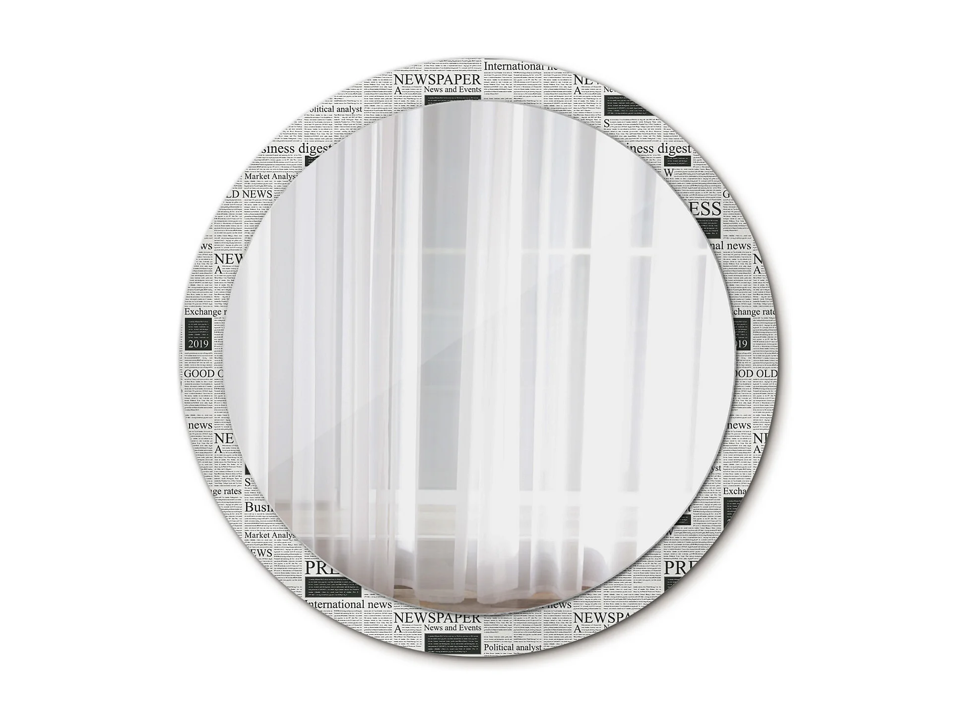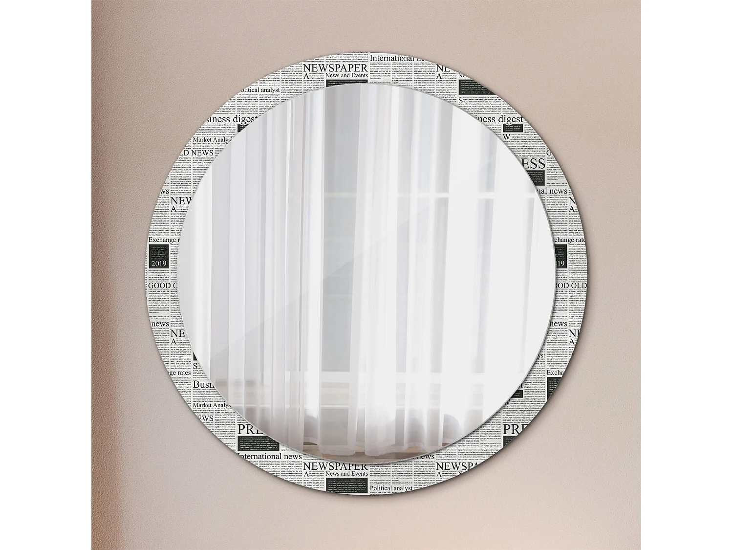 Runder dekorativer Spiegel - Zeitungen - 100 cm